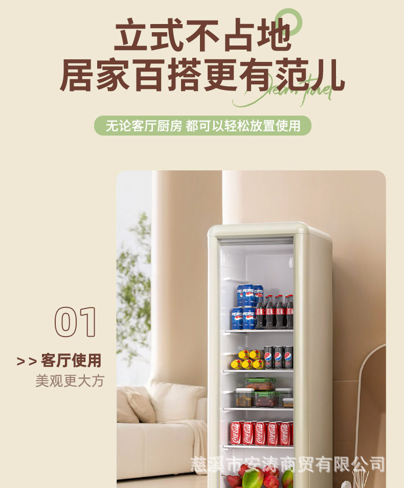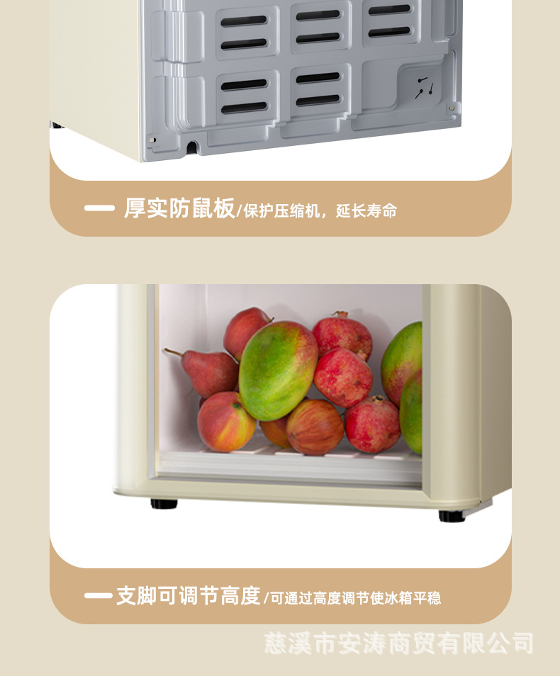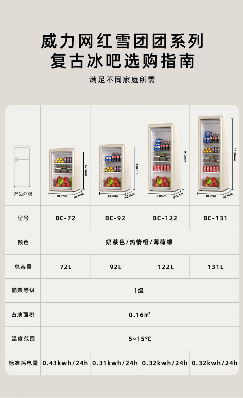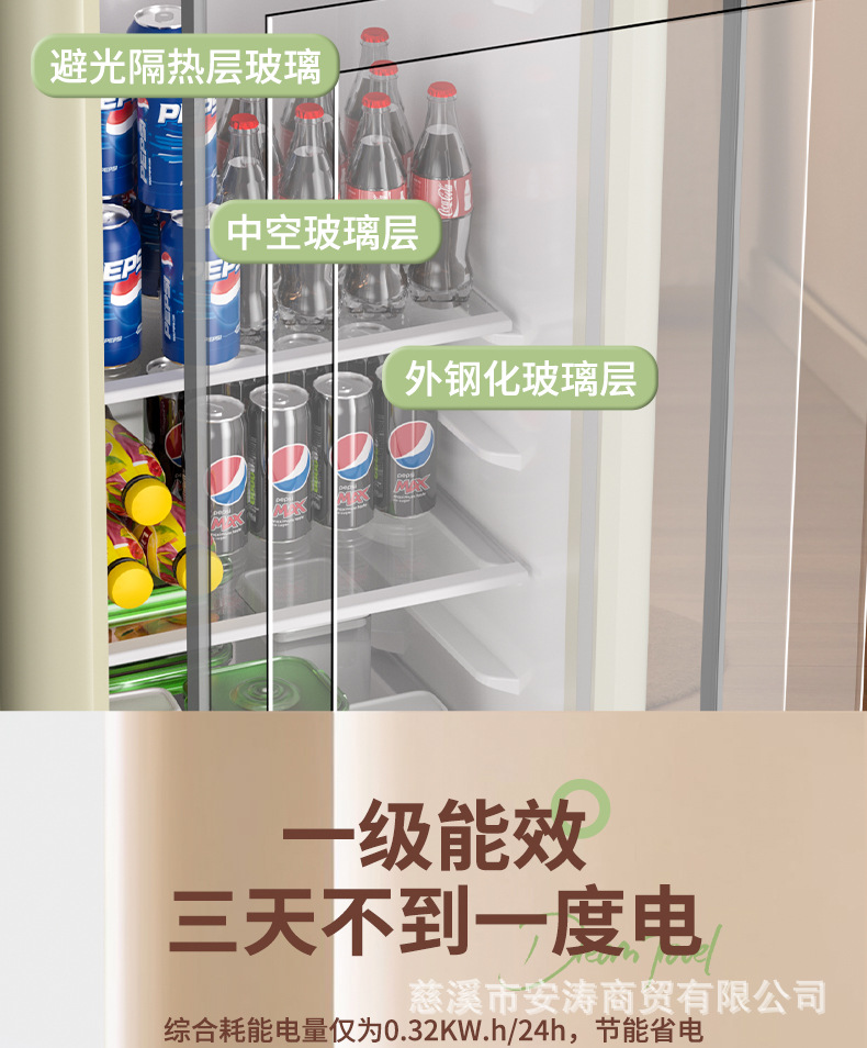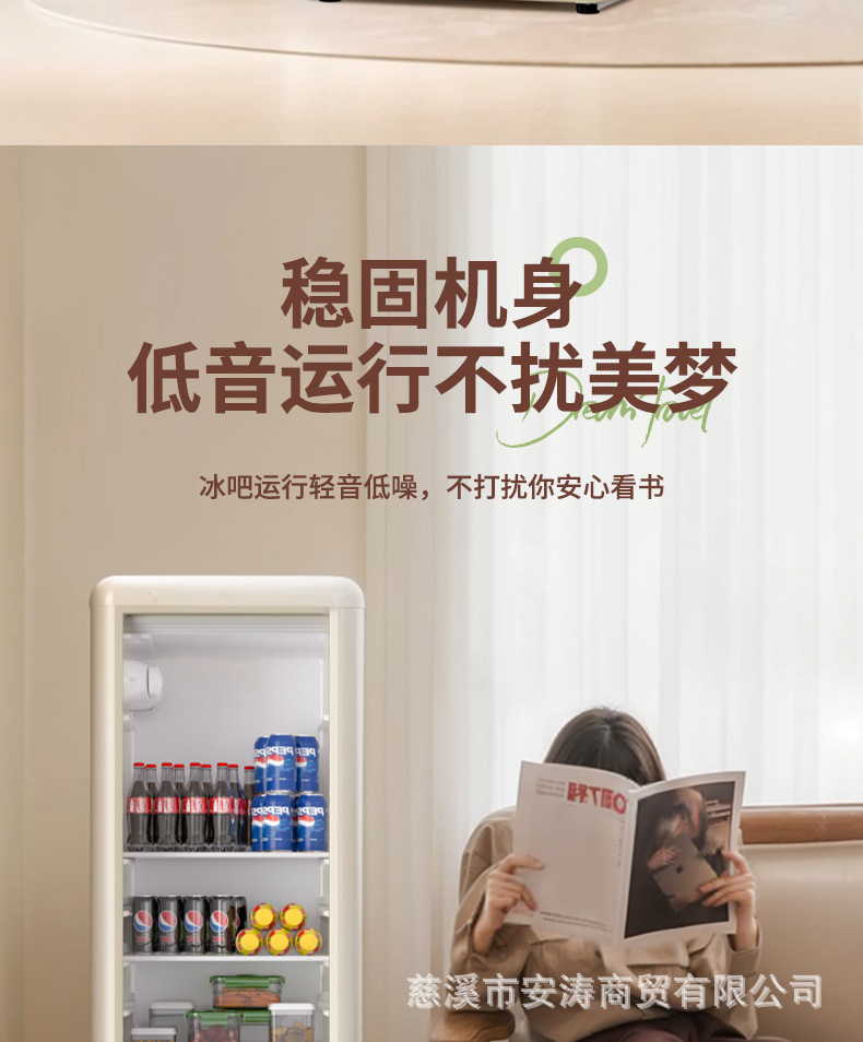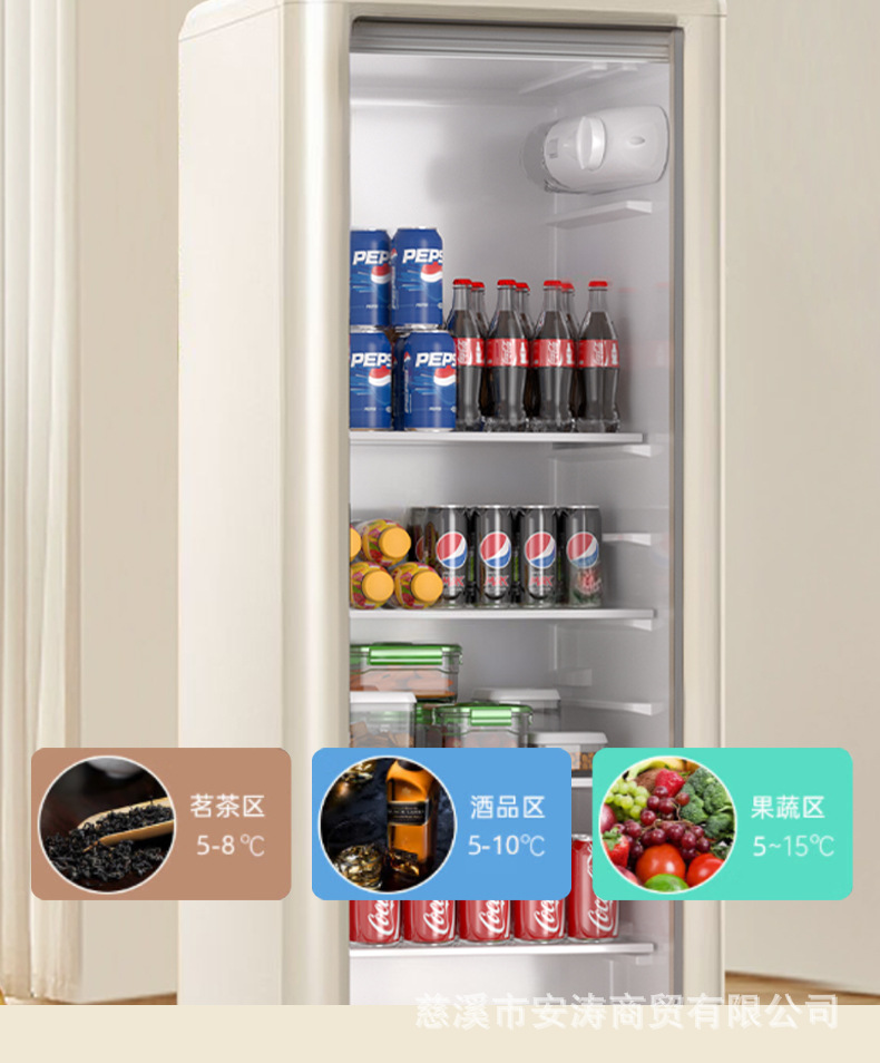 Weili 레트로 아이스 바 가정용 미니 냉장고 단일 도어 유리 도어 사무실 냉장고 음료 캐비닛 차 보관