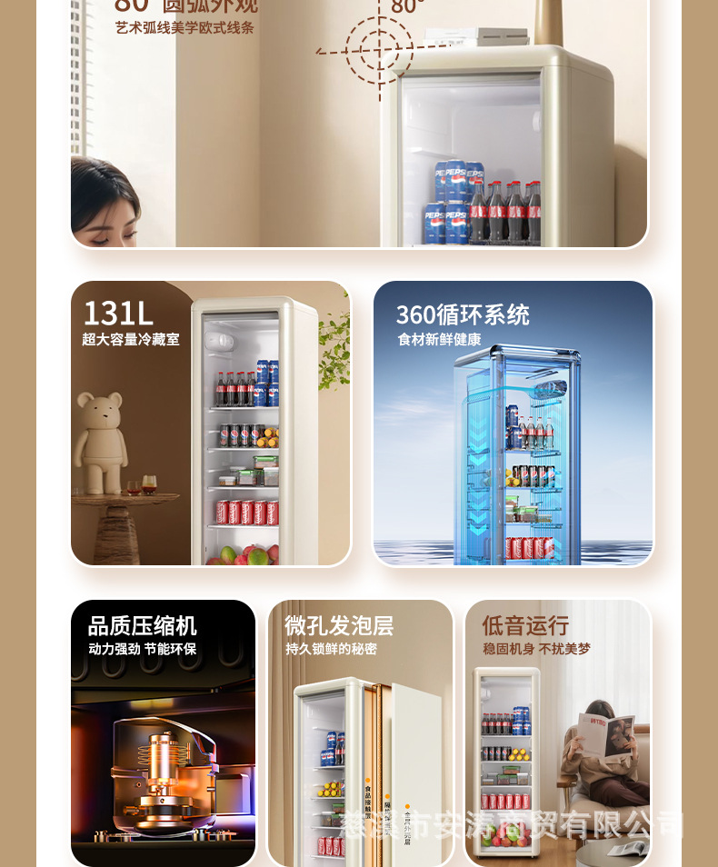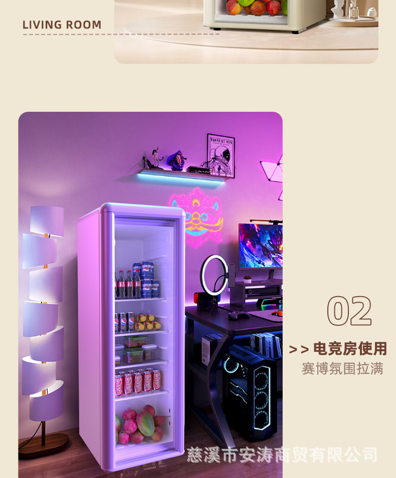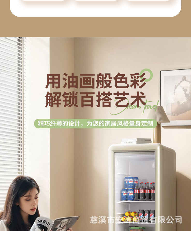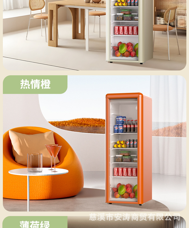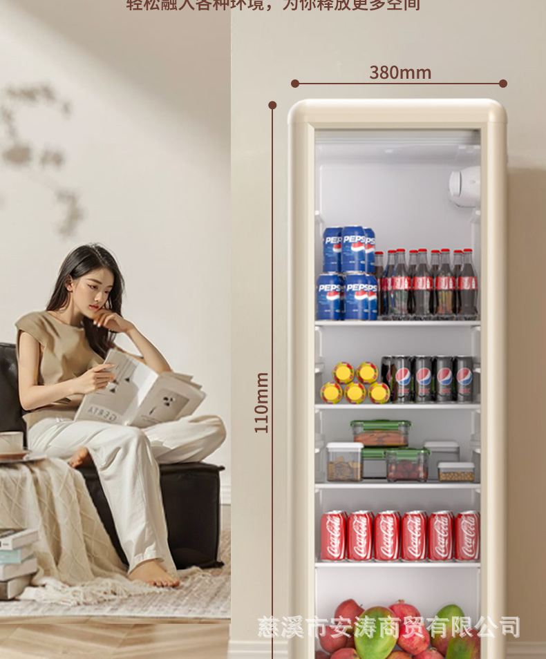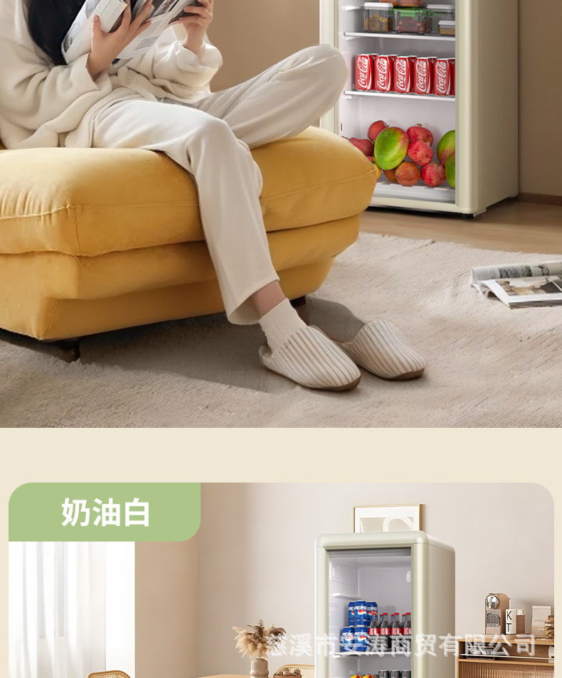 Weili 레트로 아이스 바 가정용 미니 냉장고 단일 도어 유리 도어 사무실 냉장고 음료 캐비닛 차 보관