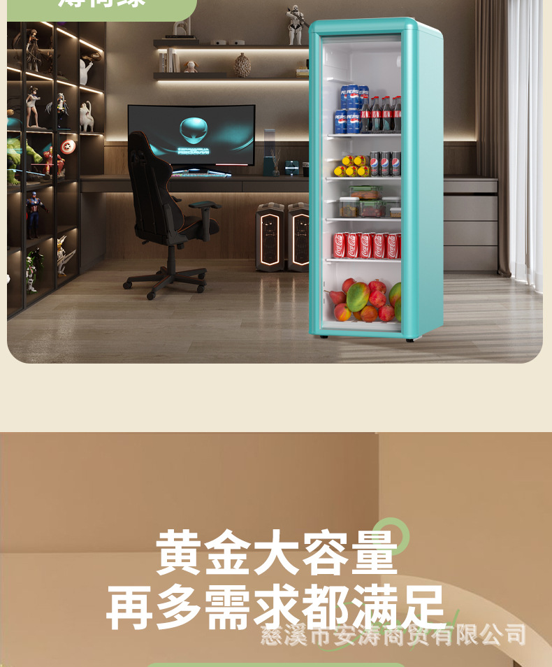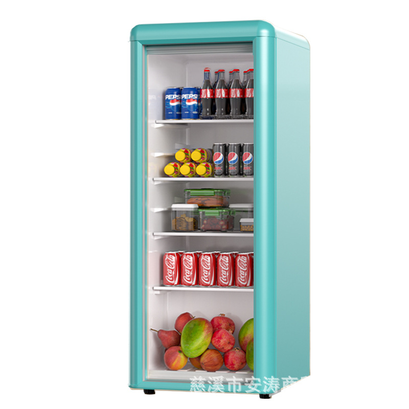 Weili 레트로 아이스 바 가정용 미니 냉장고 단일 도어 유리 도어 사무실 냉장고 음료 캐비닛 차 보관스토어 가기