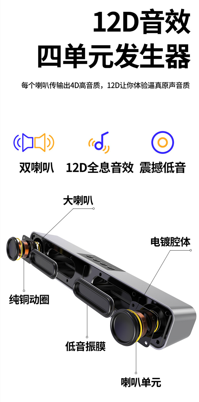 독일 무거운 대포 무선 야외 휴대 전화 컴퓨터 자동차 블루투스 스피커 듀얼 스피커 9D 초대형 사운드