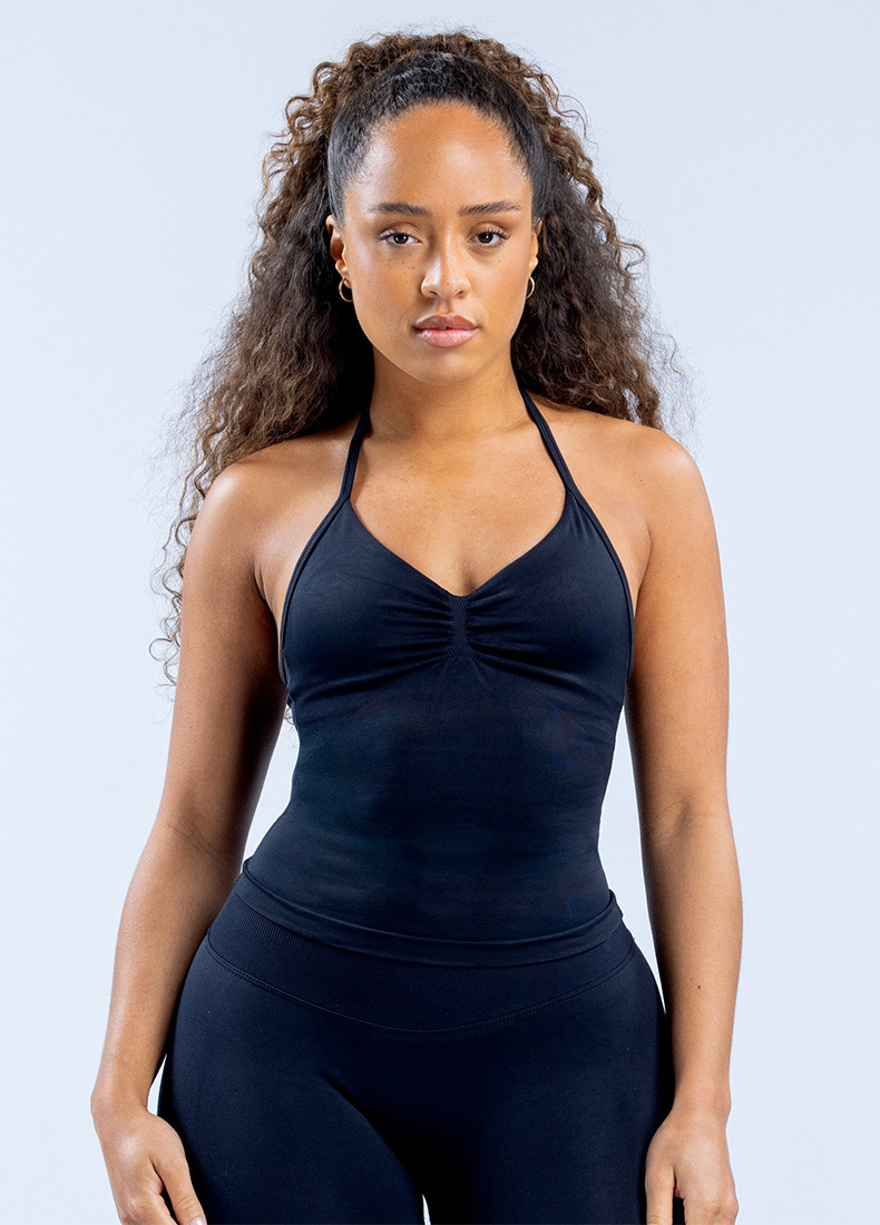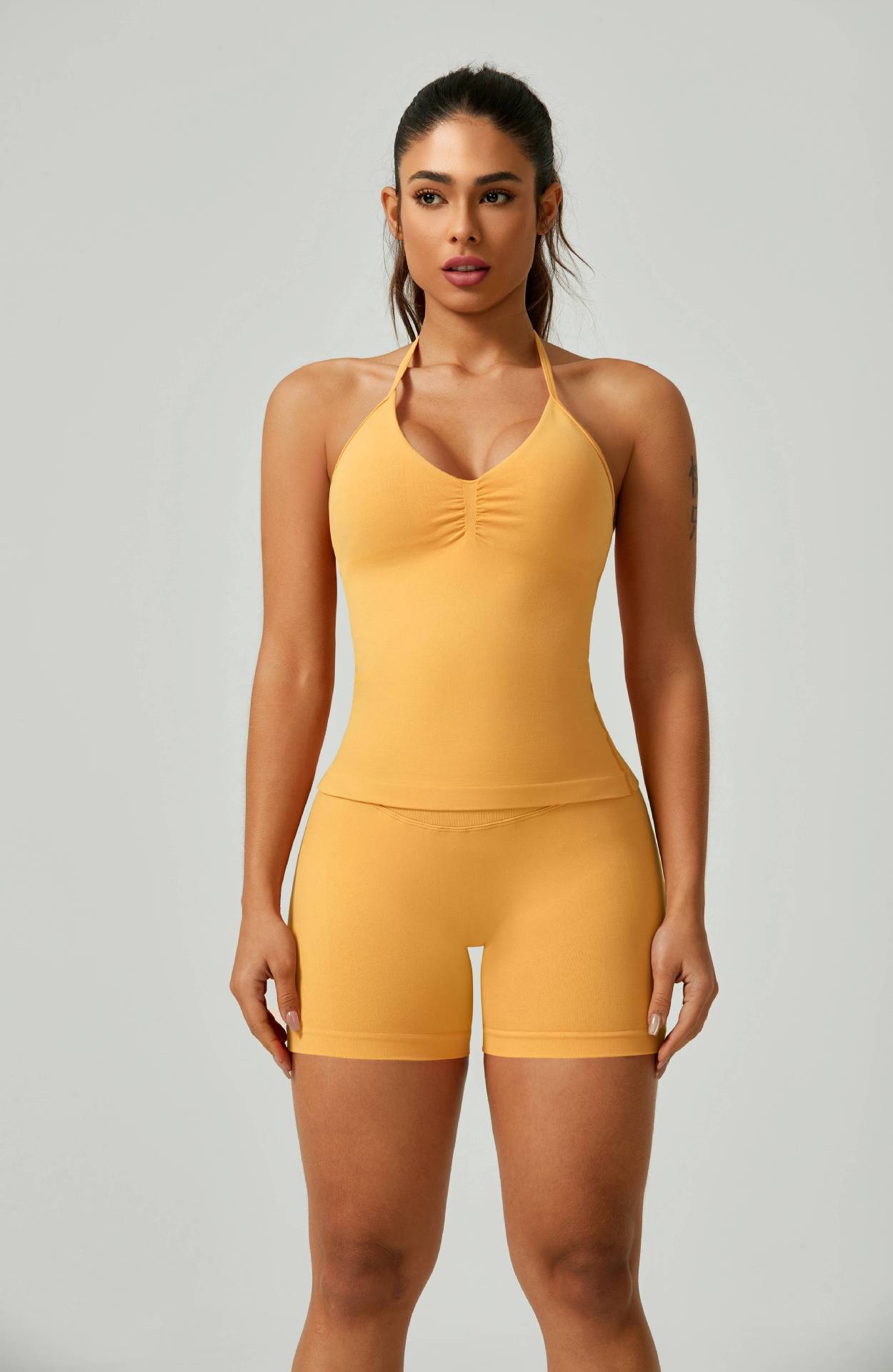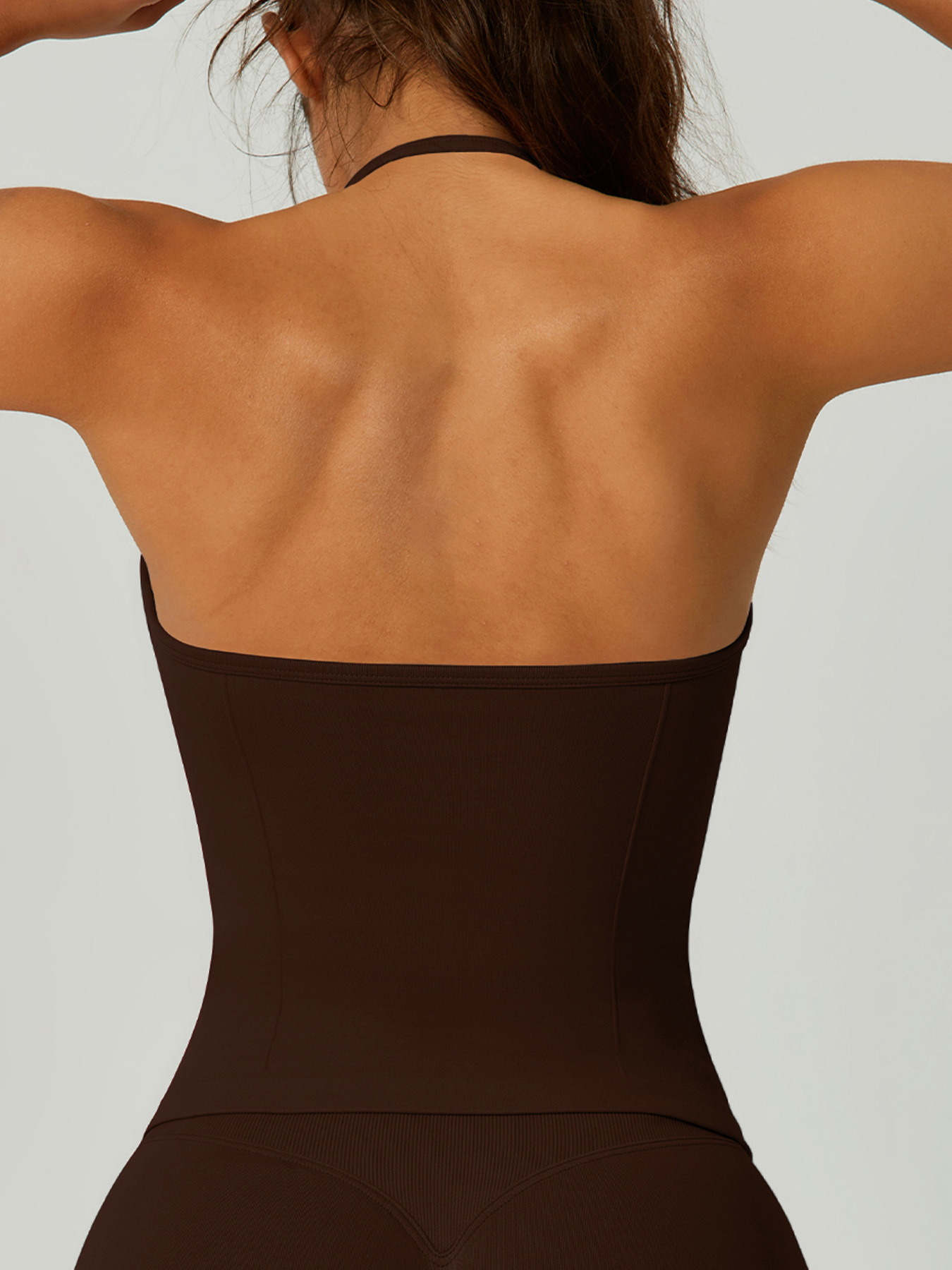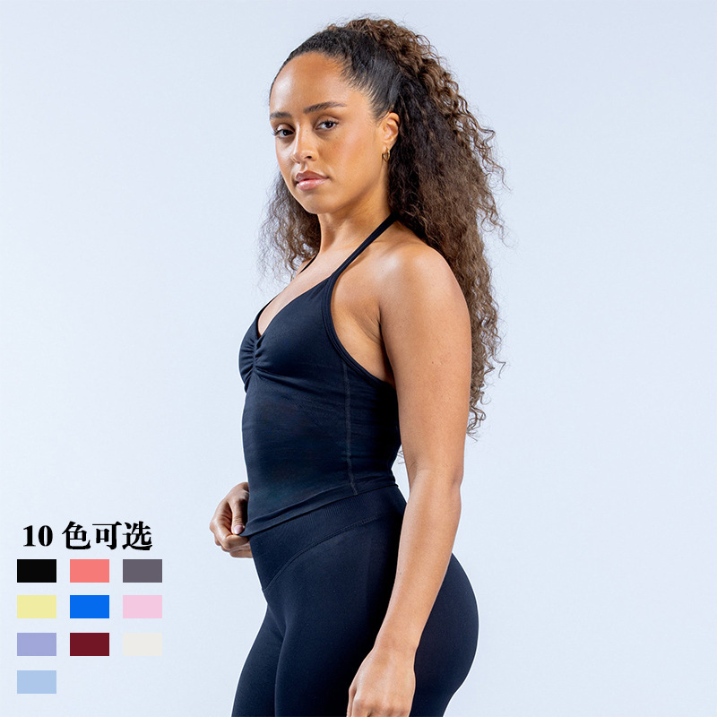 크로스보더 DF 브랜드 대체상품 2025년 신상 홀터넥 탱크탑 스포츠 요가 통기성 피트니스 타이트핏 여성용스토어 가기