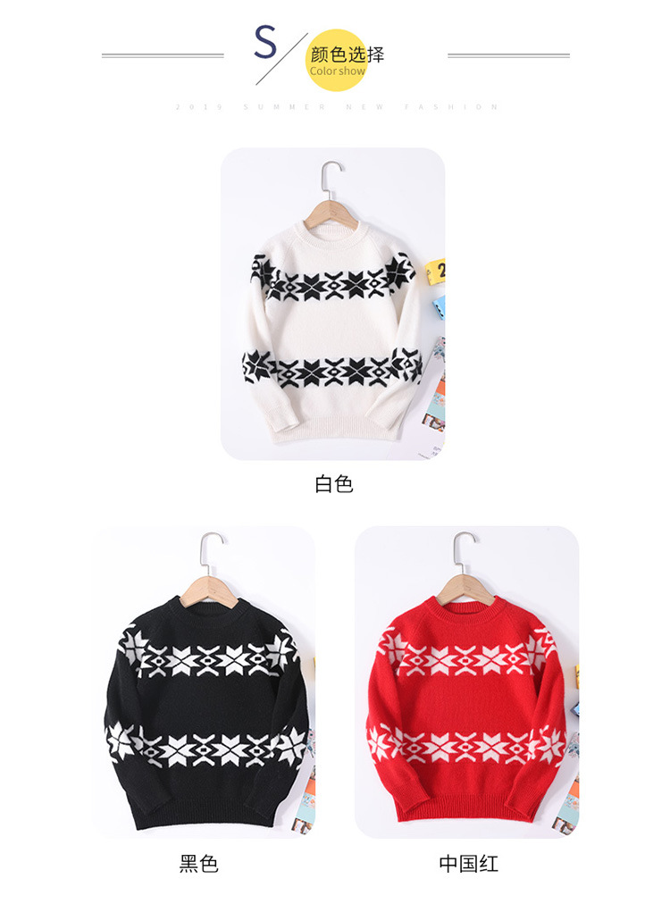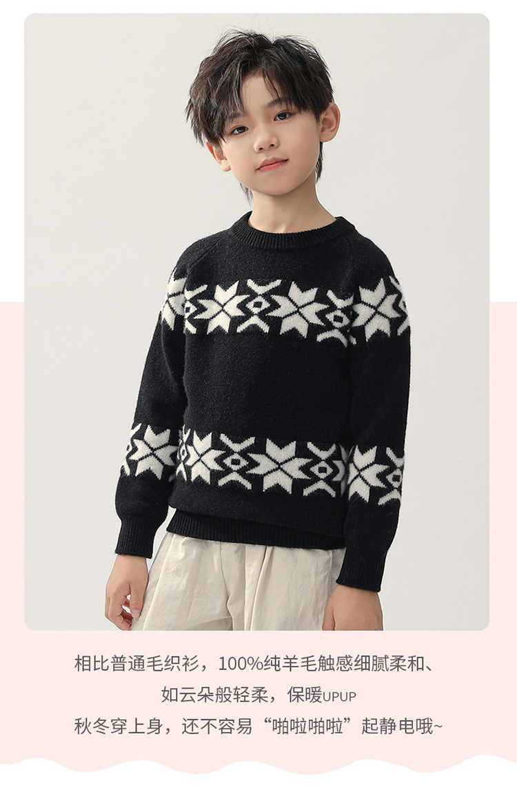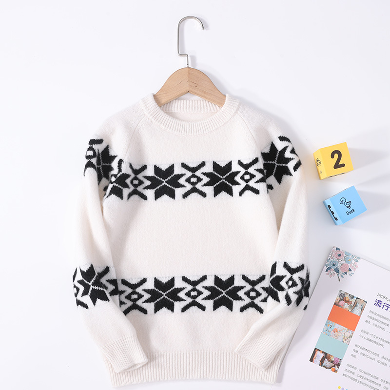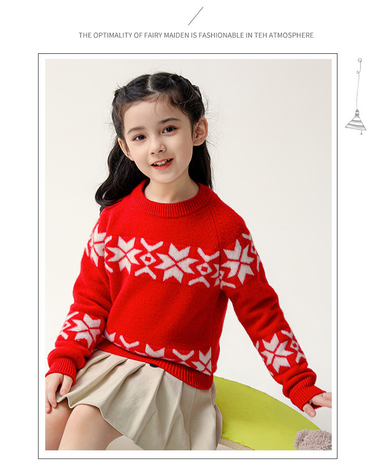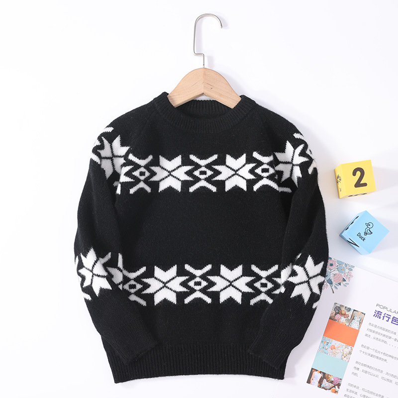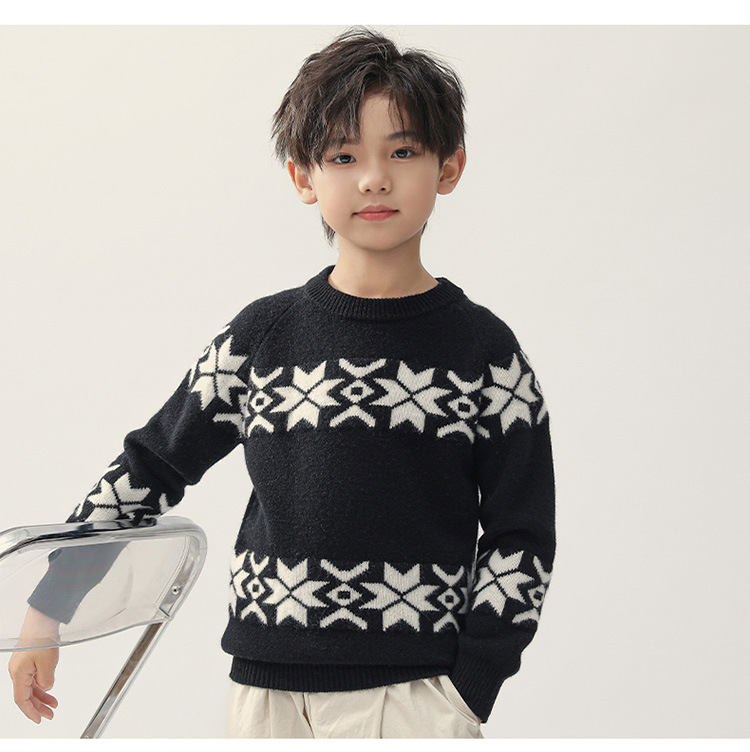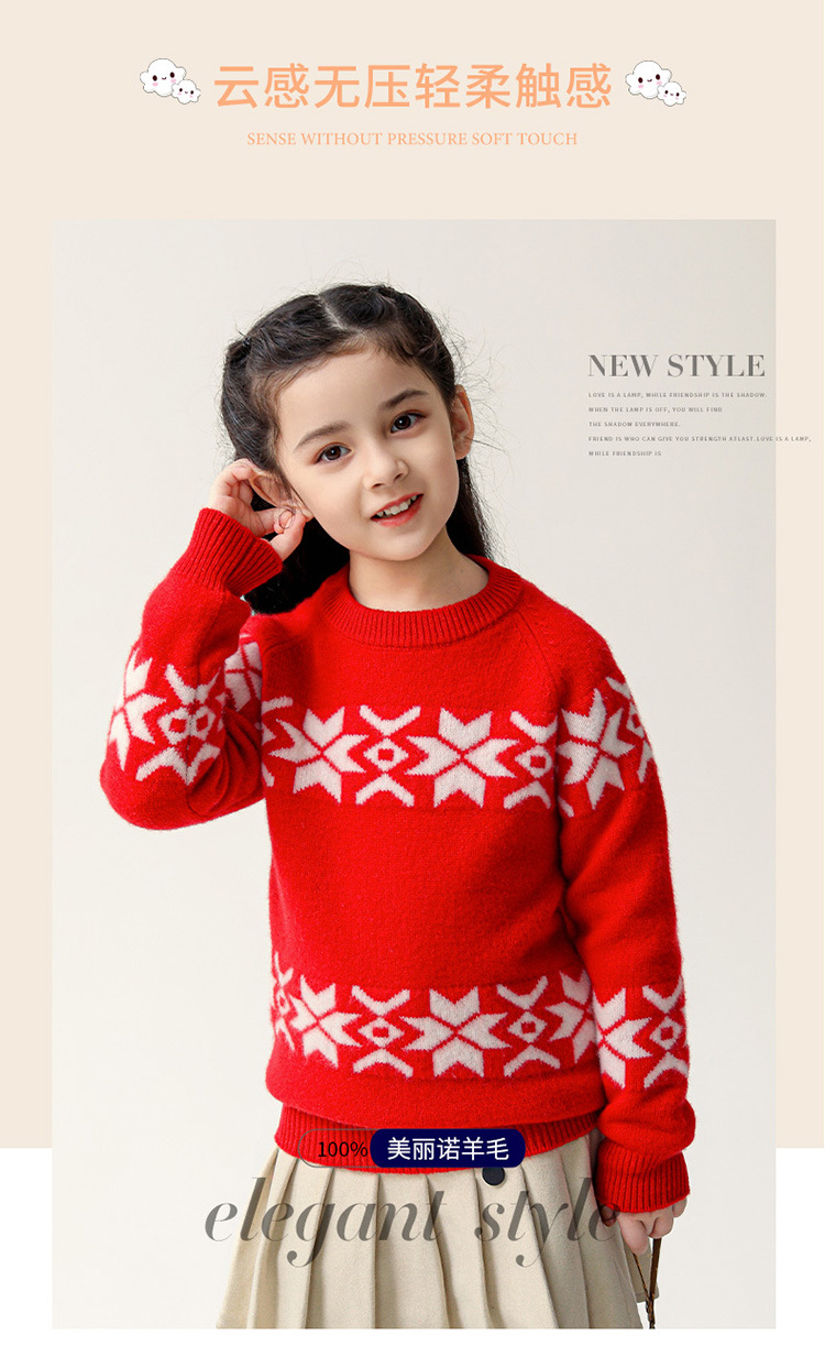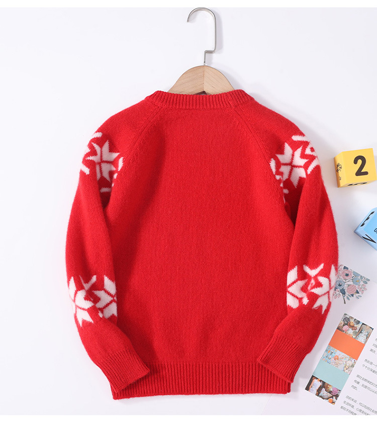가을과 겨울 2024 새로운 순수한 양모 크리스마스 롤 순수한 양모 크루 넥 스웨터 눈송이 컬러 스플 라이징 스웨터 소년 소녀스토어 가기