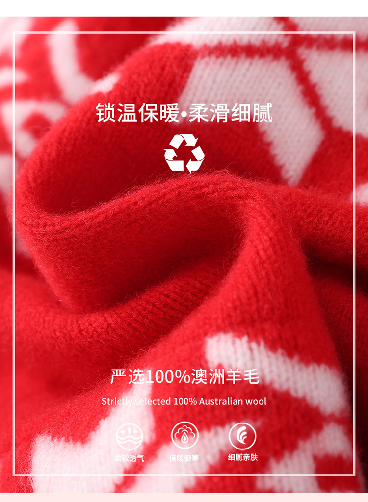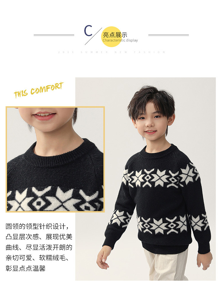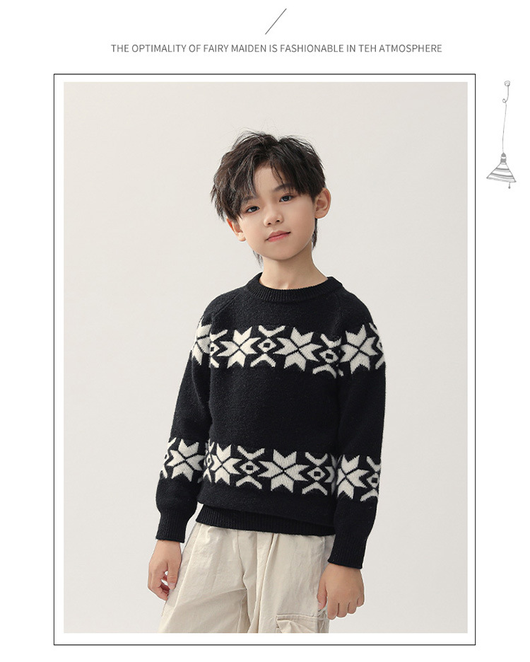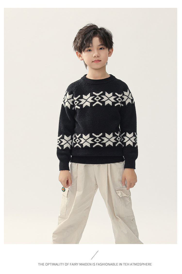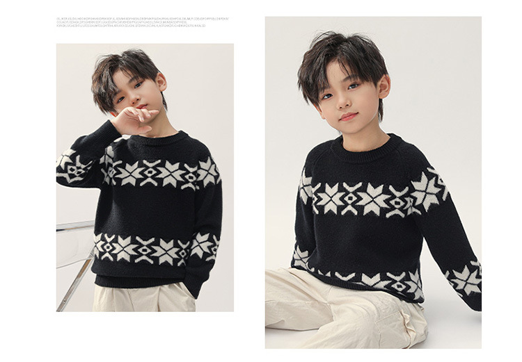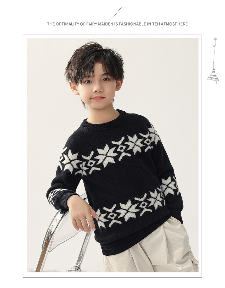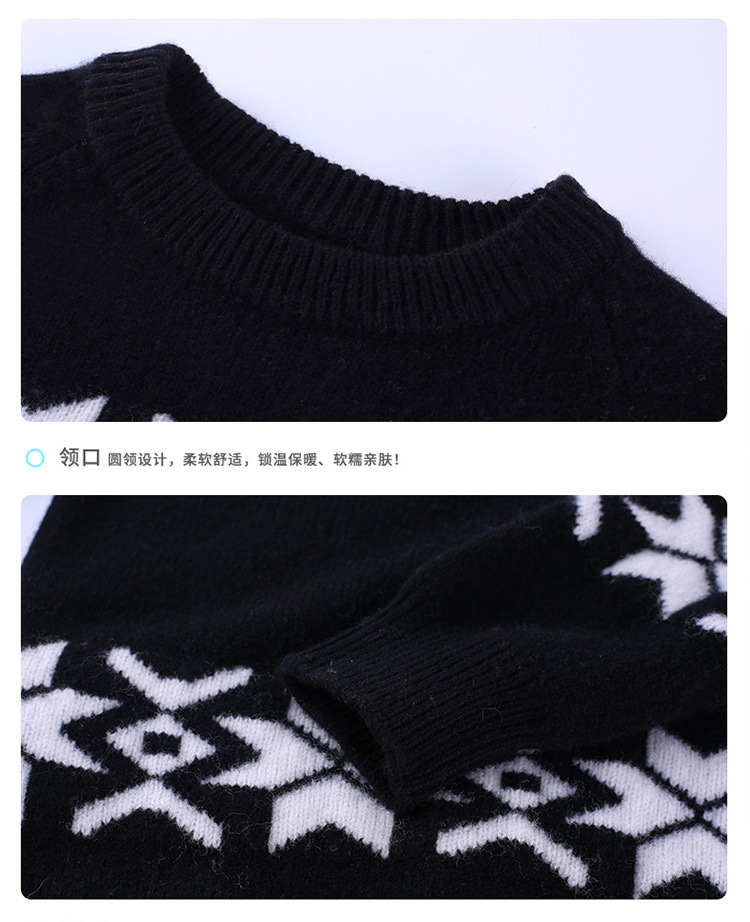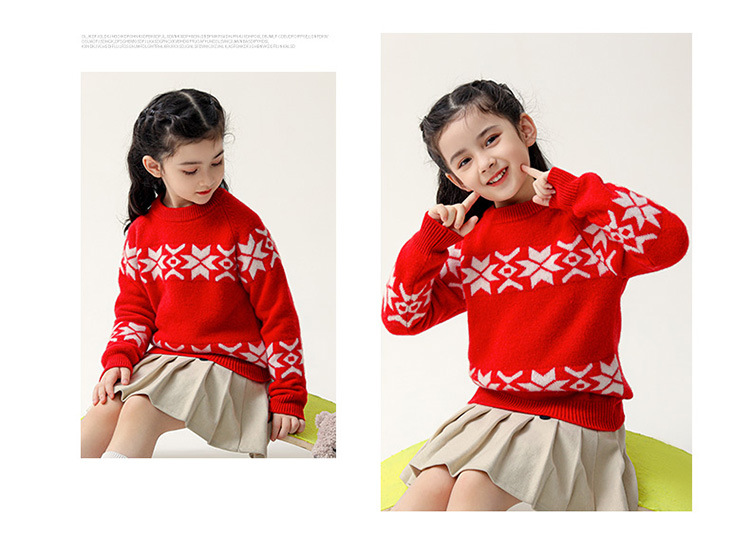 가을과 겨울 2024 새로운 순수한 양모 크리스마스 롤 순수한 양모 크루 넥 스웨터 눈송이 컬러 스플 라이징 스웨터 소년 소녀스토어 가기