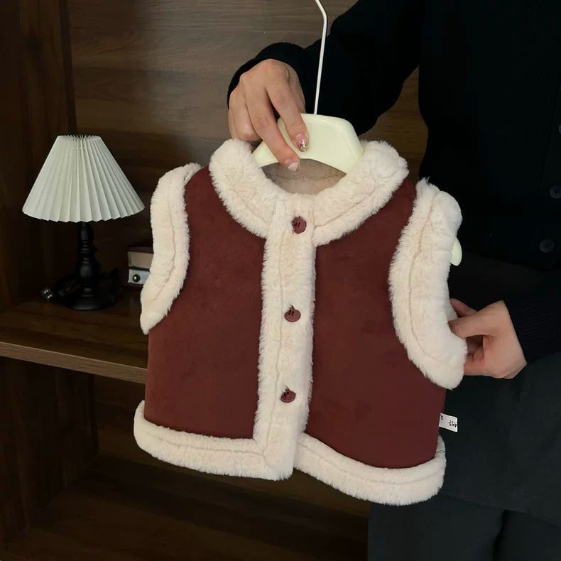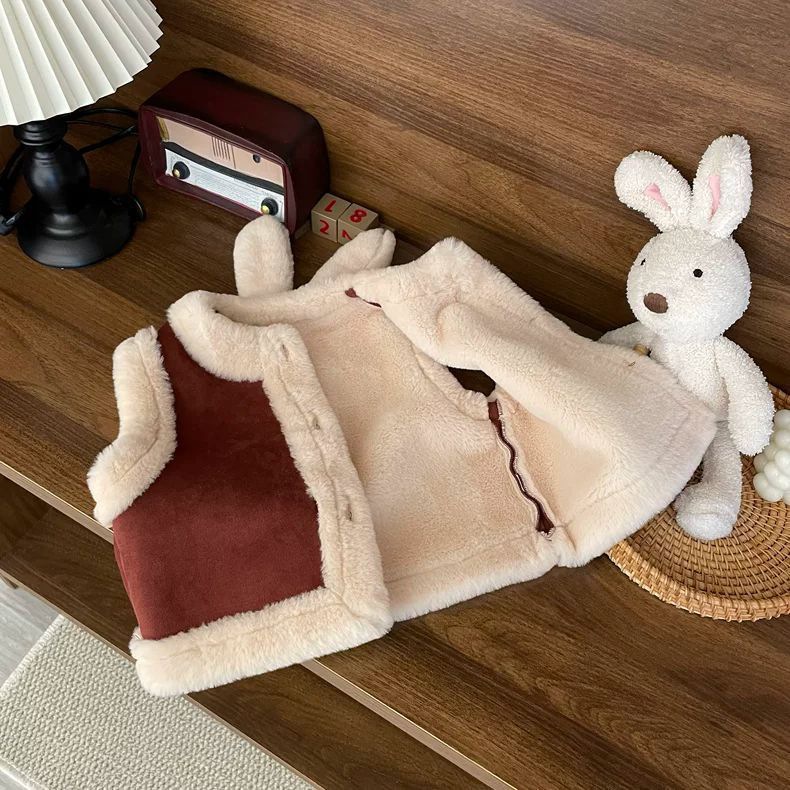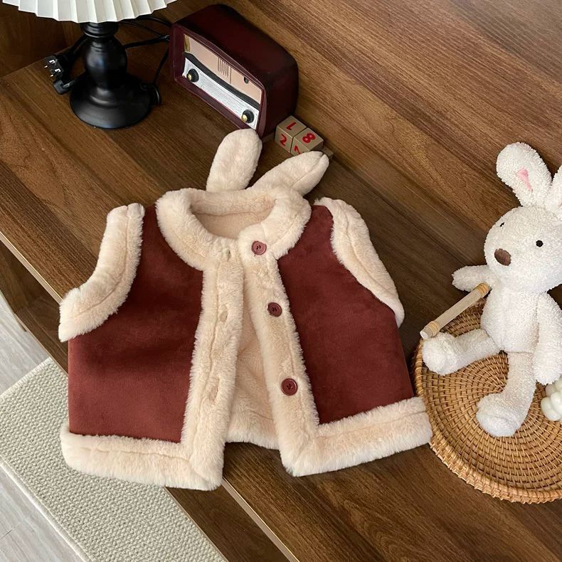여자 겨울 조끼 코트 아기의 서양식 어린이 성격 유행 만화 귀 꼬리 두꺼운 양모 스웨터스토어 가기