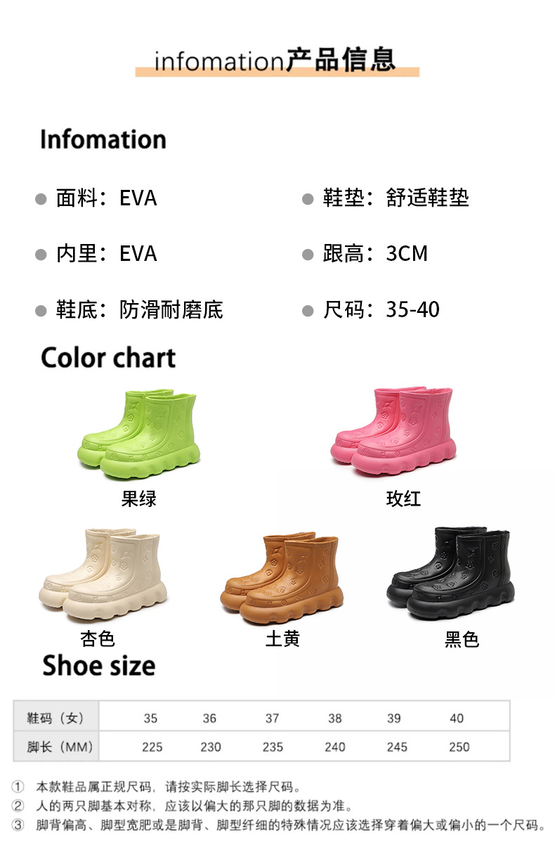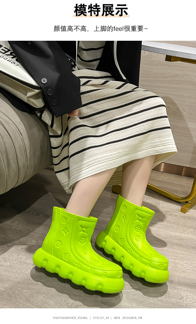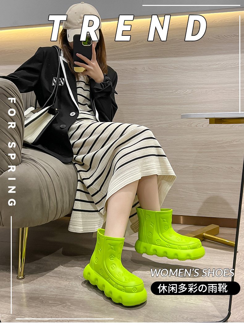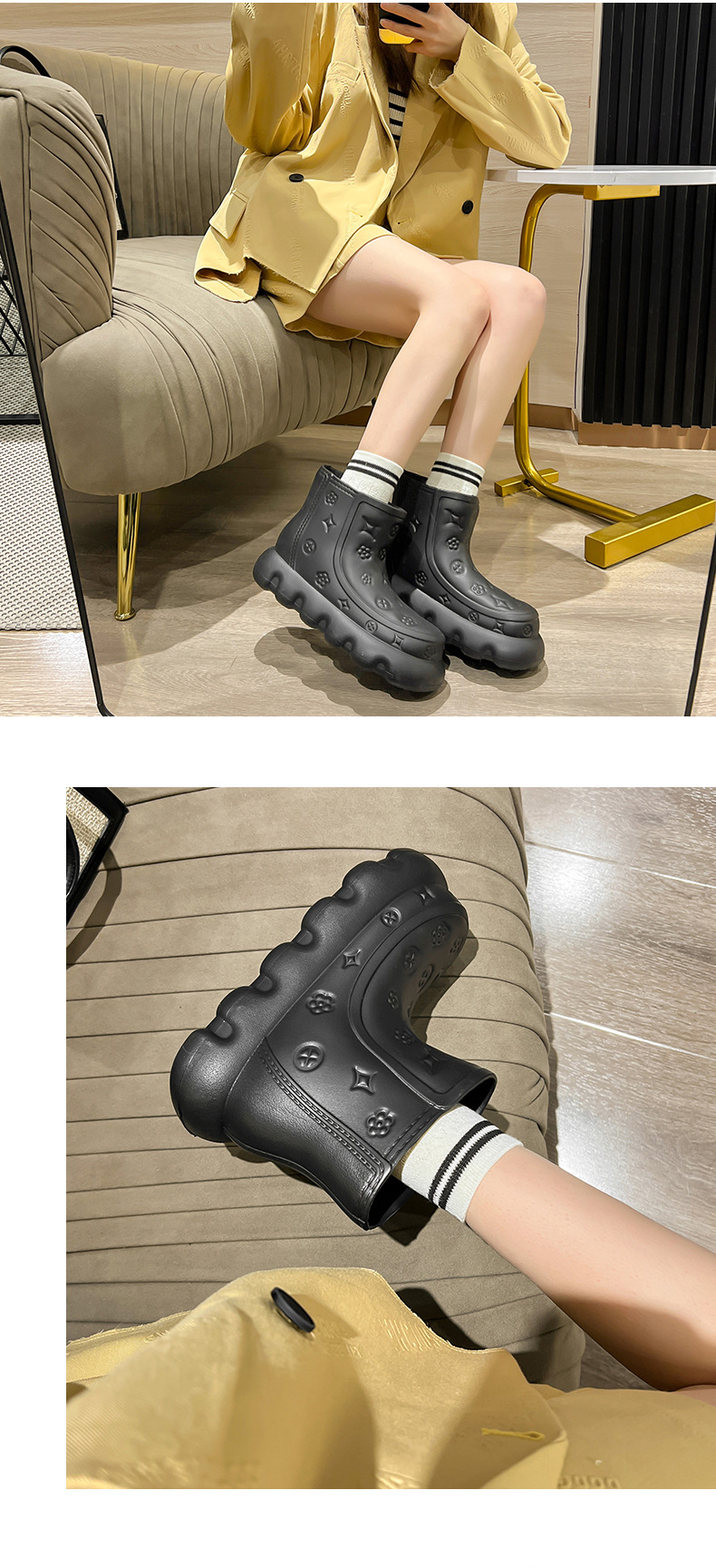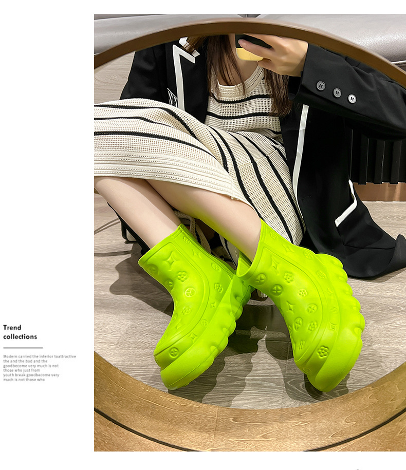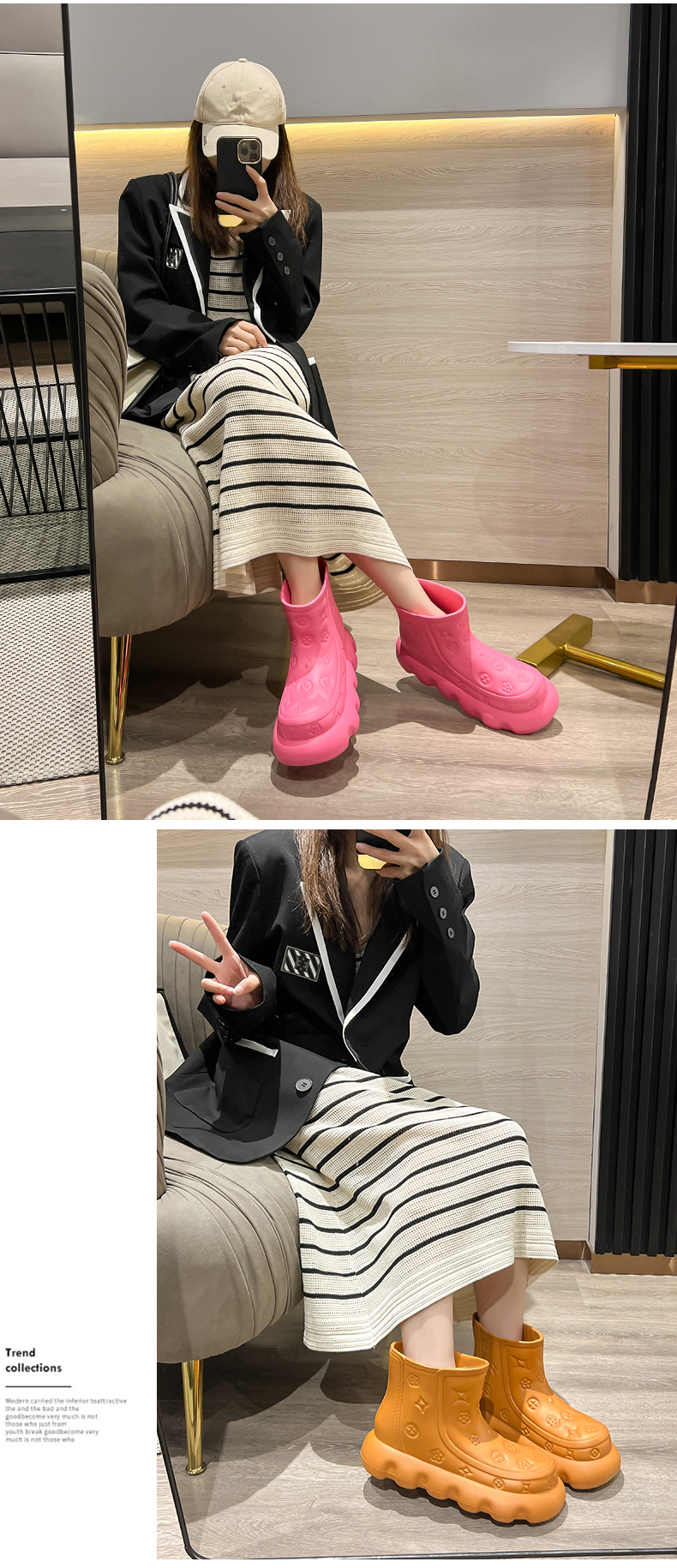 EVA 레인 부츠 여성 패션 짧은 배럴 레인 부츠 사이버 인기 미끄럼 방지 워터 슈즈 외부 워터 부츠 두꺼운 바닥 방수 고무 신발