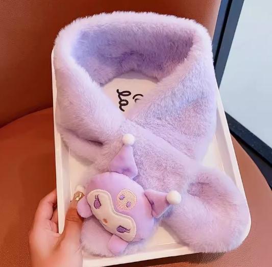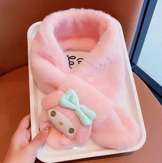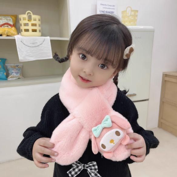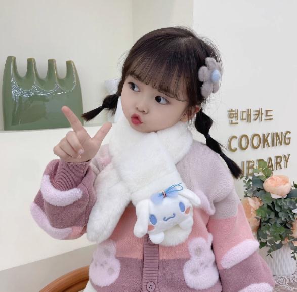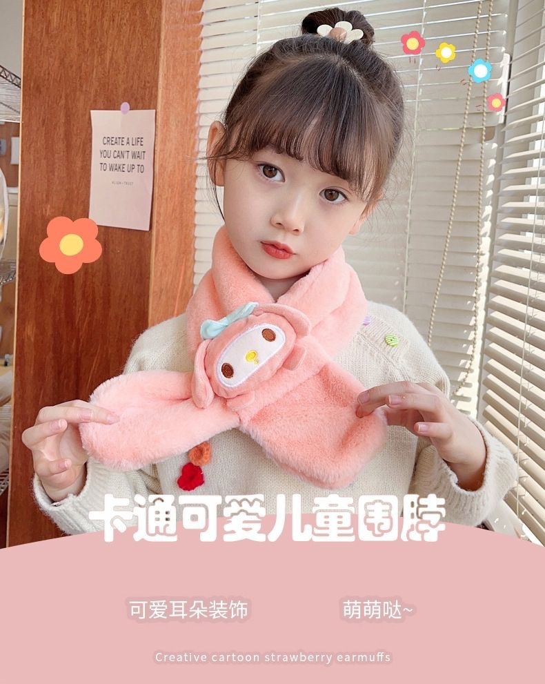 2024 겨울 봉제 따뜻한 어린이 스카프 만화 두꺼운 감기 방지 목 스카프 어린 소녀의 Merleti 목 소매