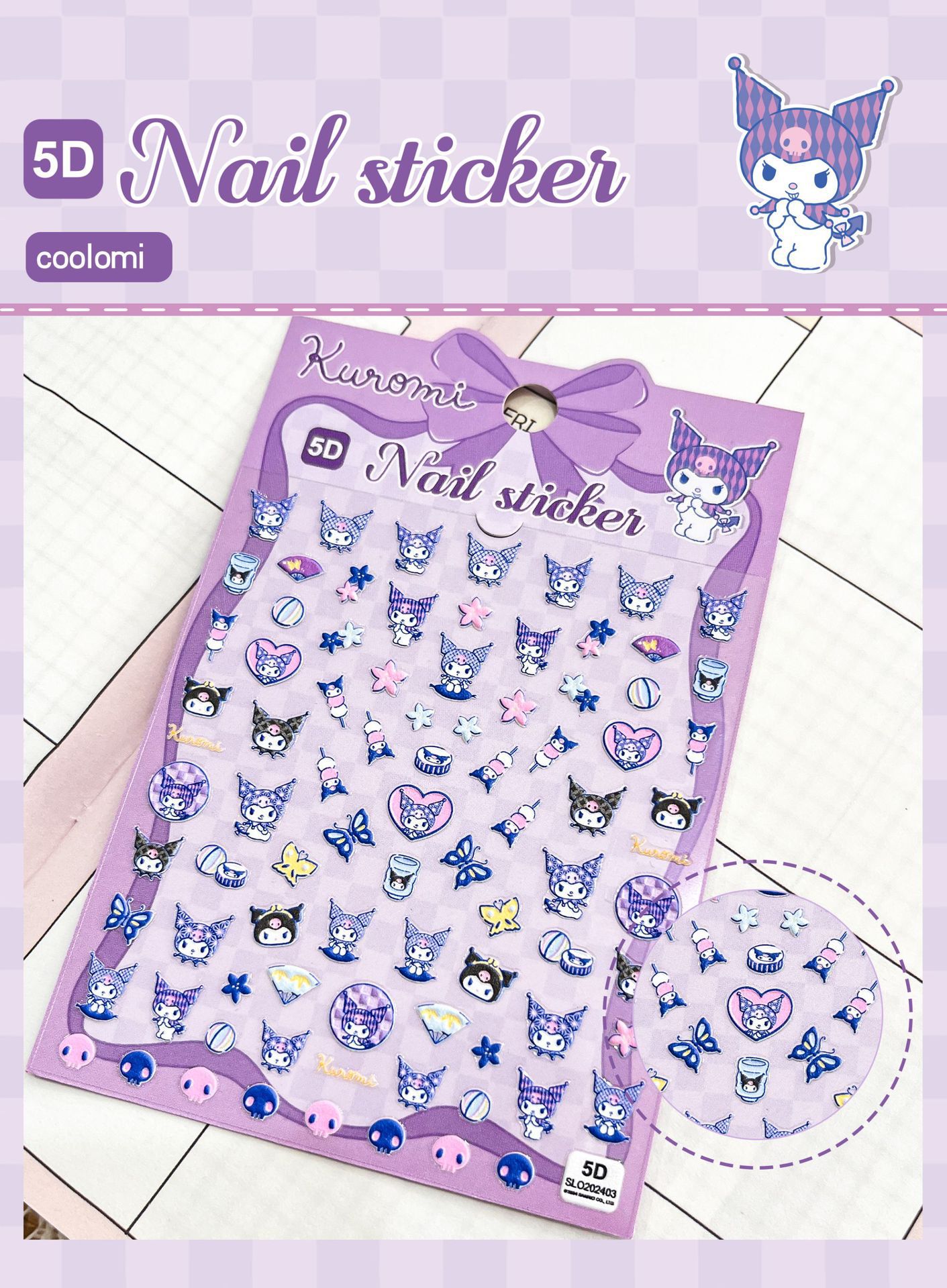 산리오 5D 양각 네일 스티커 어린이 만화 소녀 쿨로 미 스티커 방수 장식 스티커 네일 아트 스티커스토어 가기