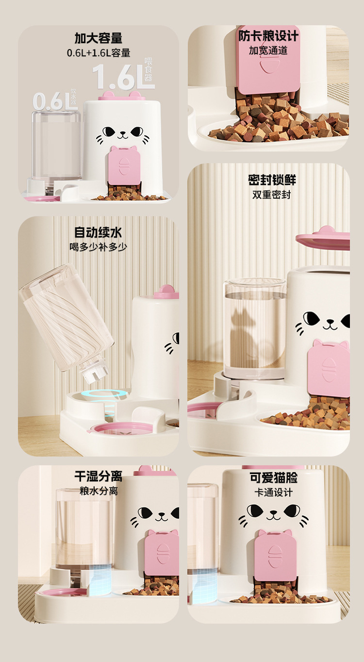 국경 간 폭발 고양이 얼굴 피더 물 식품 통합 피더 먹이 그릇 젖은 건조 분리 개 그릇 고양이 식품 저장 그릇