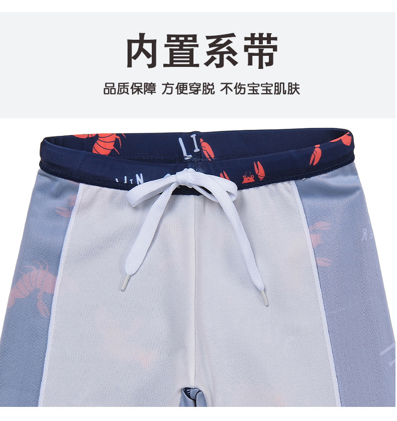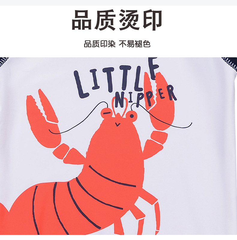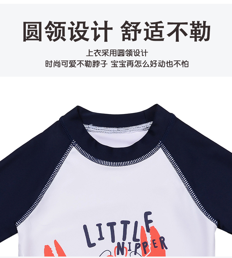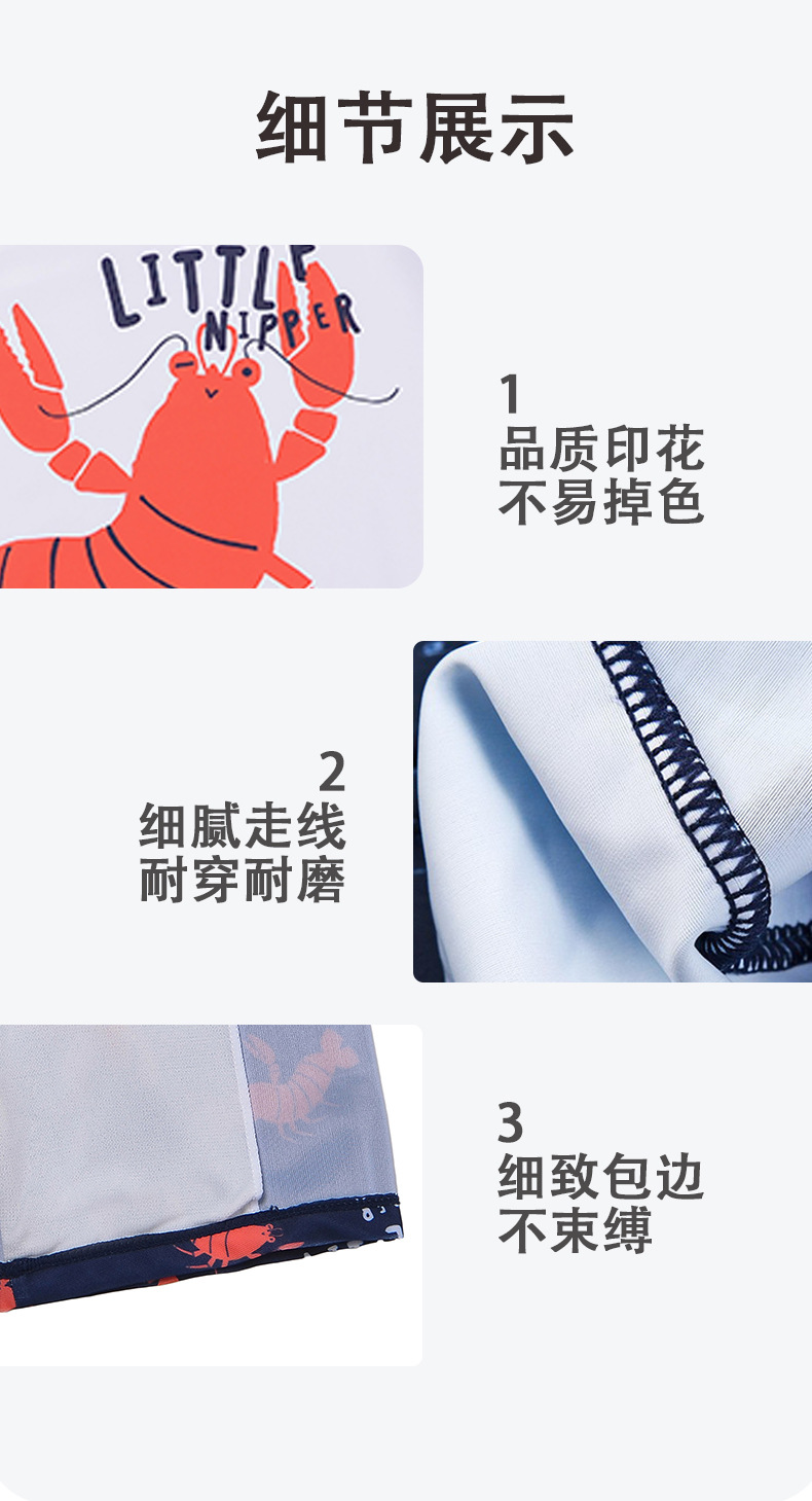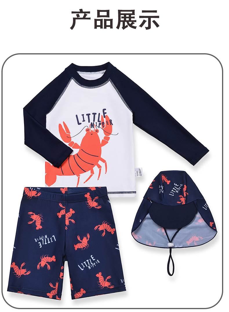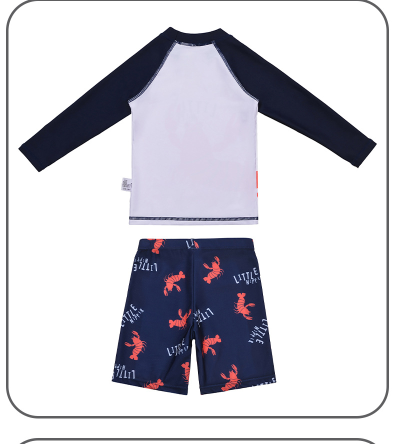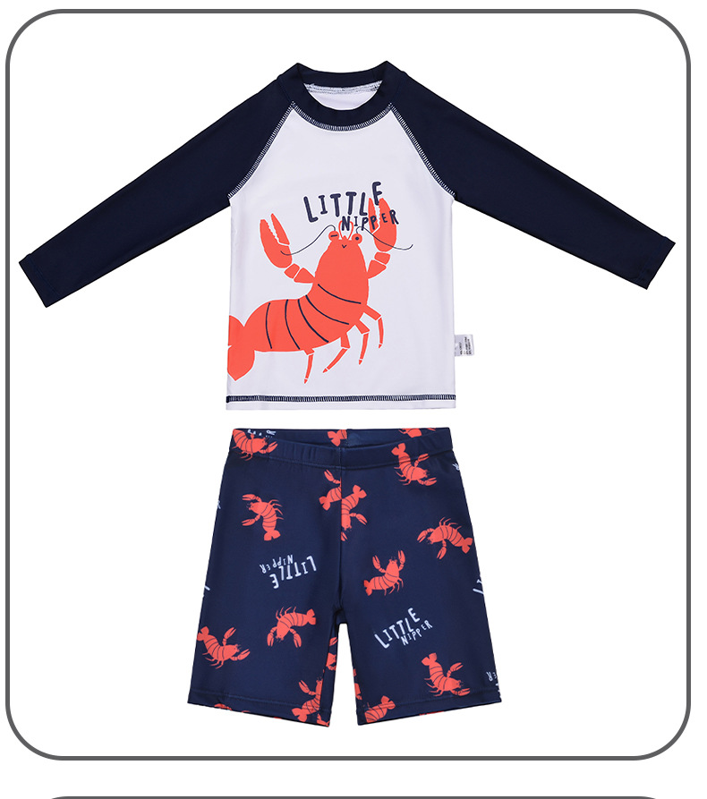 남아용 수영복 3종 세트, 가재 프린트 긴팔/반팔 분리형 세트, 속건성 자외선 차단 아동용 비치 수영복