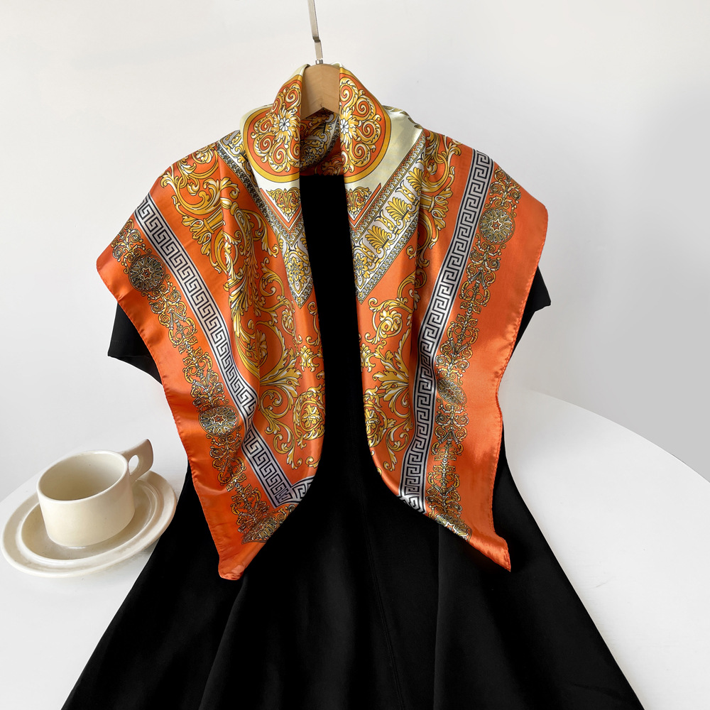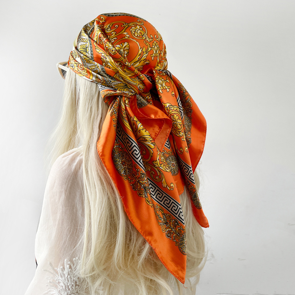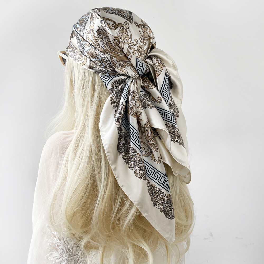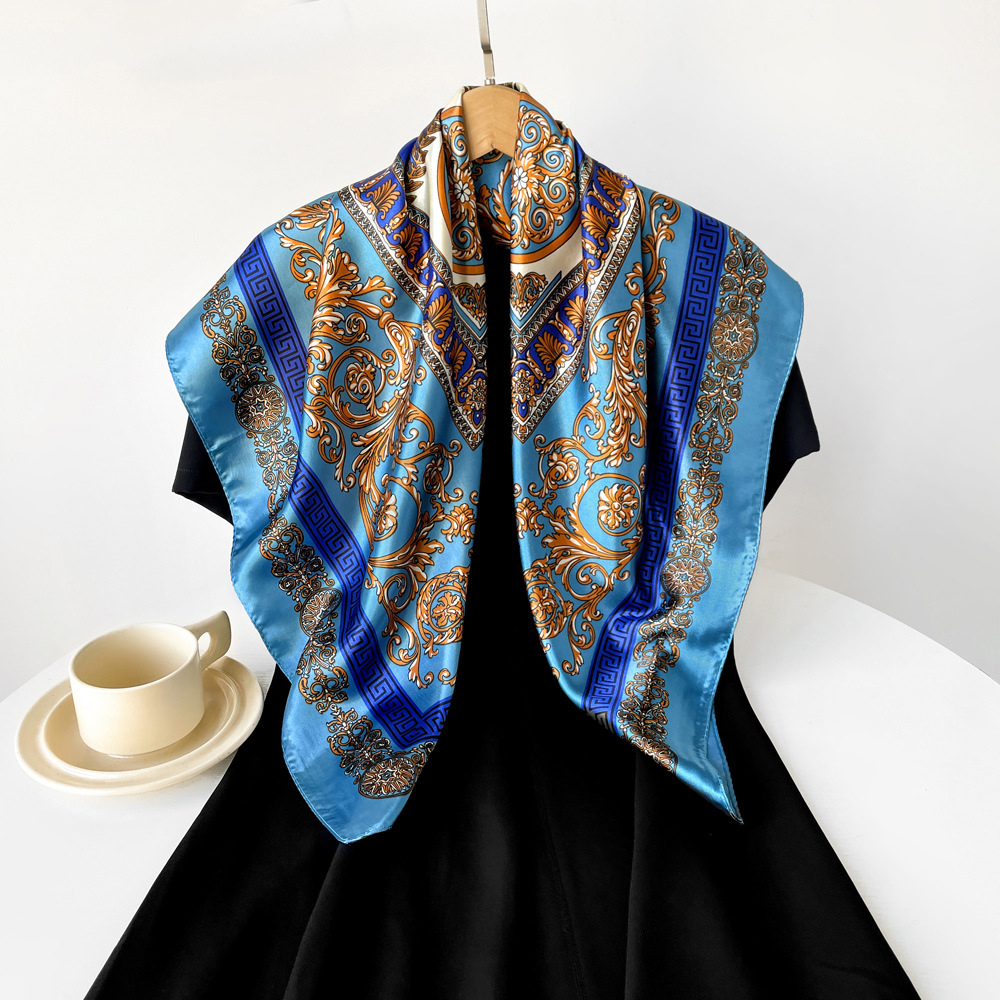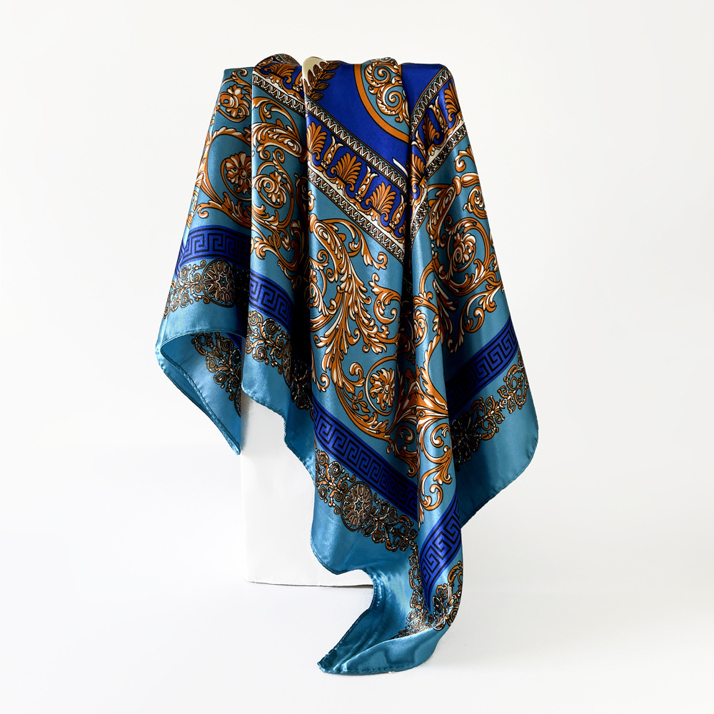 90*90cm 스카프 여성 대형 사각형 새 인쇄 복고풍 터번 국경 중동 새틴 스카프 도매