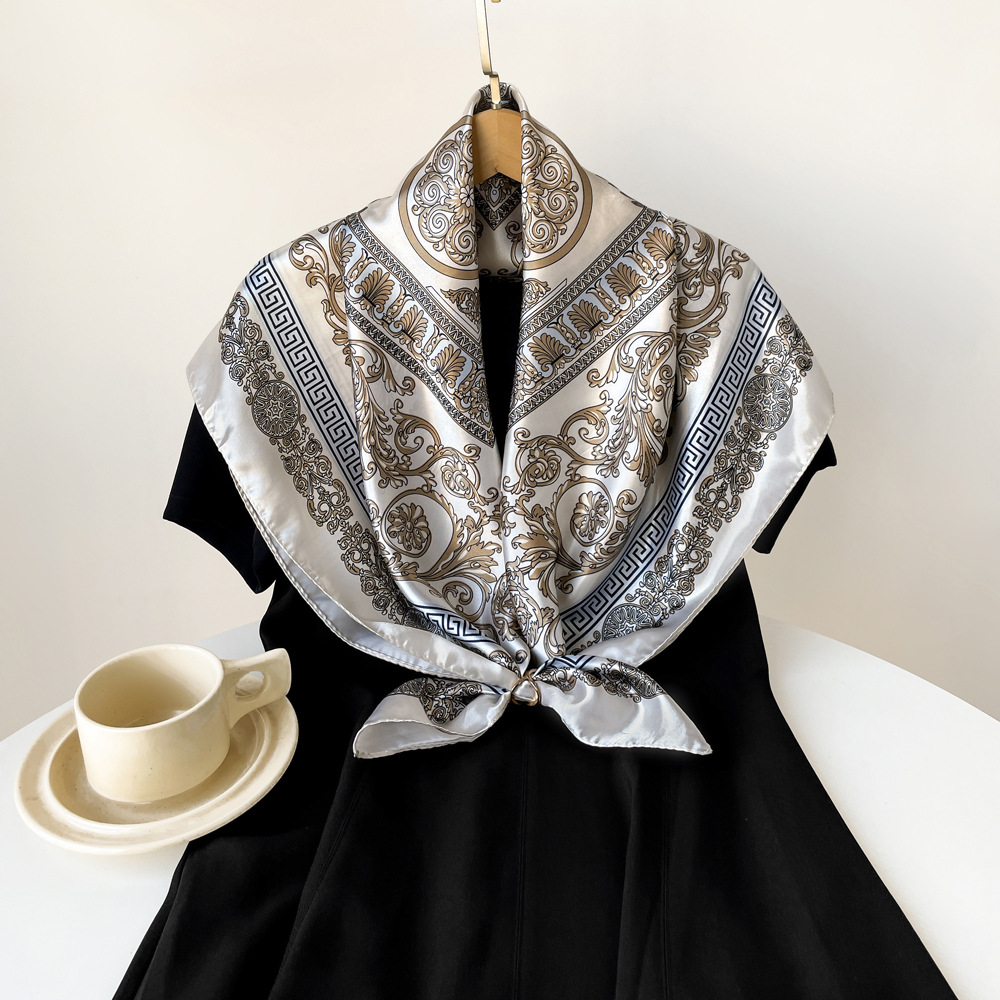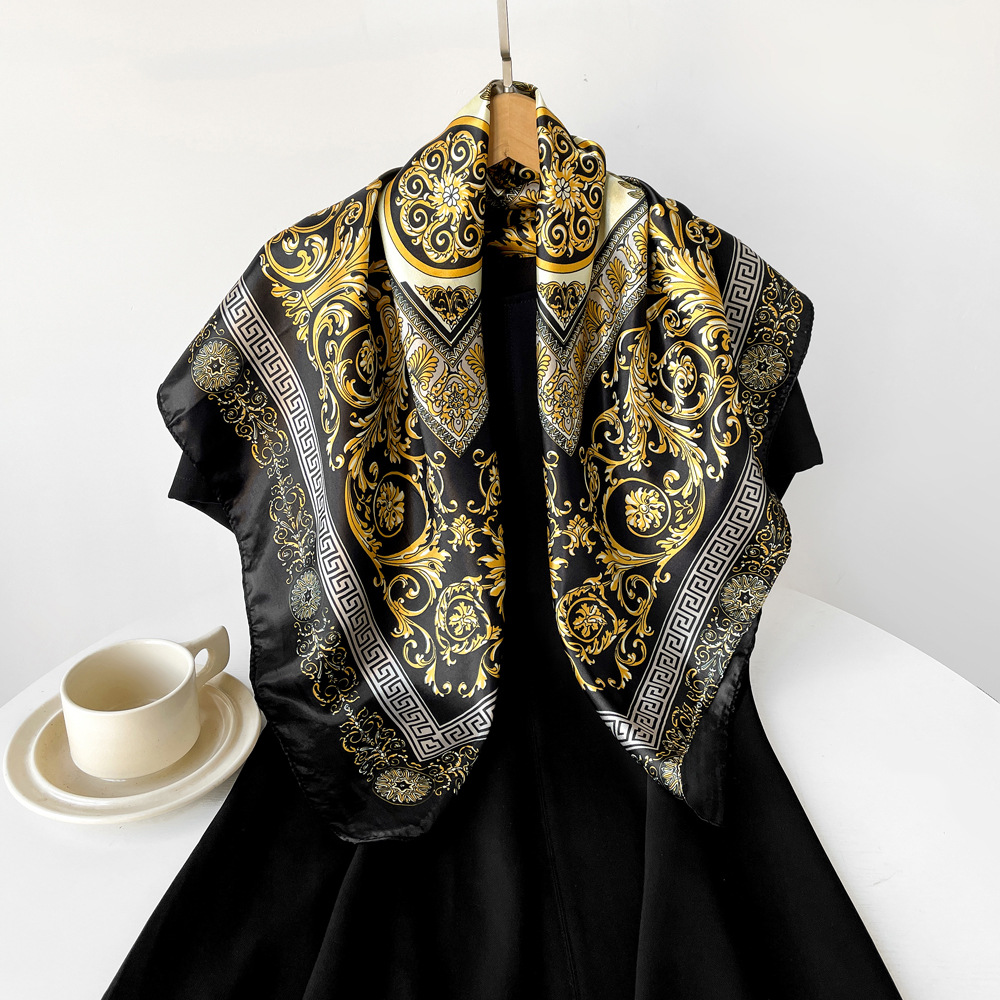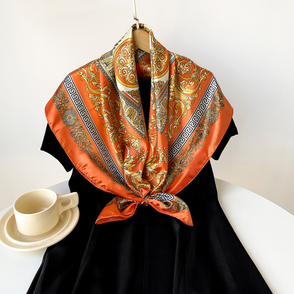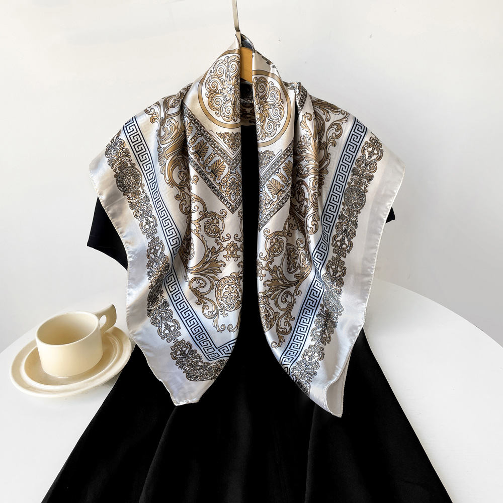 90*90cm 스카프 여성 대형 사각형 새 인쇄 복고풍 터번 국경 중동 새틴 스카프 도매