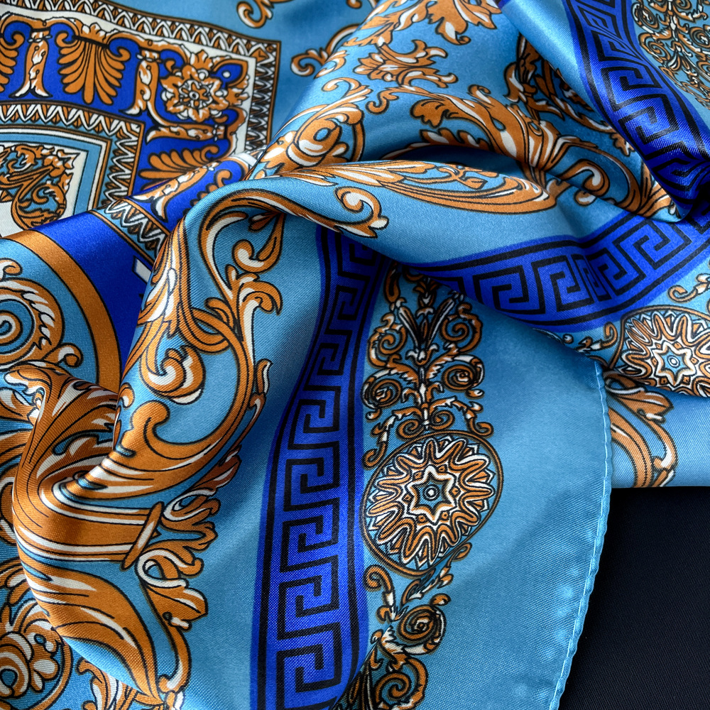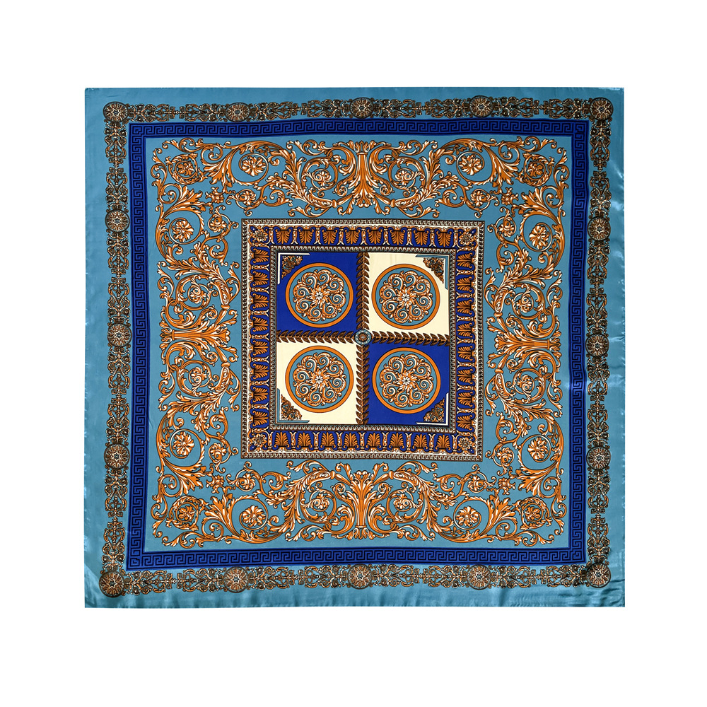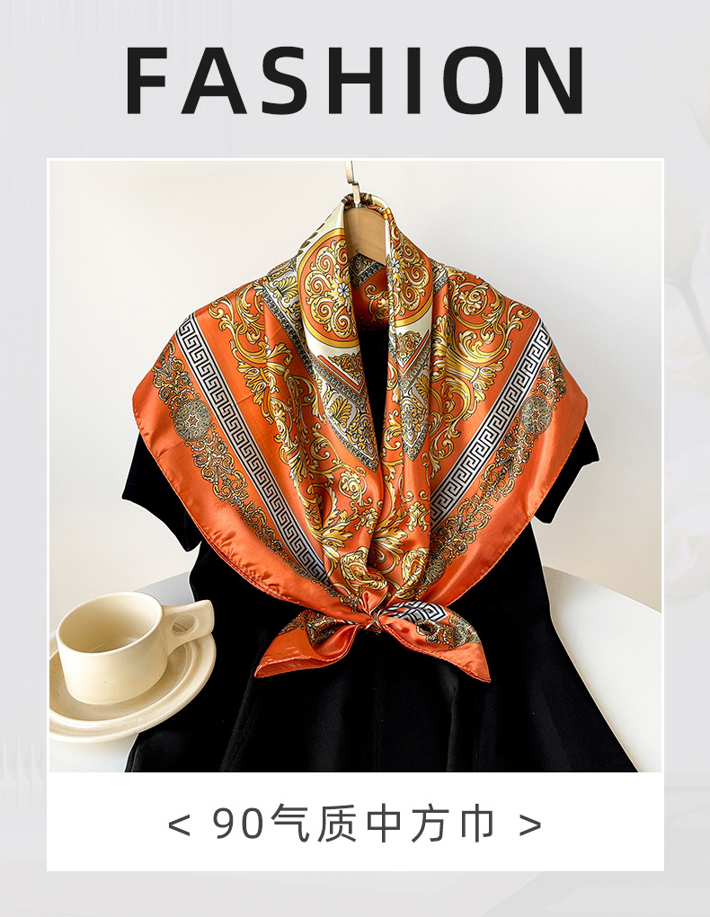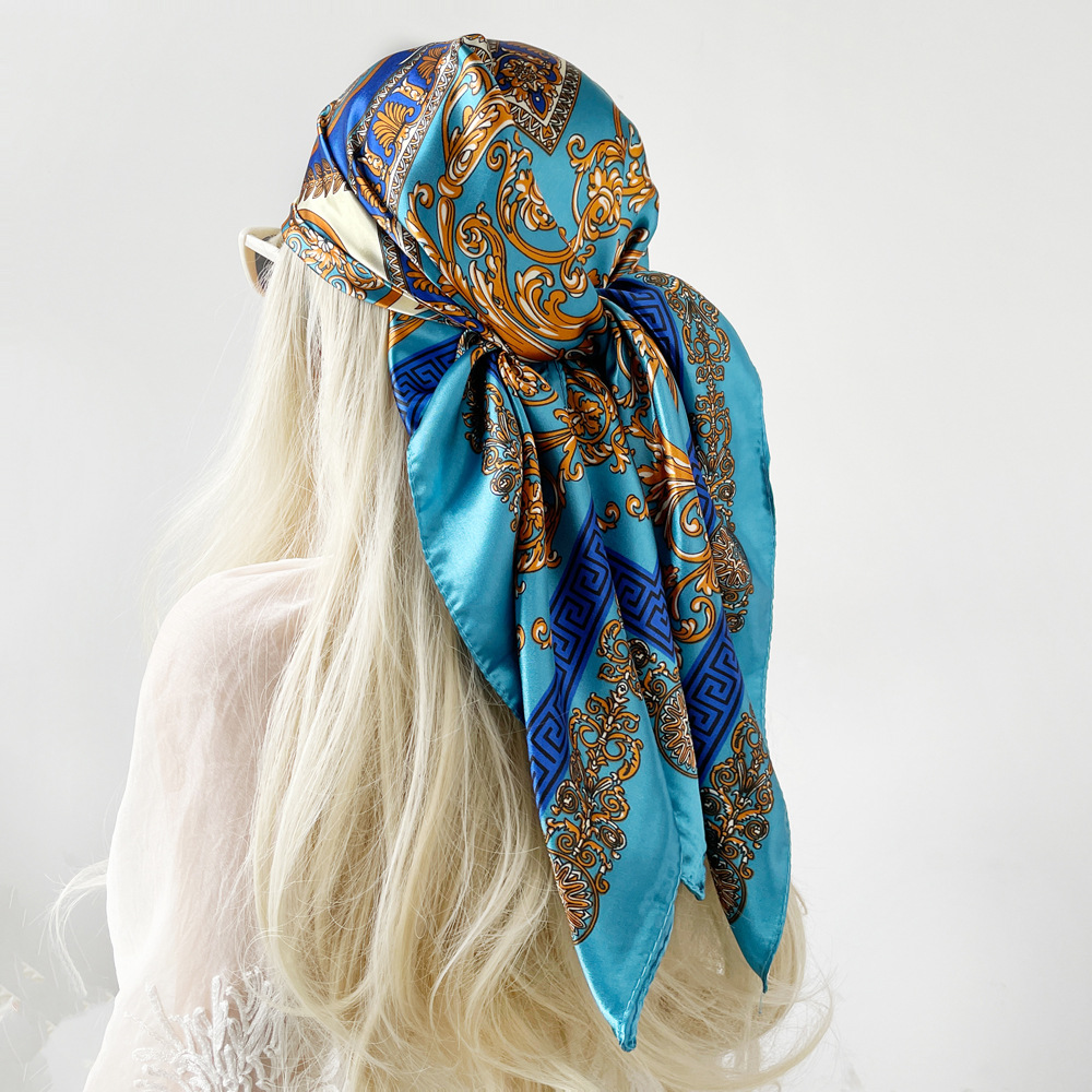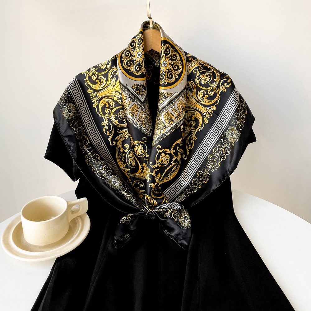 90*90cm 스카프 여성 대형 사각형 새 인쇄 복고풍 터번 국경 중동 새틴 스카프 도매