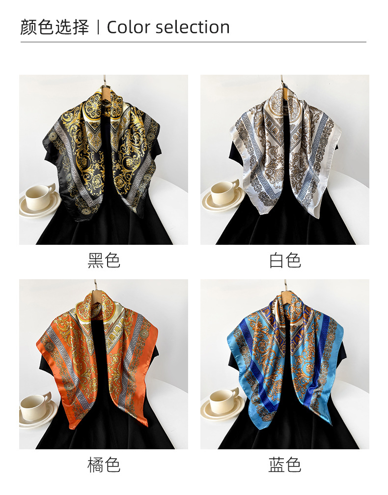 90*90cm 스카프 여성 대형 사각형 새 인쇄 복고풍 터번 국경 중동 새틴 스카프 도매스토어 가기