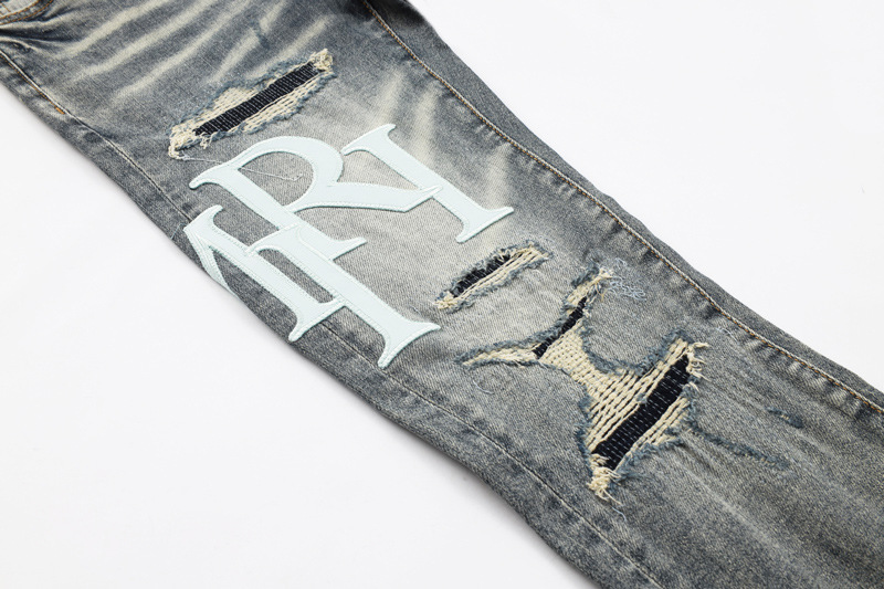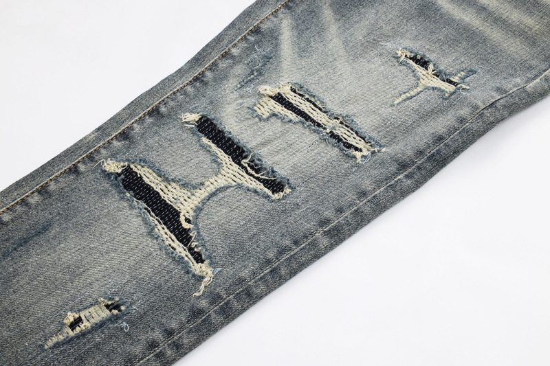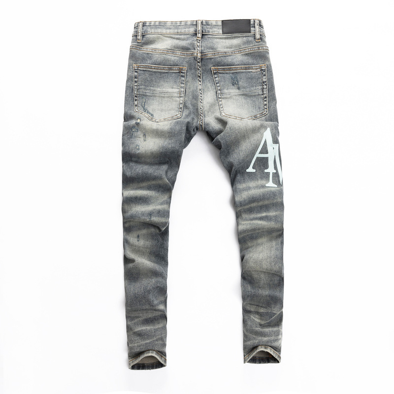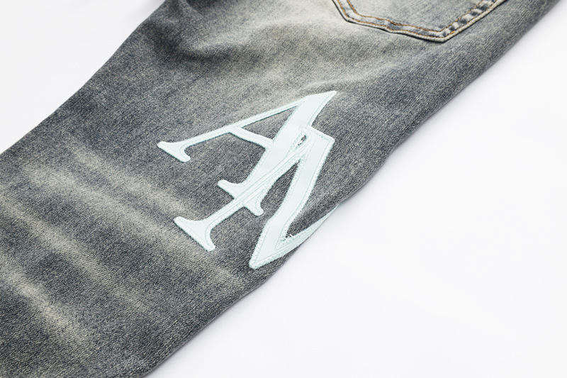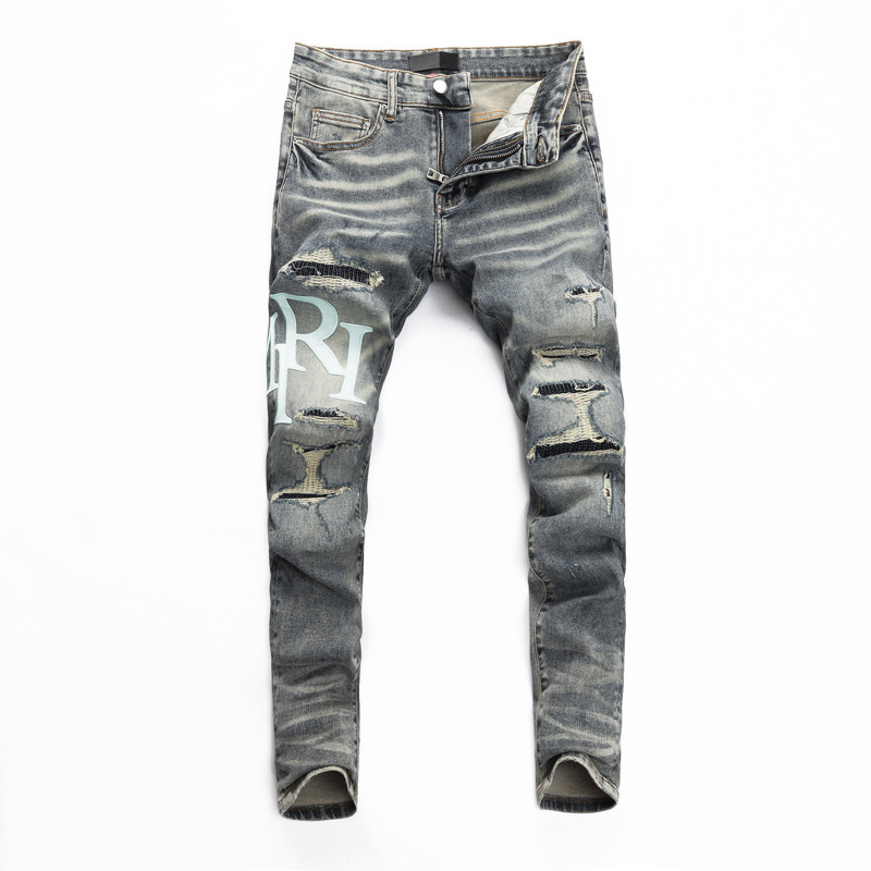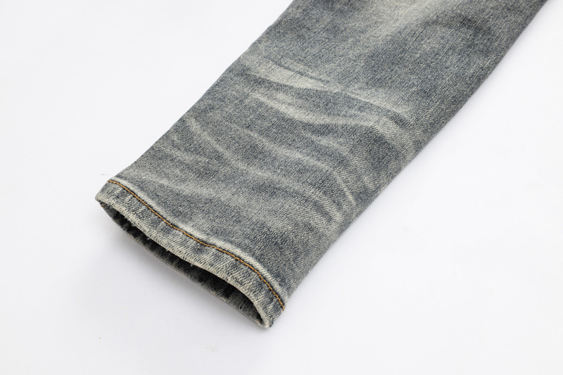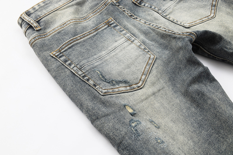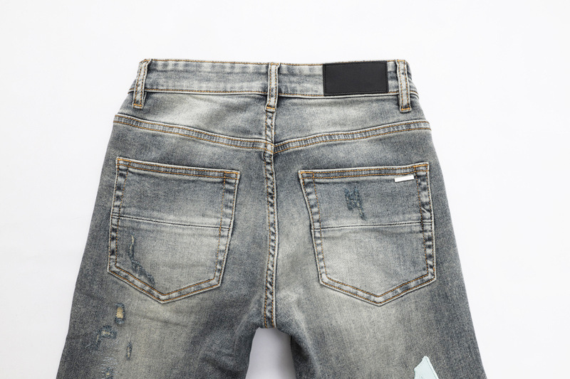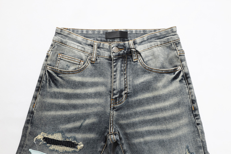 유럽과 미국의 스트리트 트렌디 패션 청바지 남성용 향수 세척 유행 브랜드 자수 패치 스트레치 타이트 스키니 바지스토어 가기