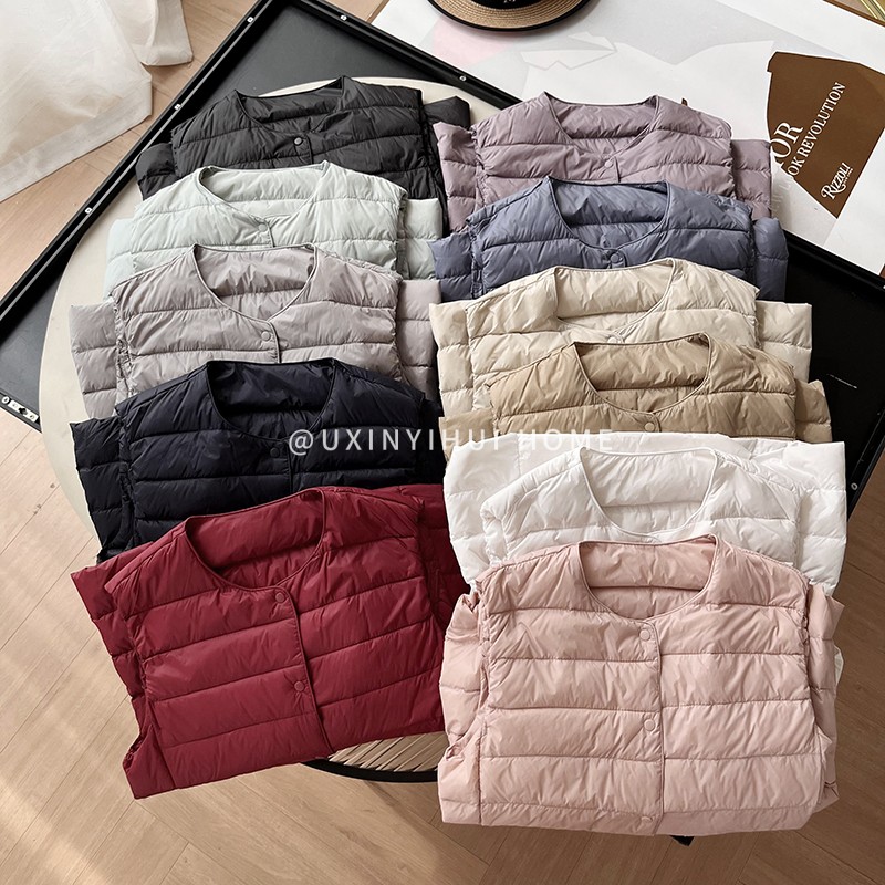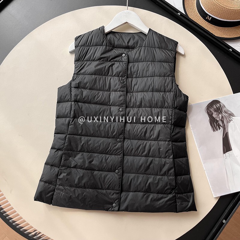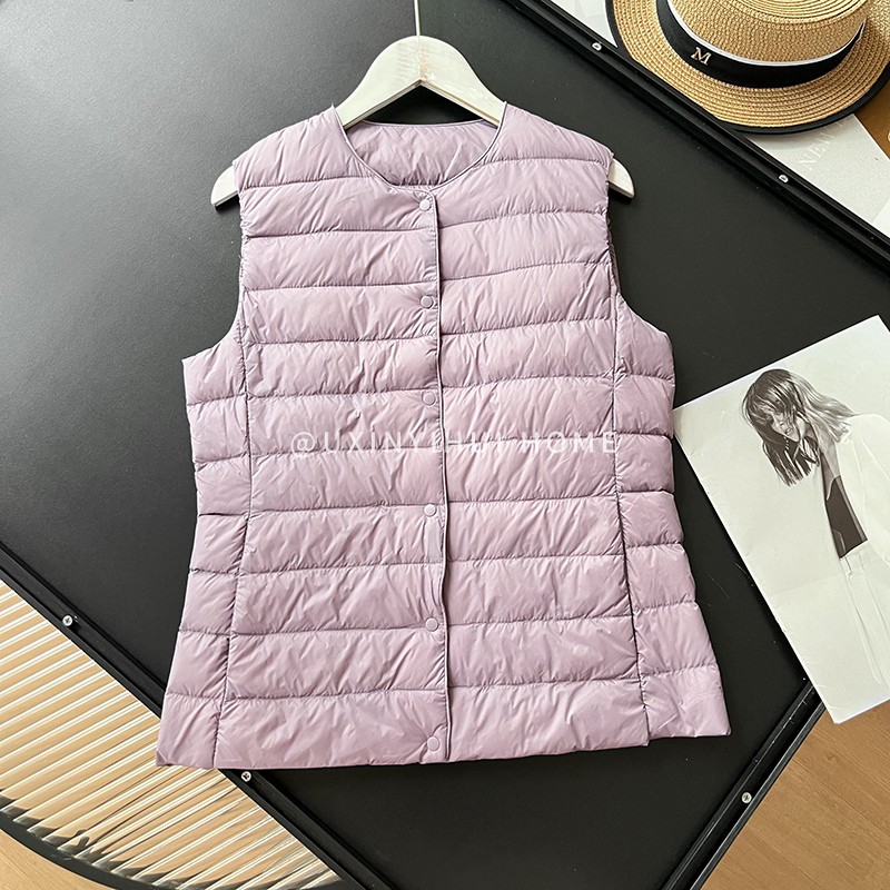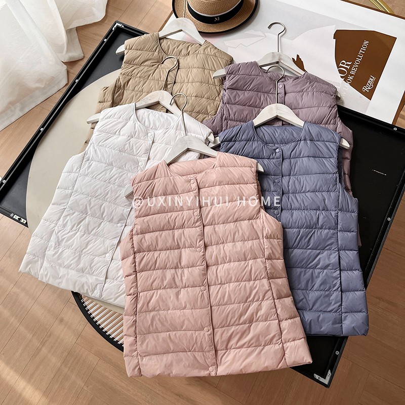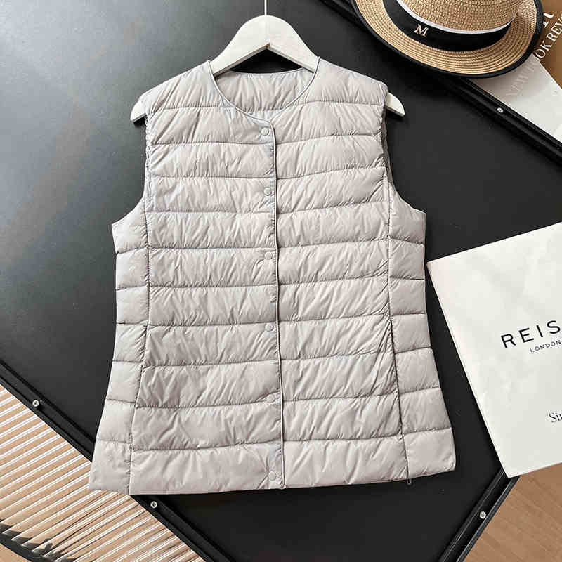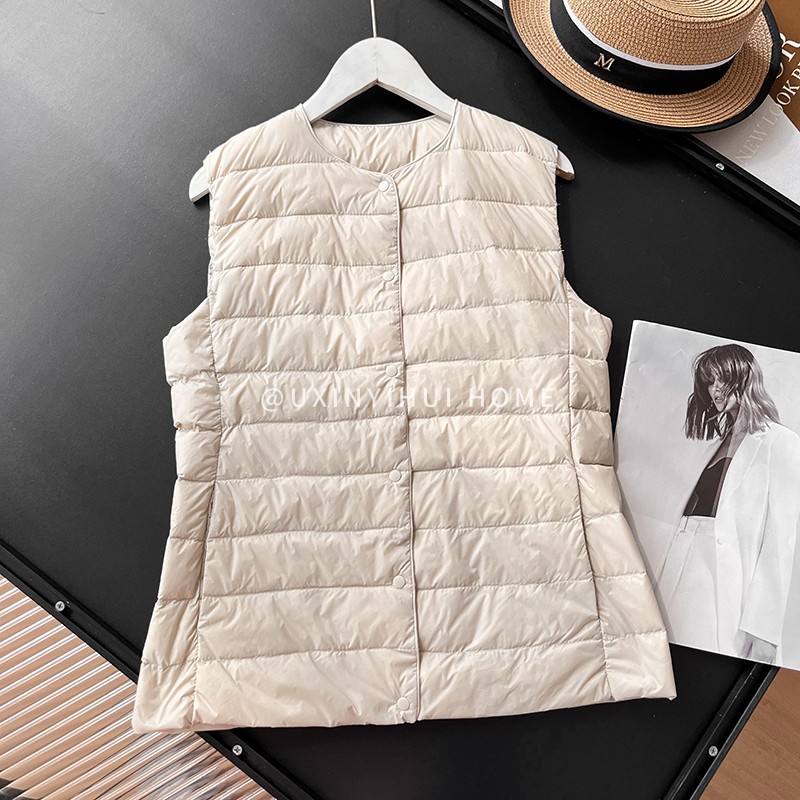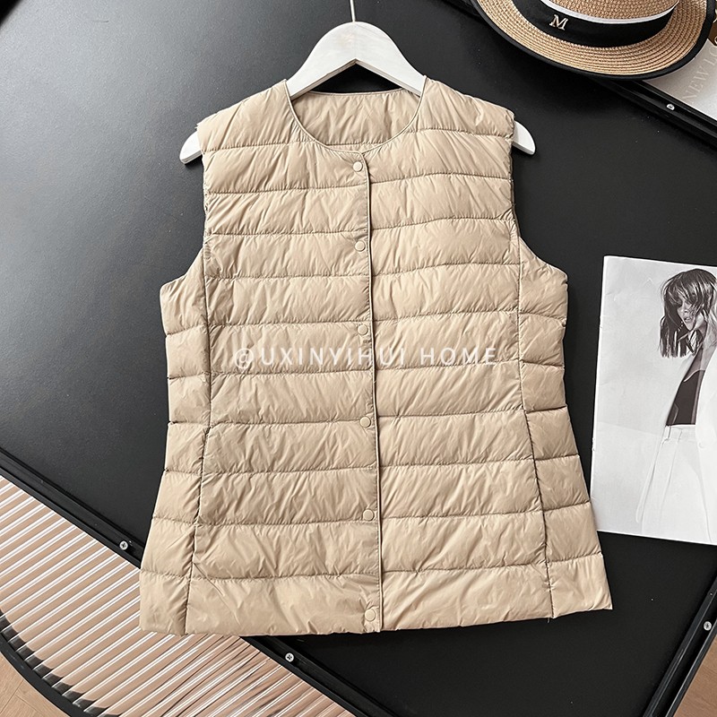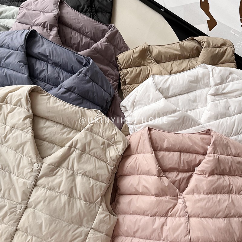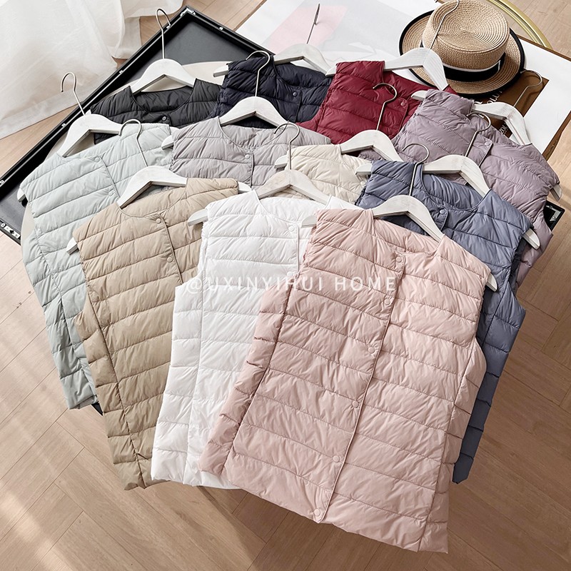매일 목록! 여성용 가을과 겨울 경량 다운 재킷 라이너 세련된 민소매 스택 화이트 오리 다운 조끼스토어 가기