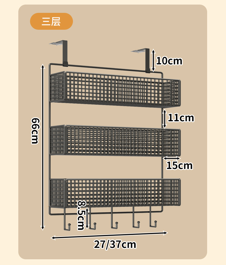 • 후크가 있는 흰색 3층 소형 사이즈
