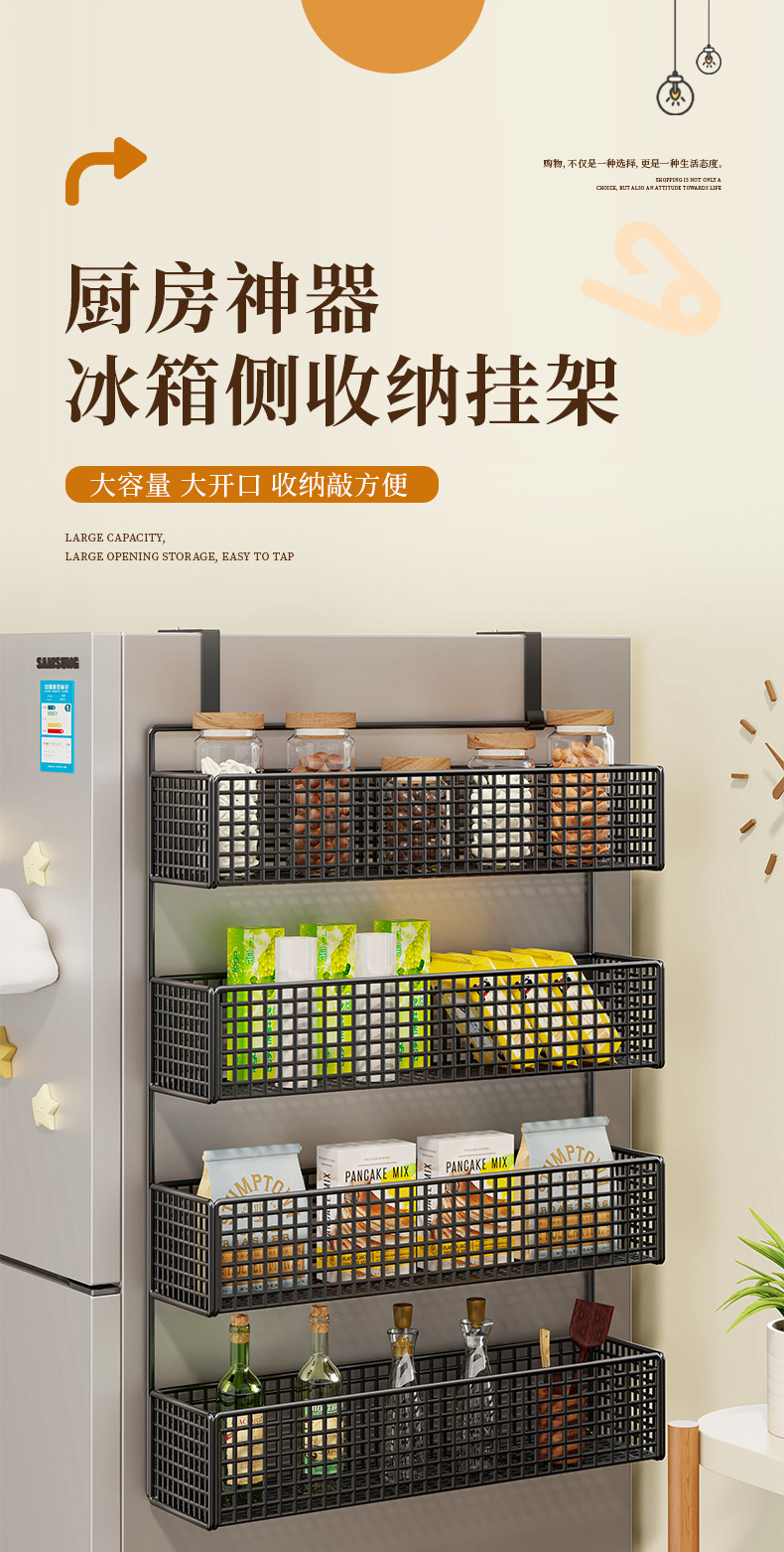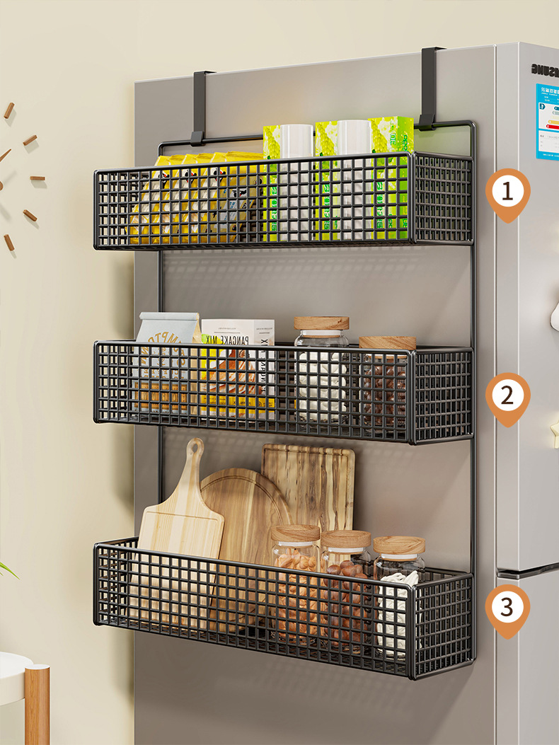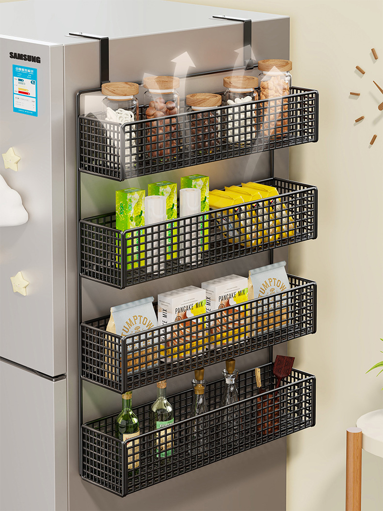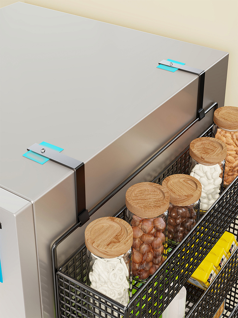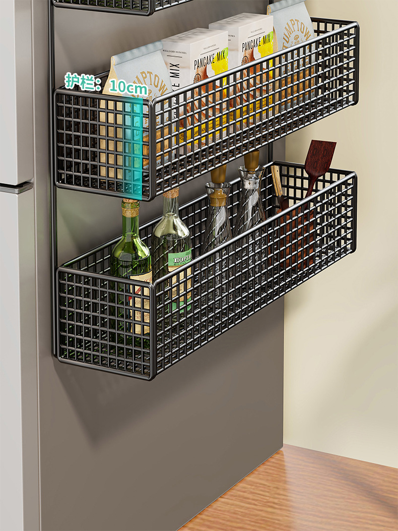 냉장고 저장 랙 사이드 사이드 스토리지 랙 펀치 프리 주방 용품 다층 보존 필름 사이드 벽 랙스토어 가기