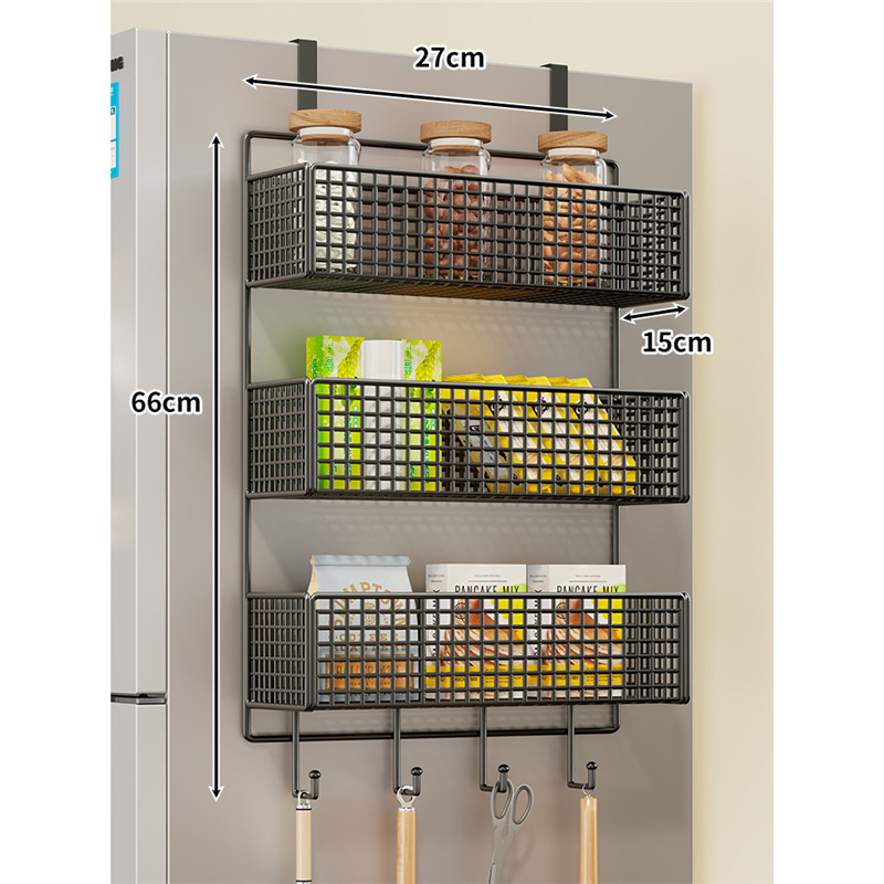 냉장고 저장 랙 사이드 사이드 스토리지 랙 펀치 프리 주방 용품 다층 보존 필름 사이드 벽 랙