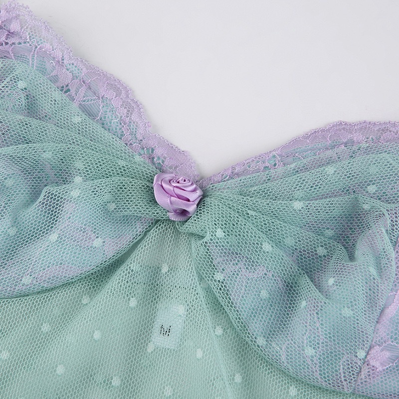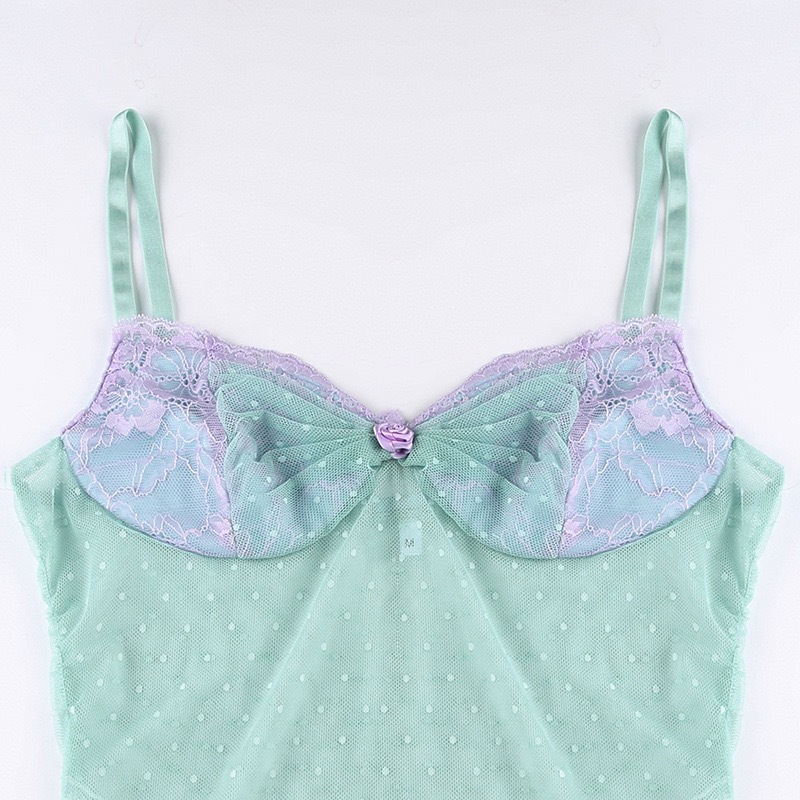 섹시한 불규칙한 메쉬 도트 크로스 헴 코시 카미 솔 조끼 할로우 관점 로우 컷 이너 탑