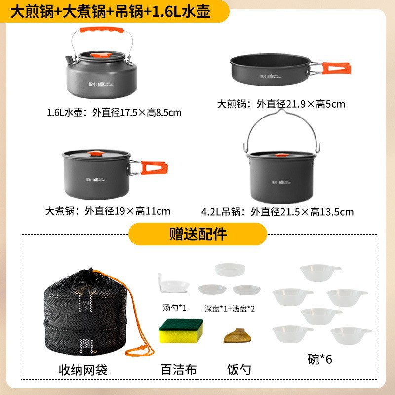 Tuocun 야외 캠핑 용품 피크닉 쿠커 조리기구 요리 필드 스토브 주전자 오렌지 손잡이 휴대용 세트 냄비스토어 가기