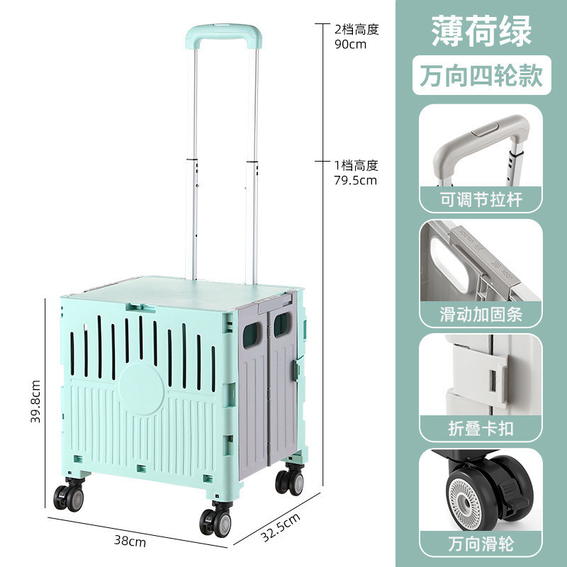 새로운 프론트 플레이트 중공 통기성 4 륜 유니버설 휠 접이식 트롤리 휴대용 슈퍼마켓 쇼핑 카트 캠핑 트롤리