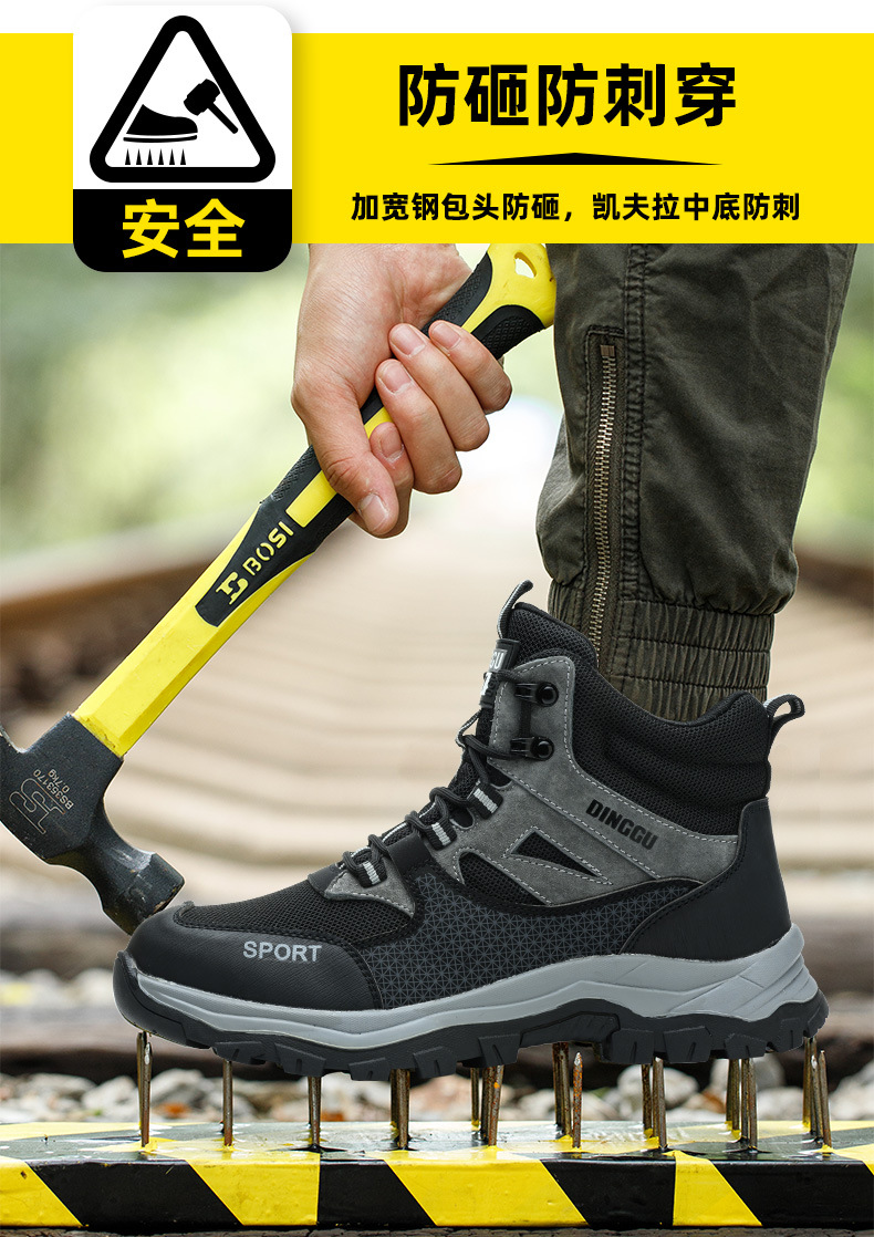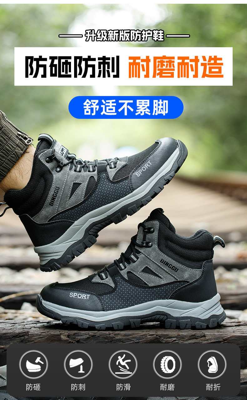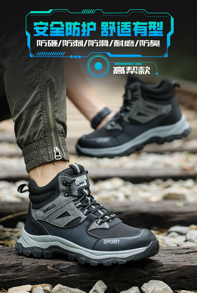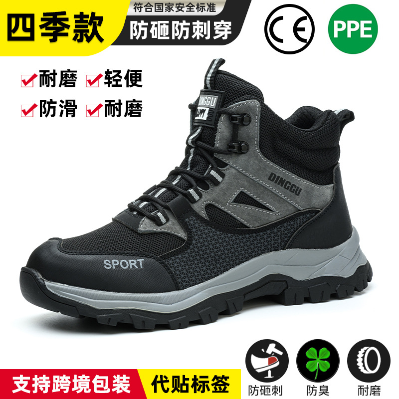 Meikeduo 국경 간 노동 보호 신발 사계절 남성 하이 탑 스매싱 방지 펑크 마모 방지 안전 신발 냄새 방지 스틸 헤드 보호 신발
