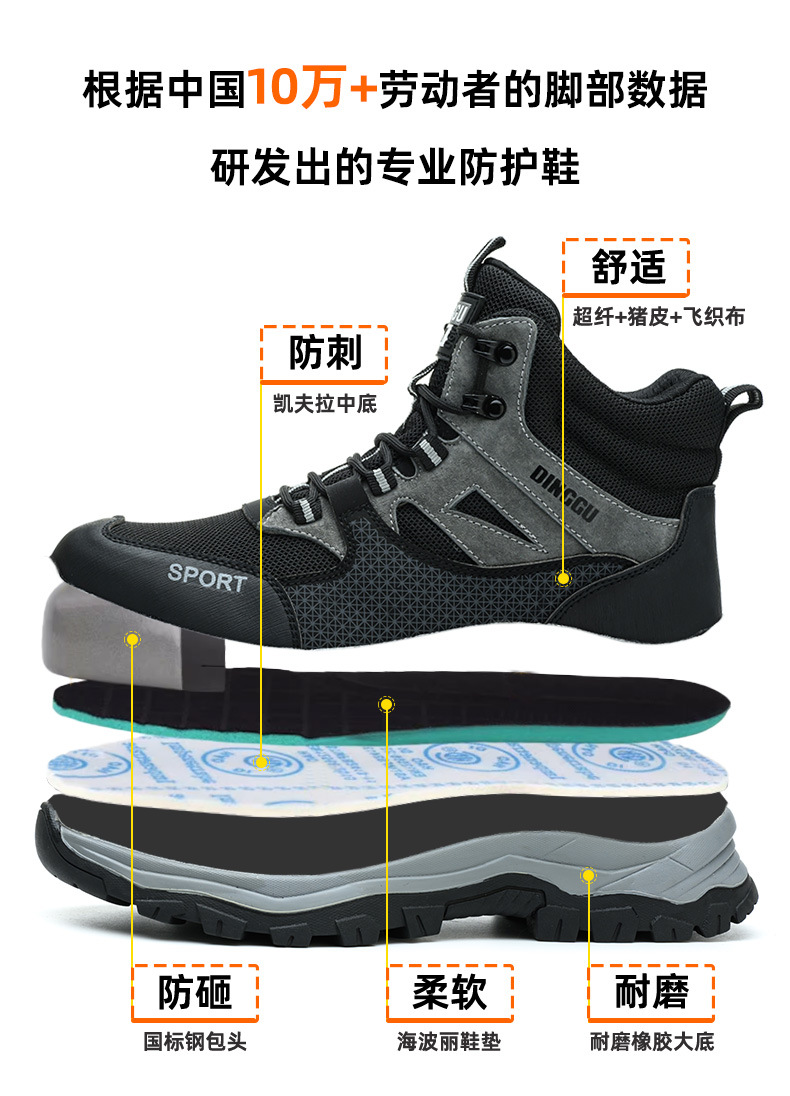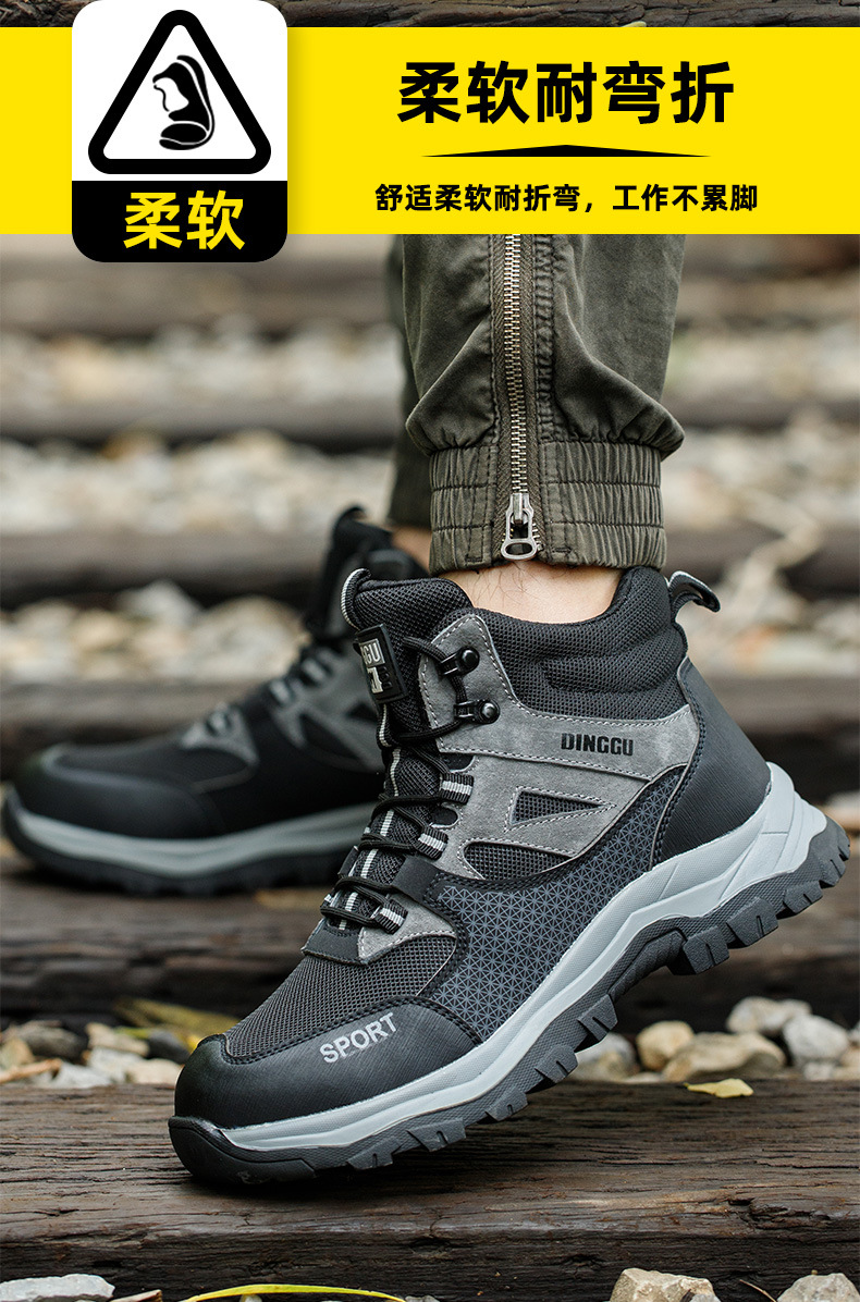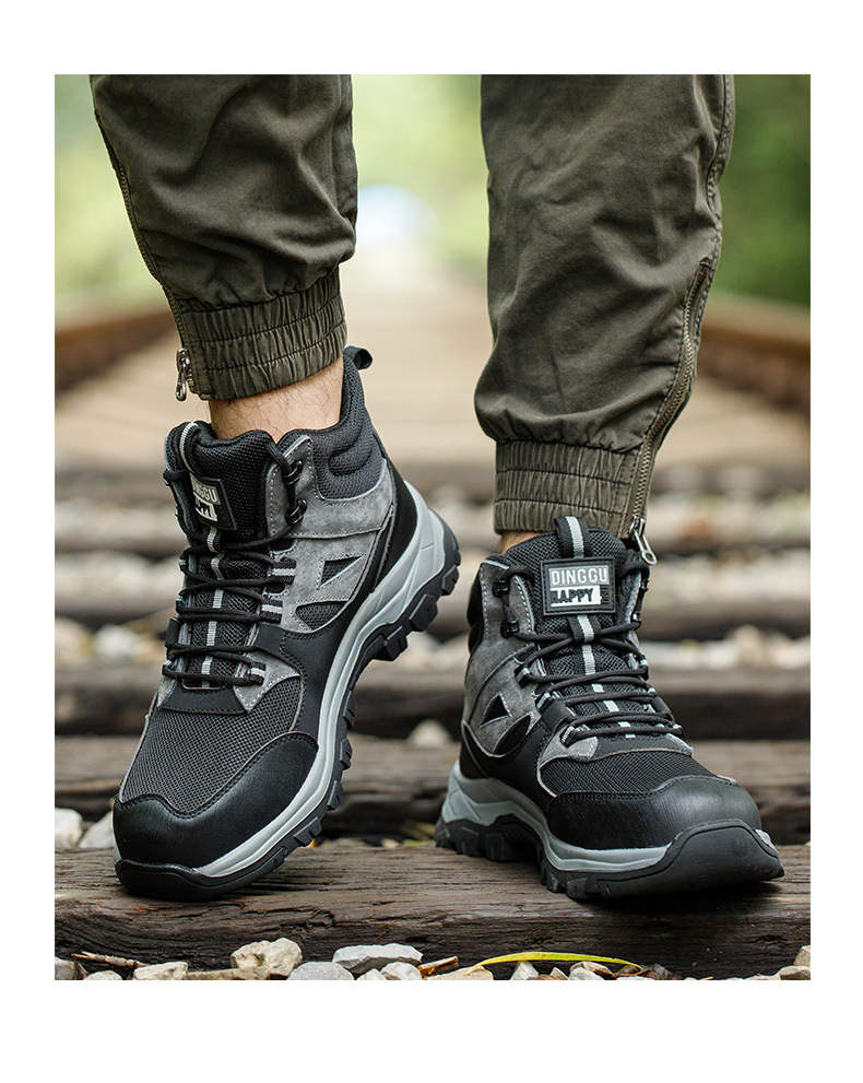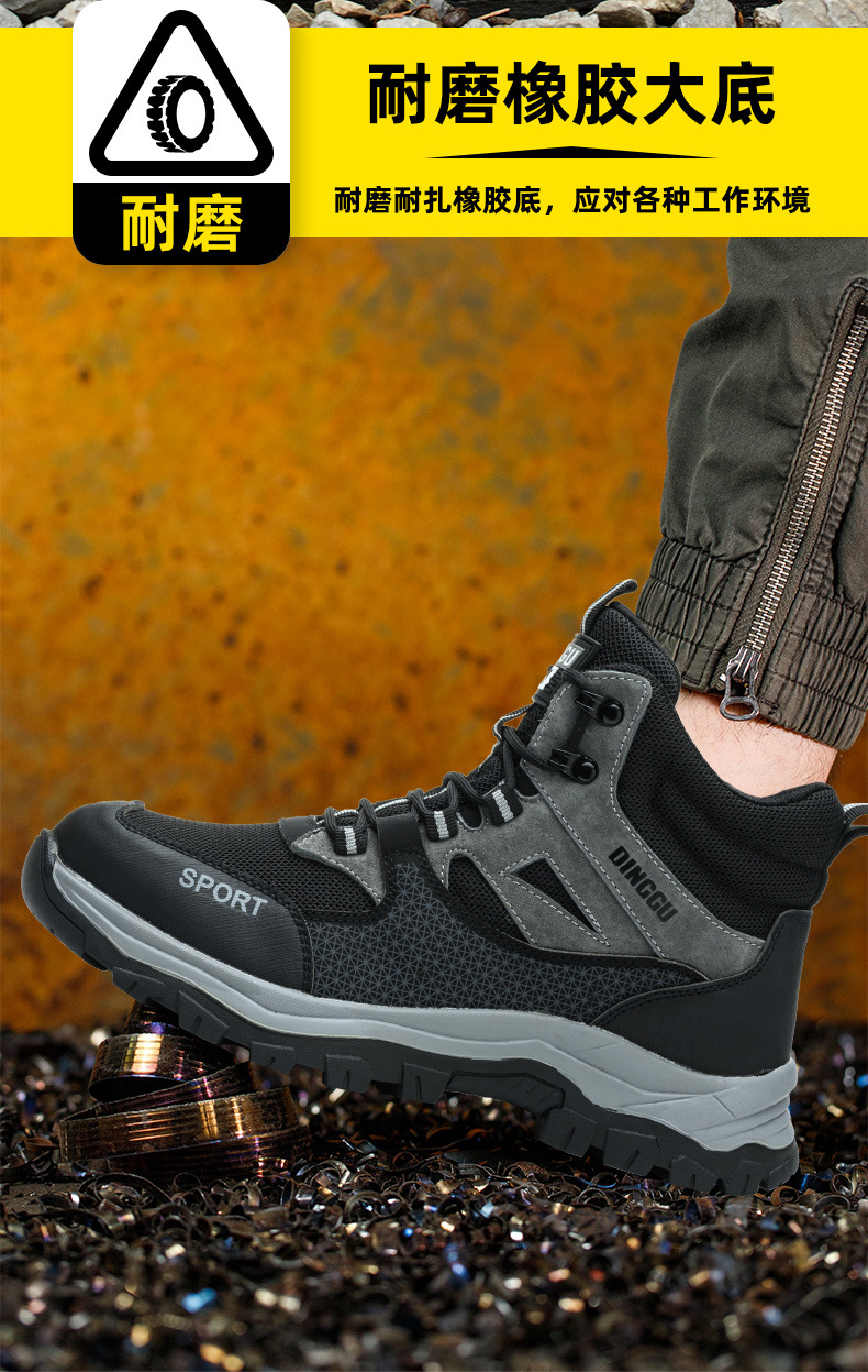 Meikeduo 국경 간 노동 보호 신발 사계절 남성 하이 탑 스매싱 방지 펑크 마모 방지 안전 신발 냄새 방지 스틸 헤드 보호 신발