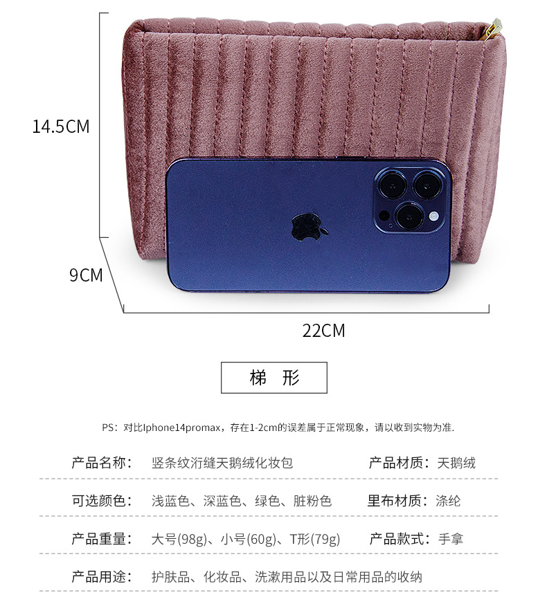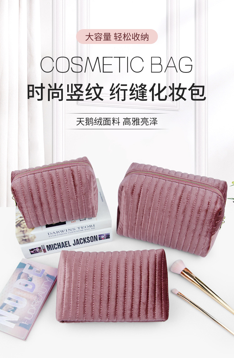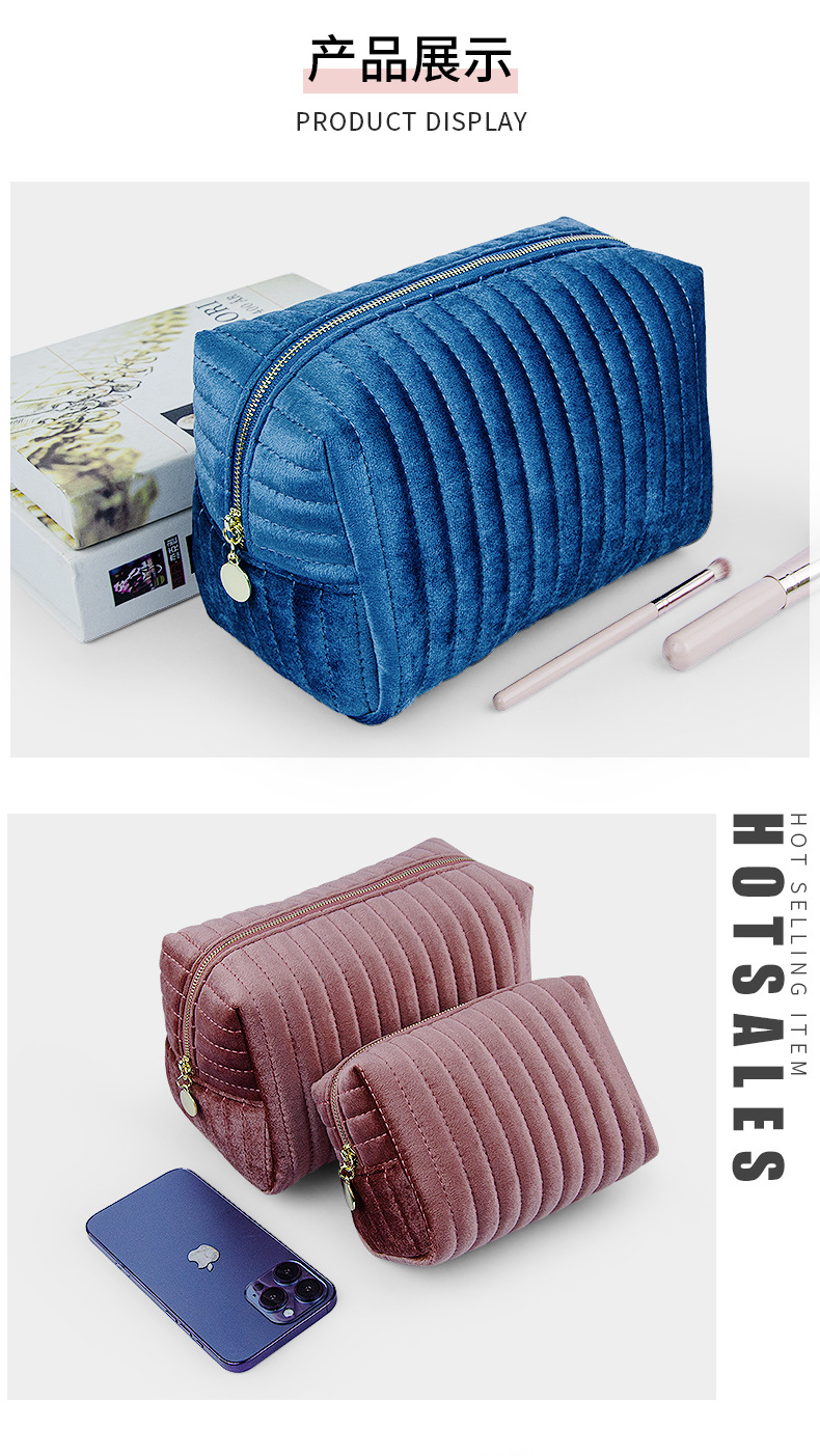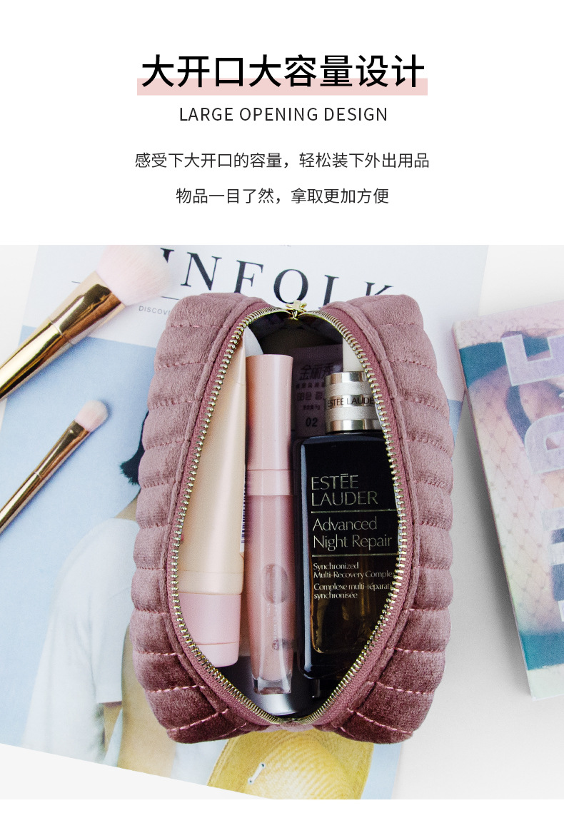 现货大容量天鹅绒化妆包女意大利绒便捷式高颜值伴手礼化妆收纳包