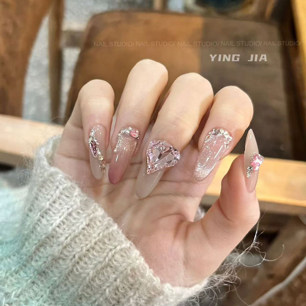가벼운 파우더 뾰족한 바닥 특수 모양의 다이아몬드 사랑 지방 광장 눈송이 나비 k9 유리 네일 쥬얼리 착용 네일 액세서리 도매