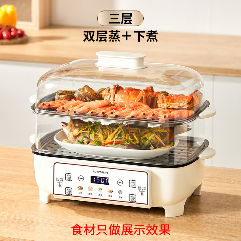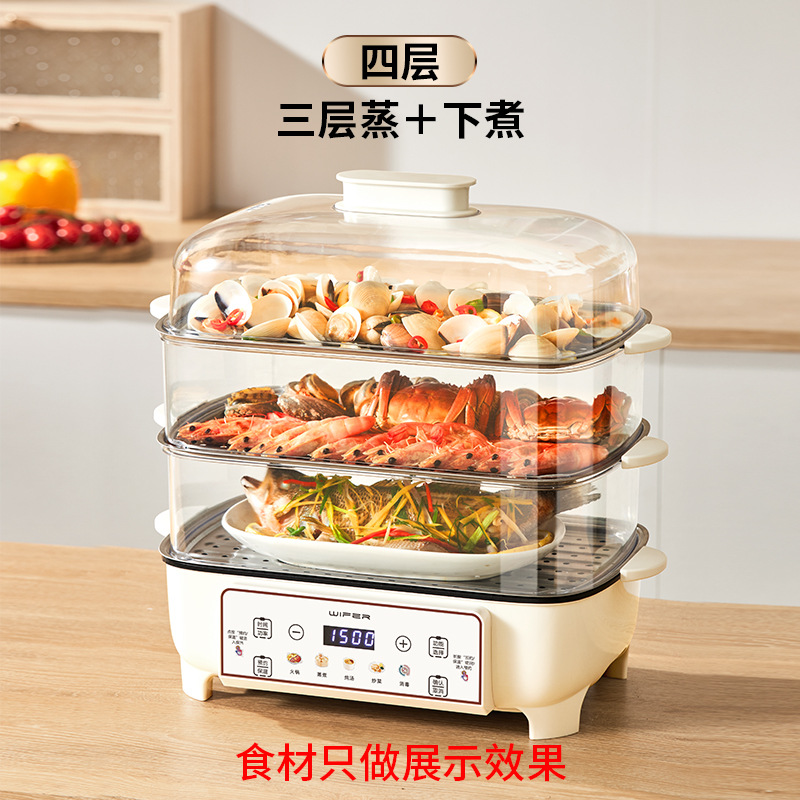 와이파이 전기 증기선 가정용 3 층 다기능 48L 전기 증기선 대용량 원피스 가시 투명 증기선 도매