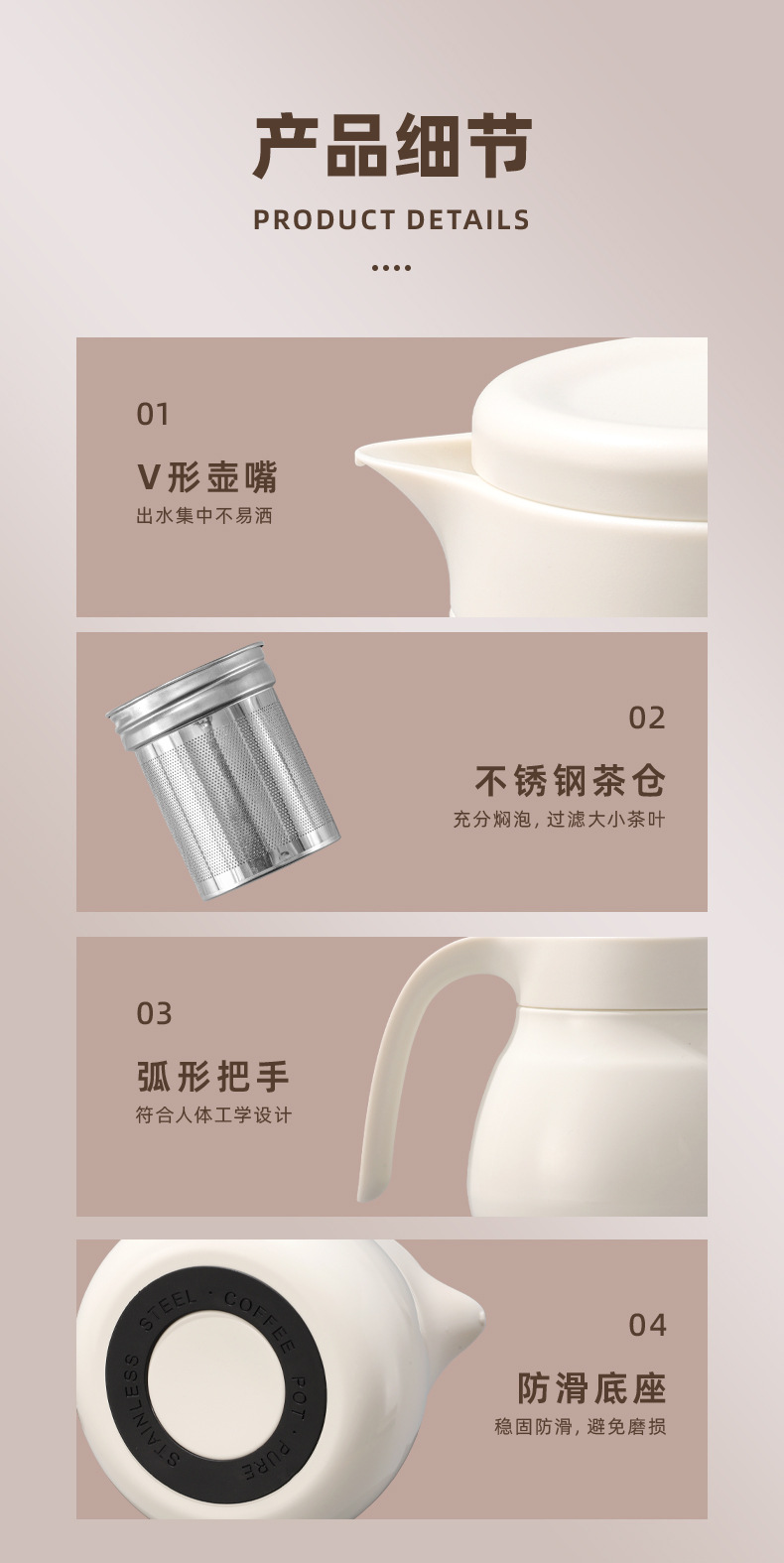 티타늄 절연 냄비 비즈니스 선물 컵으로 덮인 새로운 304 답답한 주전자 차 물 분리 가정용 찐 주전자 커피 포트스토어 가기