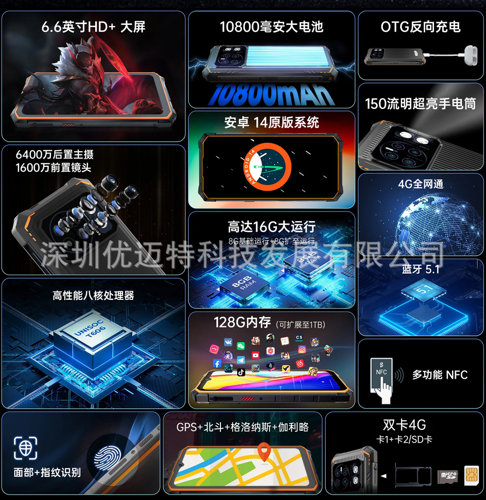 HOTWAV Cyber13 3 방지 스마트 폰 드롭 방지 방수 듀얼 카드 안드로이드 10800 mA 슈퍼 긴 대기