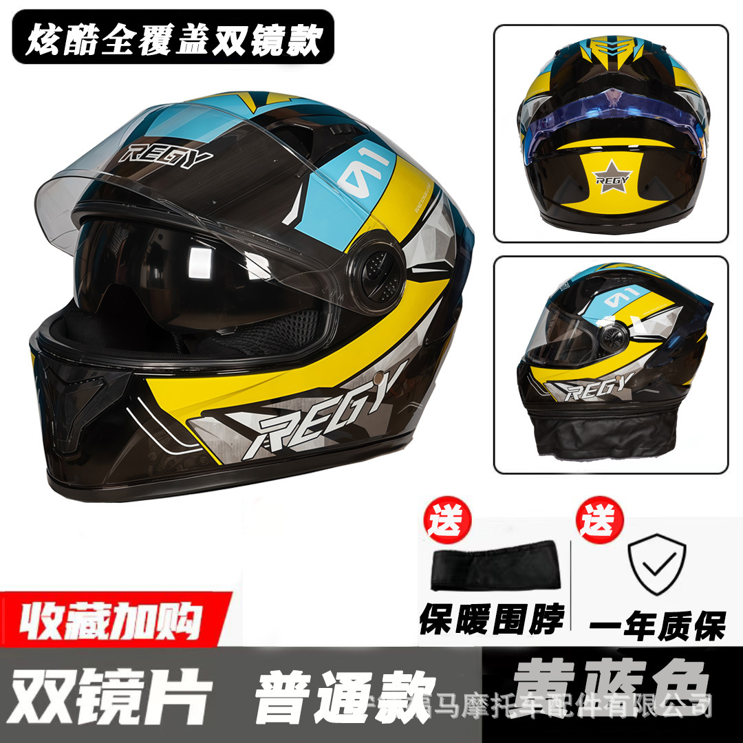 더블 렌즈 풀 헬멧 방풍 모자 남자와 여자의 헬멧 오토바이 헬멧 배터리 자동차 헬멧 사계절 유니버설 안전 헬멧