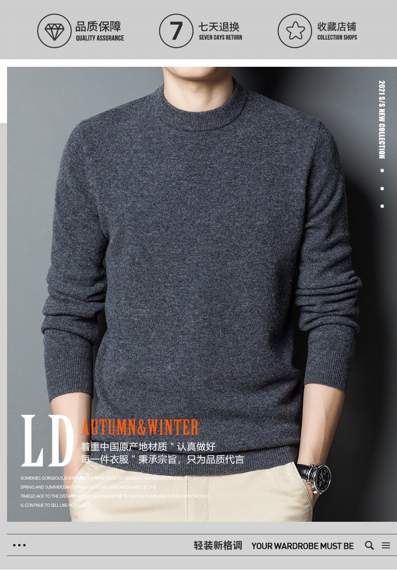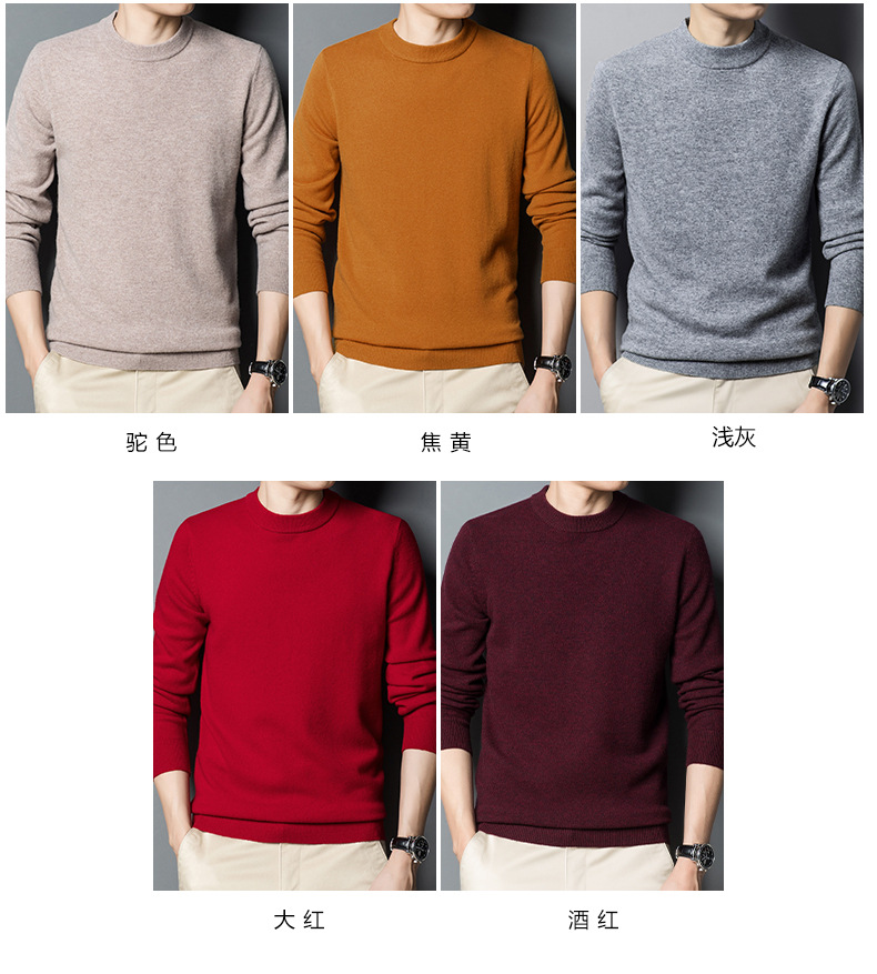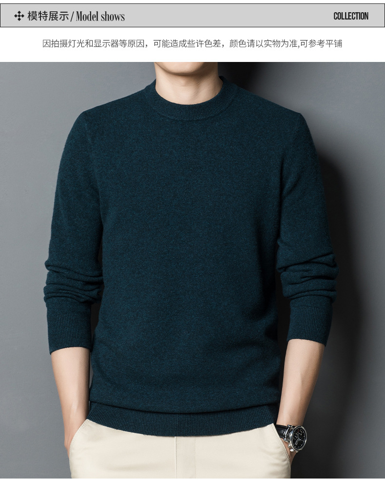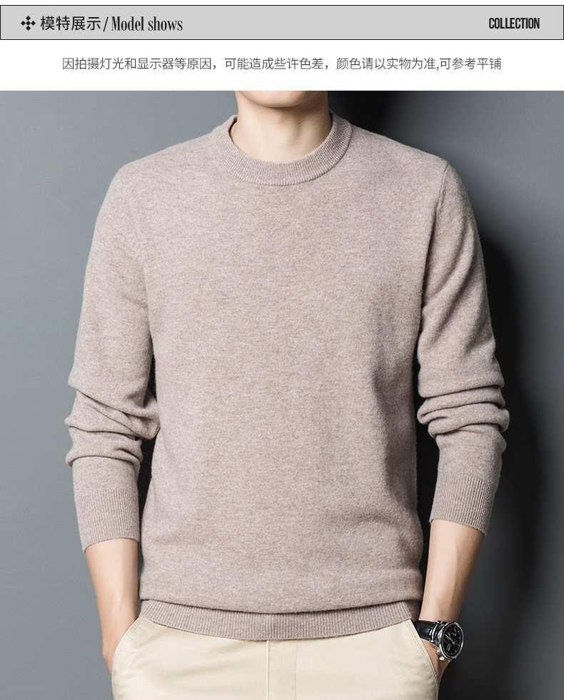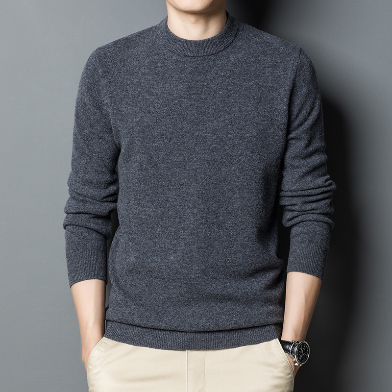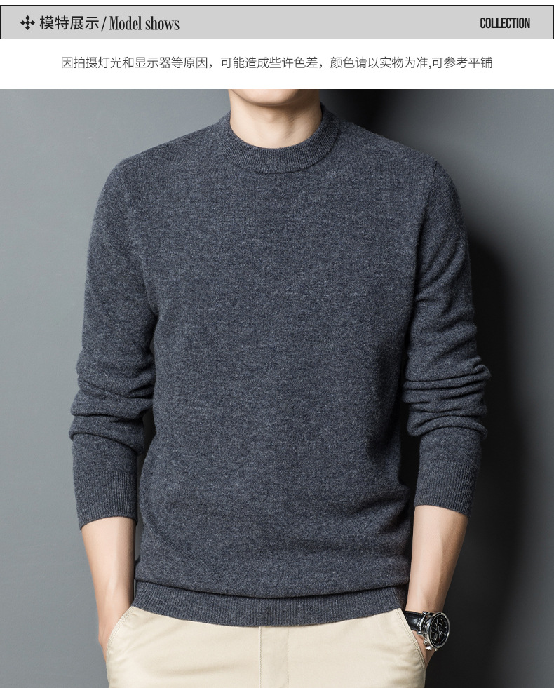 두꺼운 450g 100% 순양모 남성용 울 스웨터 2025 겨울 라운드넥 보온 두꺼운 베이스 스웨터 남성용스토어 가기