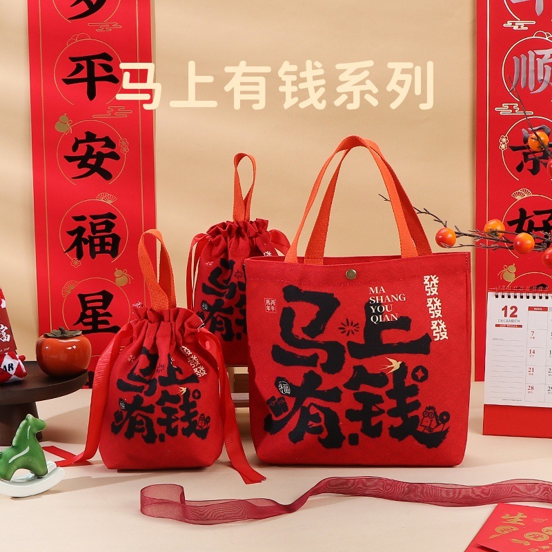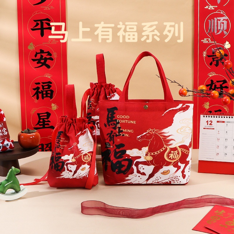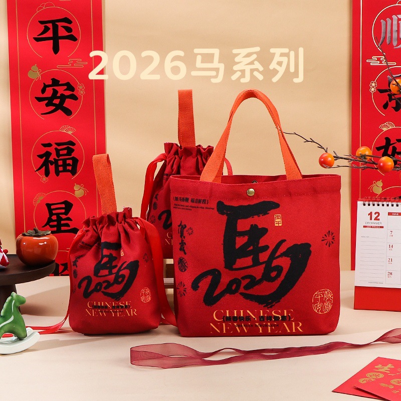 2026년 신규 회사 새해 선물 가방, 빨간색 축제 기념품 가방, 캔버스 가방, 설날 선물 가방스토어 가기