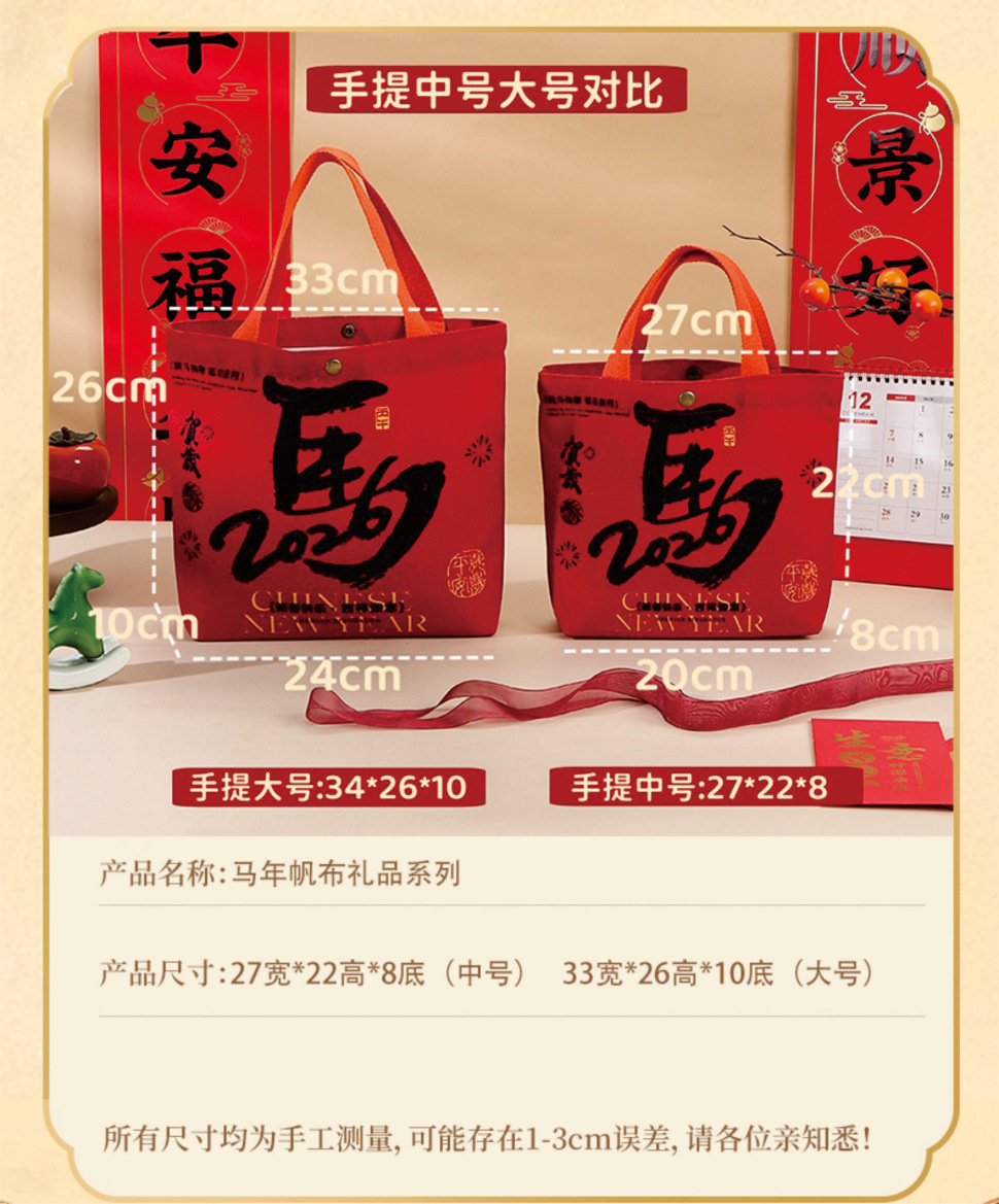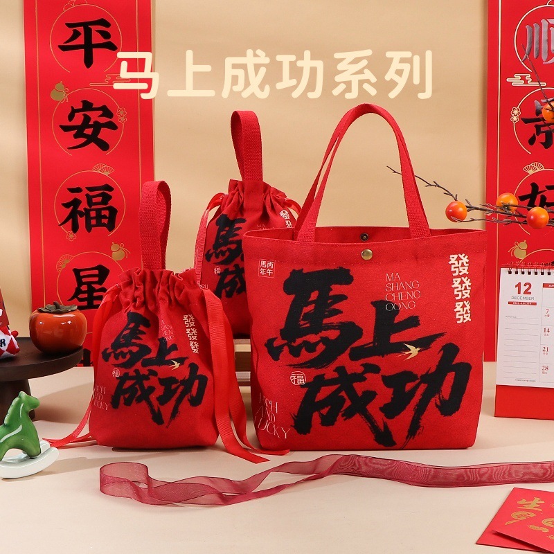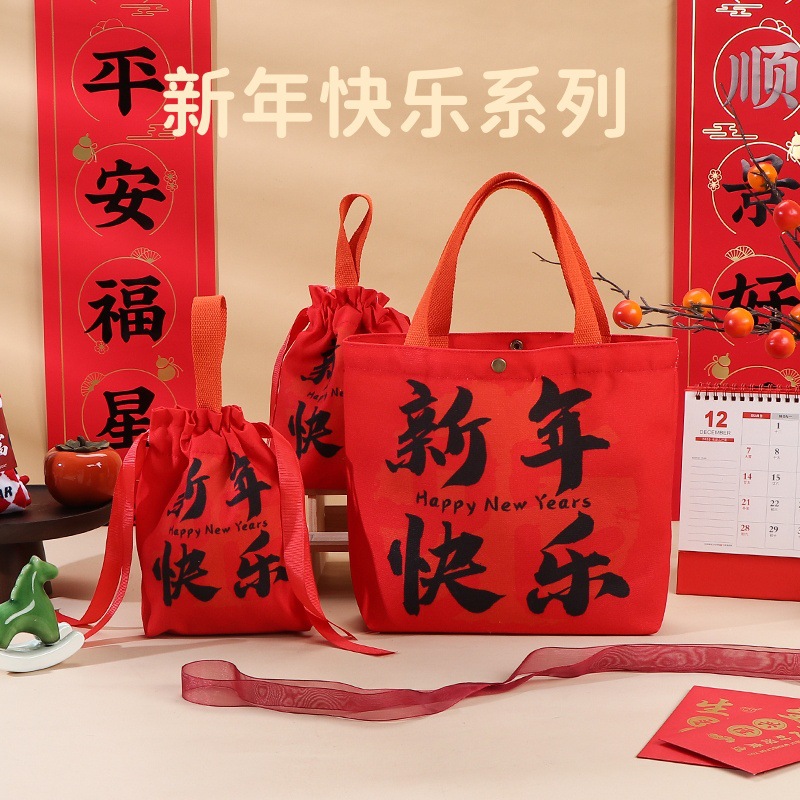 2026년 신규 회사 새해 선물 가방, 빨간색 축제 기념품 가방, 캔버스 가방, 설날 선물 가방