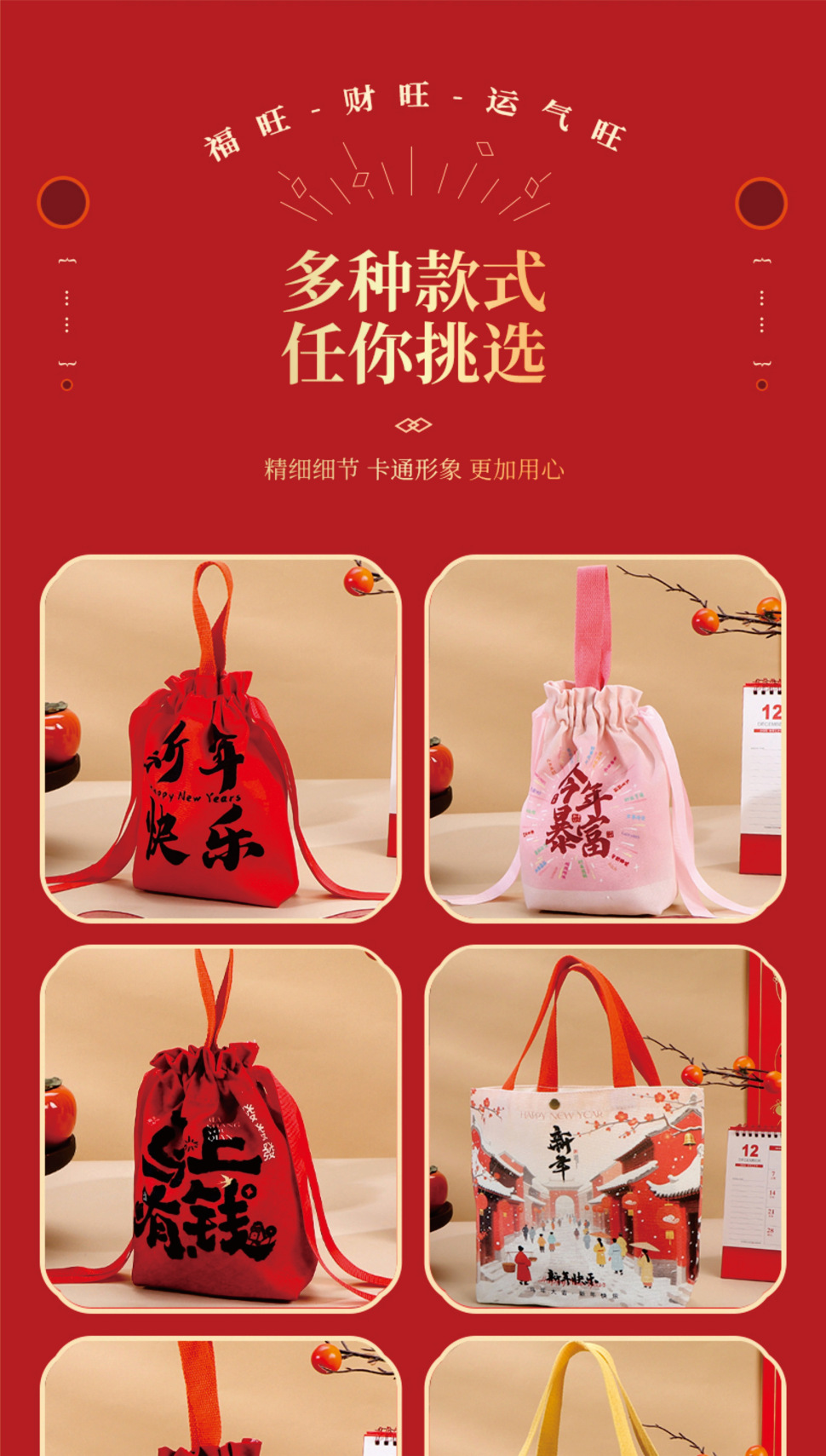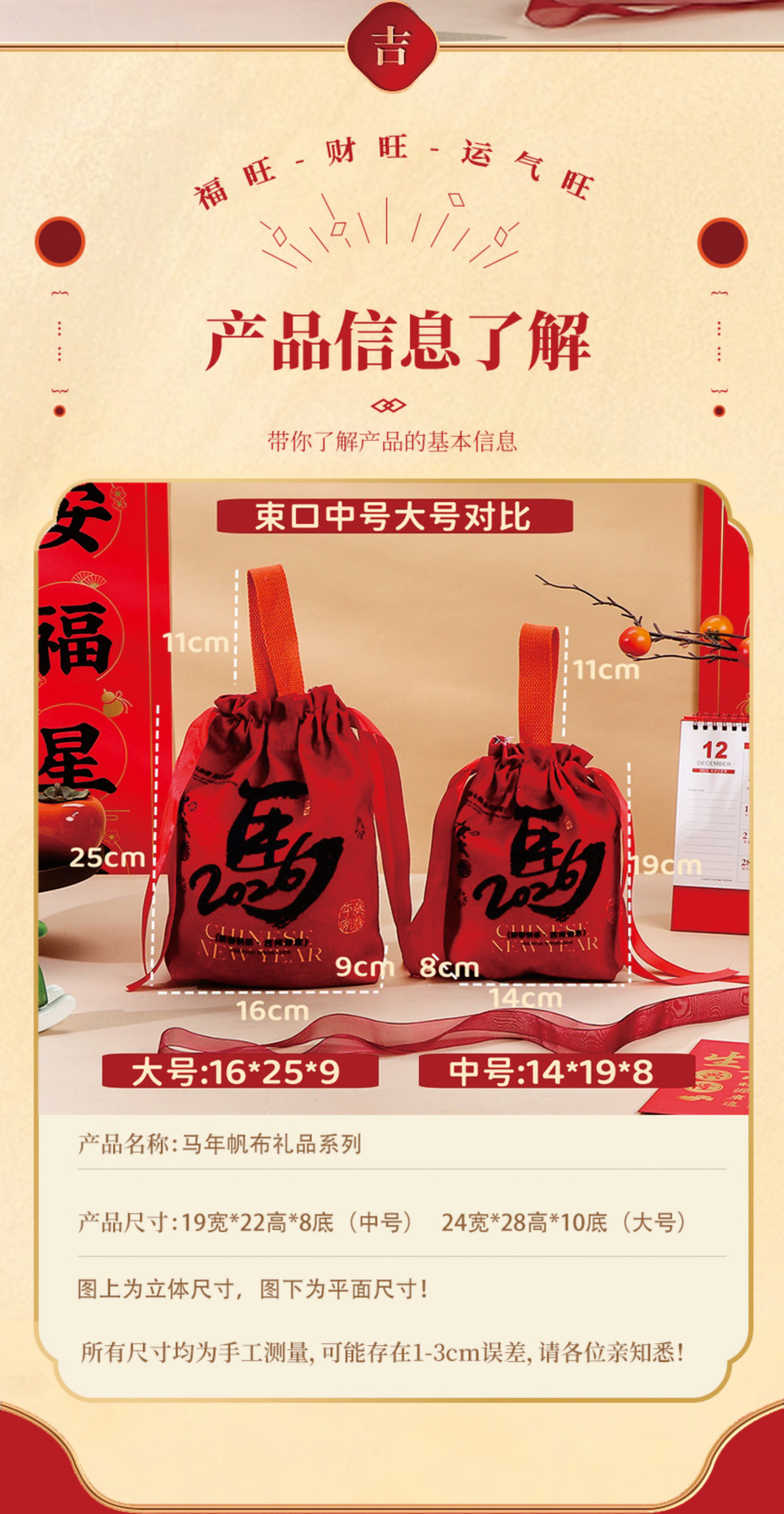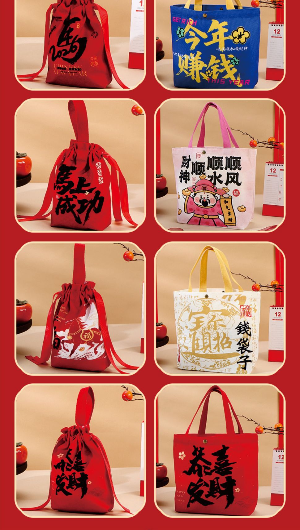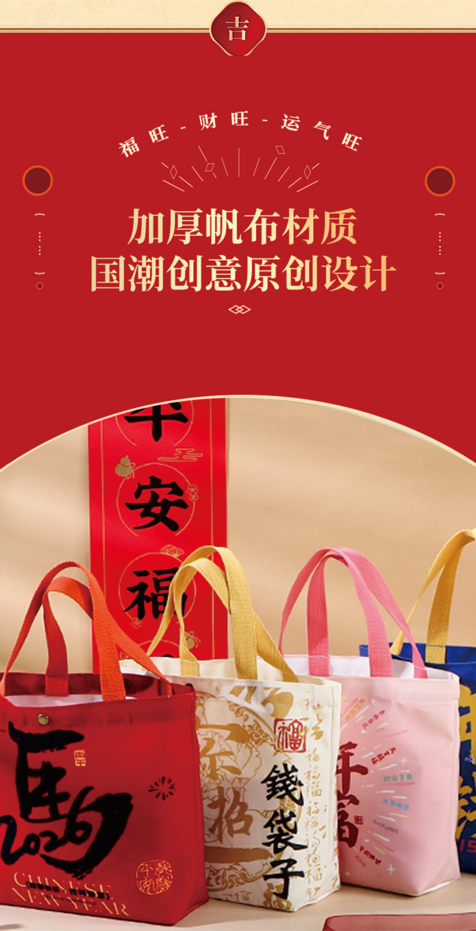 • 【빨간색】새해 복 많이 받으세요; 캔버스; 【휴대용】중형