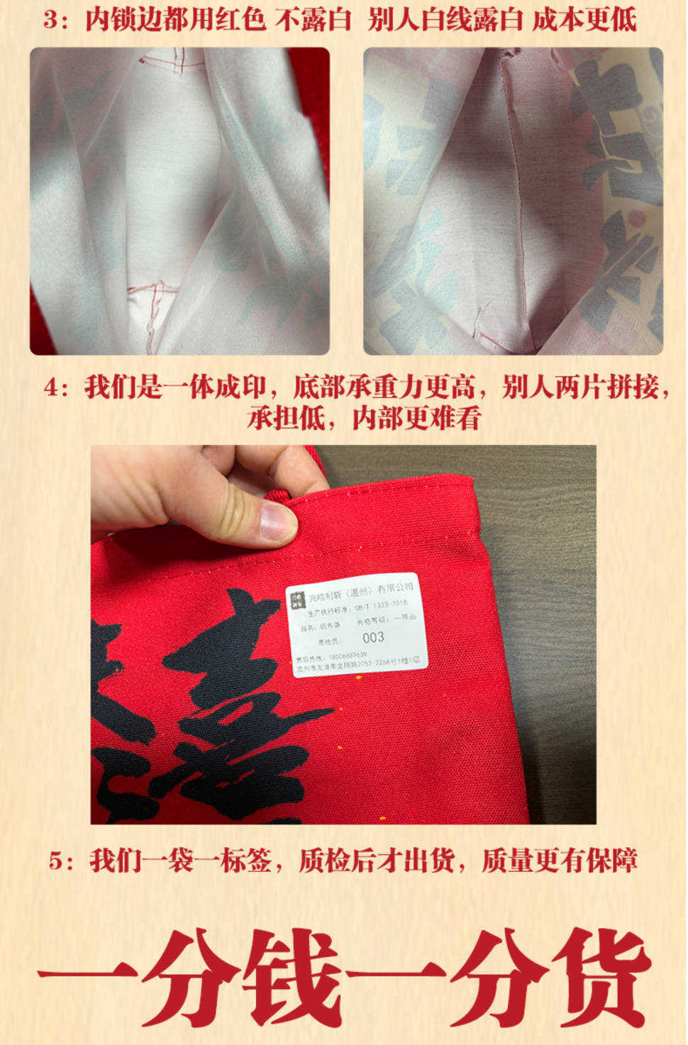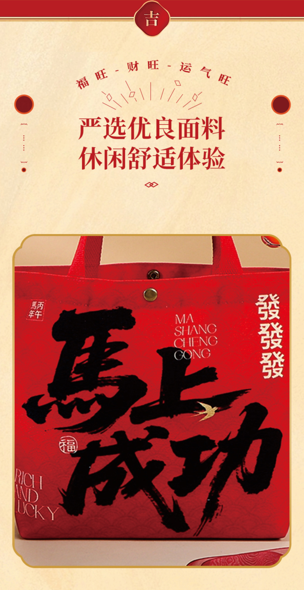 • 【빨간색】새해 복 많이 받으세요; 캔버스; 【조임끈 스타일】대형