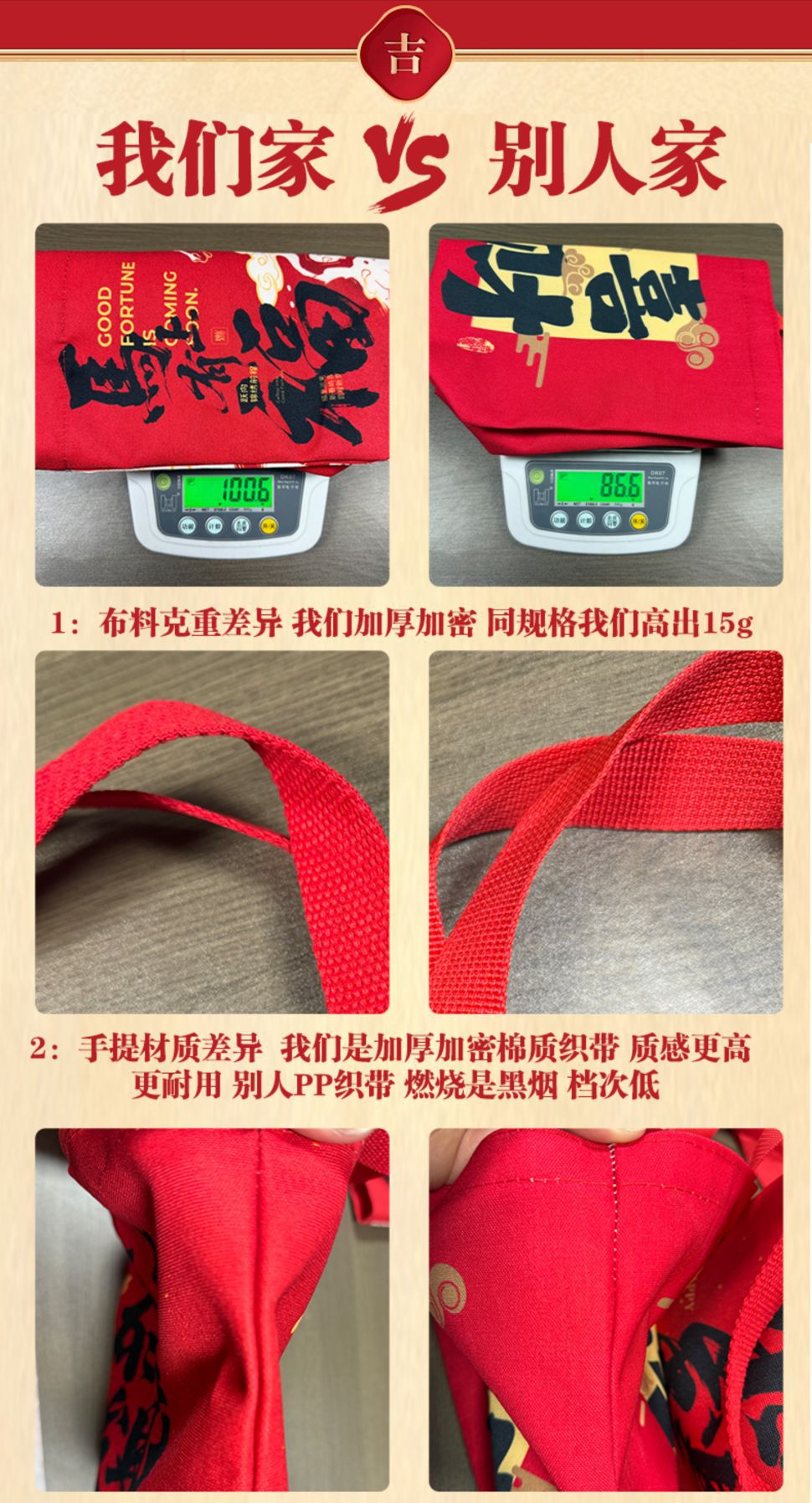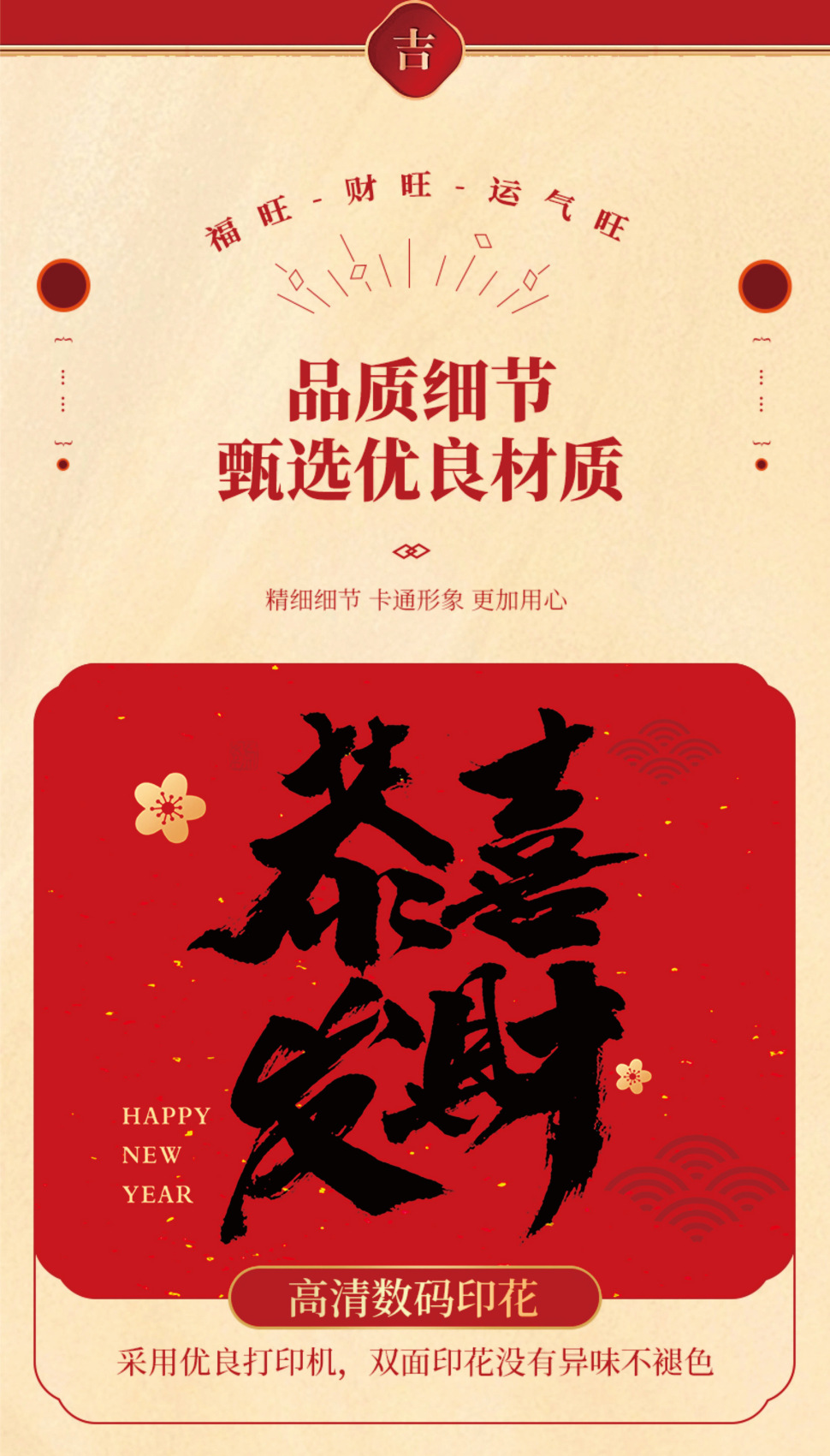 • 【빨간색】새해 복 많이 받으세요; 캔버스; 【휴대용】대형