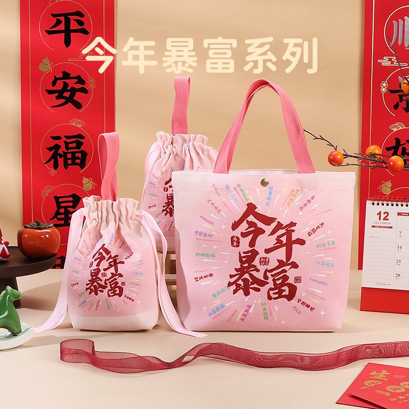 • [핑크] 올해 부자가 되세요; 캔버스; [휴대용 스타일] 대형 사이즈