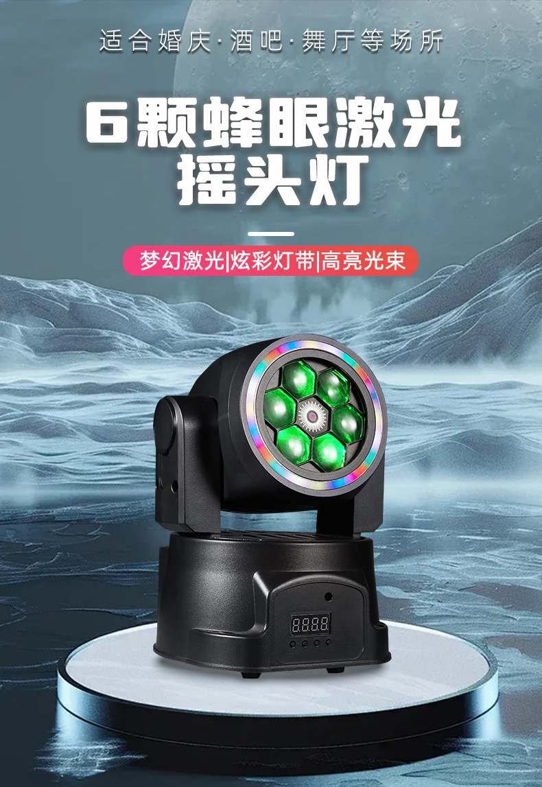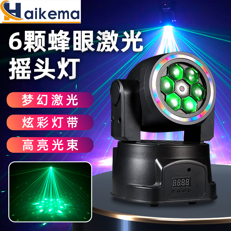 조리개 분위기 회전 염색 조명이있는 LED 바 KTV 흔들리는 헤드 라이트 무대 조명 6 개의 꿀벌 레이저 조명스토어 가기