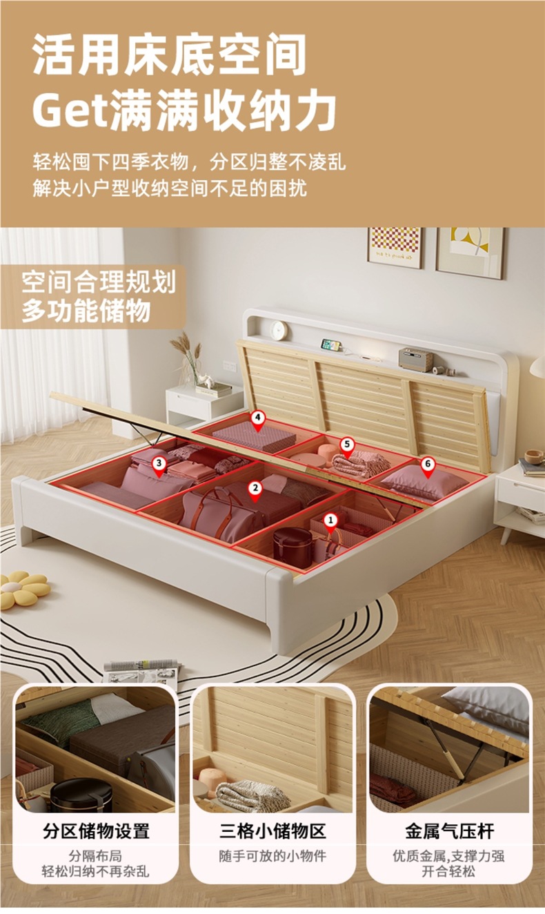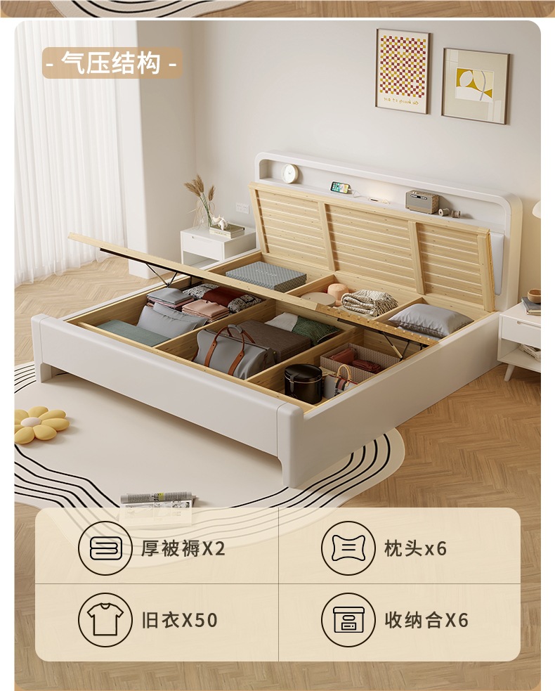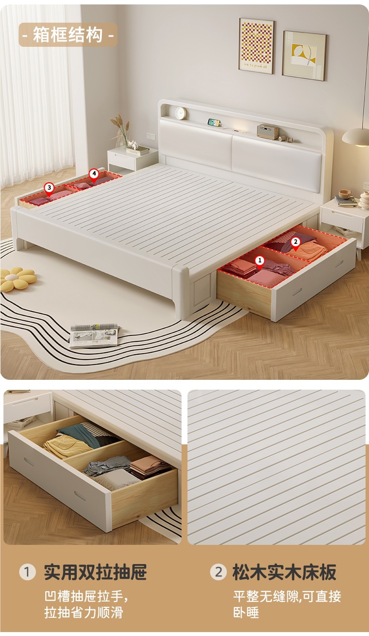 흰색 모든 단단한 나무 침대 현대 간단한 1.5 m 높은 상자 침대 1.2m/1.35m 다기능 침대 1.8 m 저장 침대스토어 가기