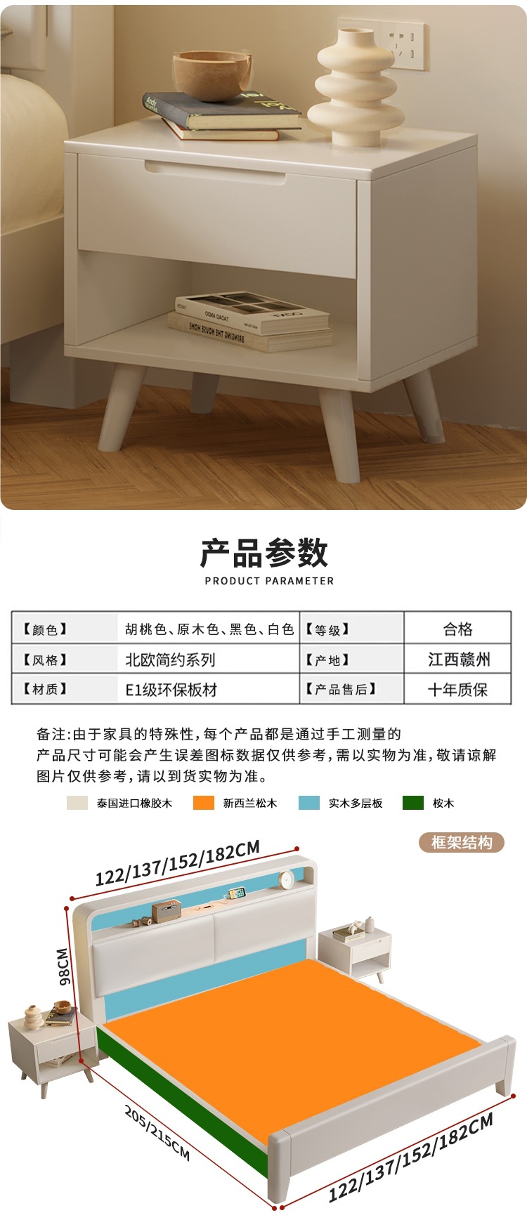 • 침대 + 침대 옆 탁자 1개 + 10cm 라텍스 매트리스 [95% 고객 선택]