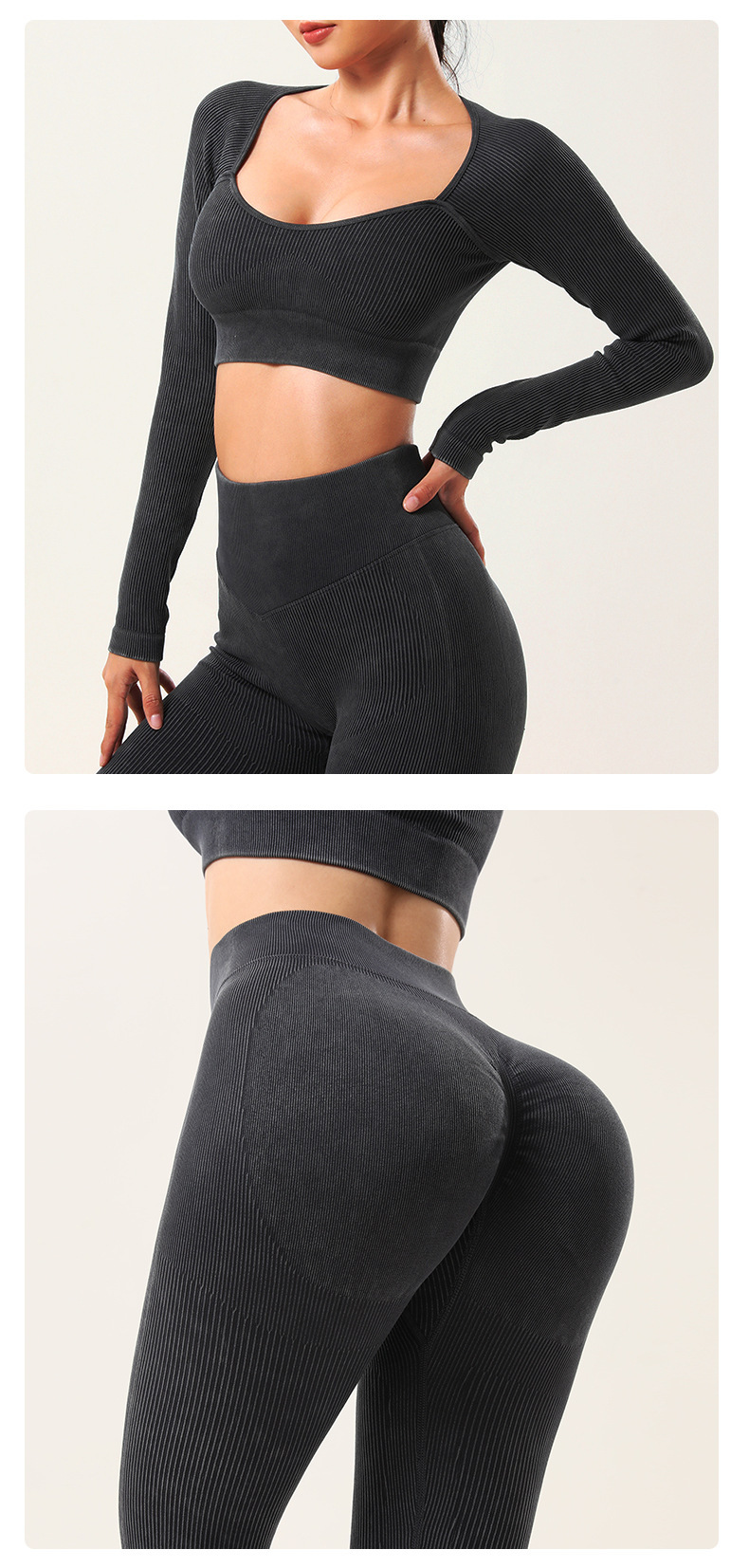 유럽과 미국의 아마존 원활한 요가 착용 세트 여성용 스레드 피트니스 착용 최고 피트니스 요가 바지 스포츠 바지
