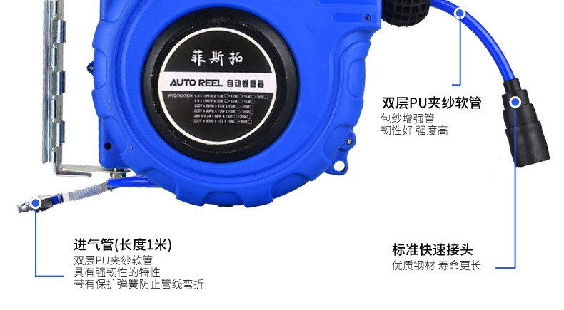 Fisto 에어 드럼 자동 망원경 회수 에어 파이프 코일 에어 펌프 에어 파이프 자동 수리 에어 도구 세차 25 m
