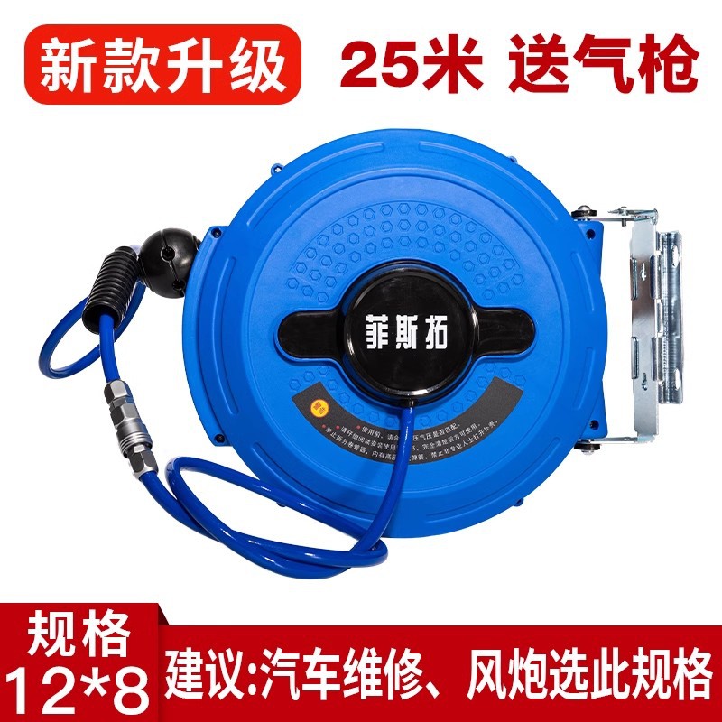 Fisto 에어 드럼 자동 망원경 회수 에어 파이프 코일 에어 펌프 에어 파이프 자동 수리 에어 도구 세차 25 m스토어 가기