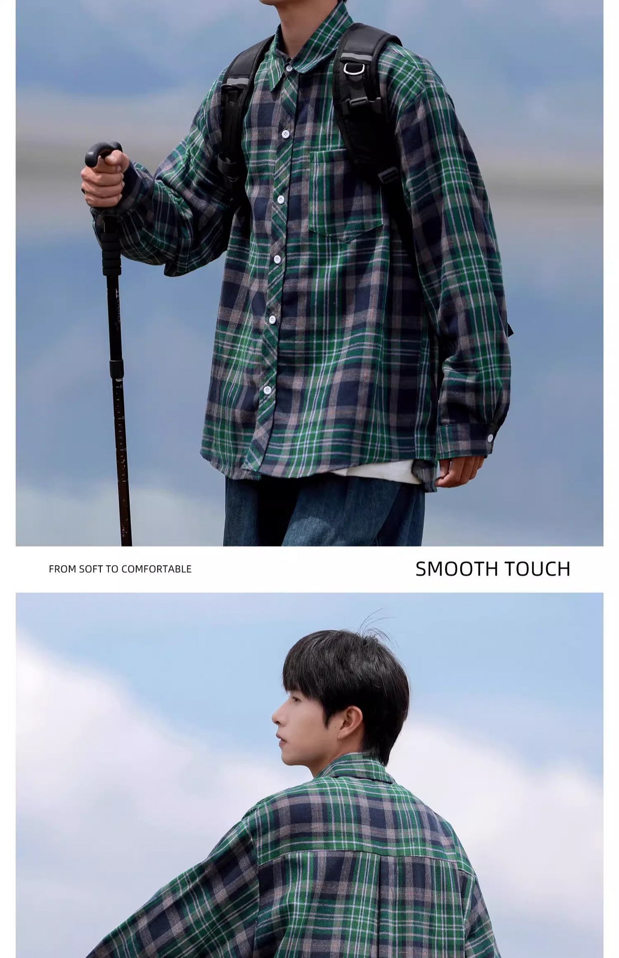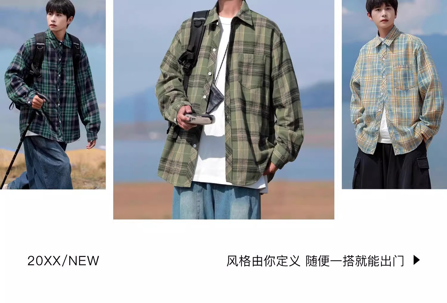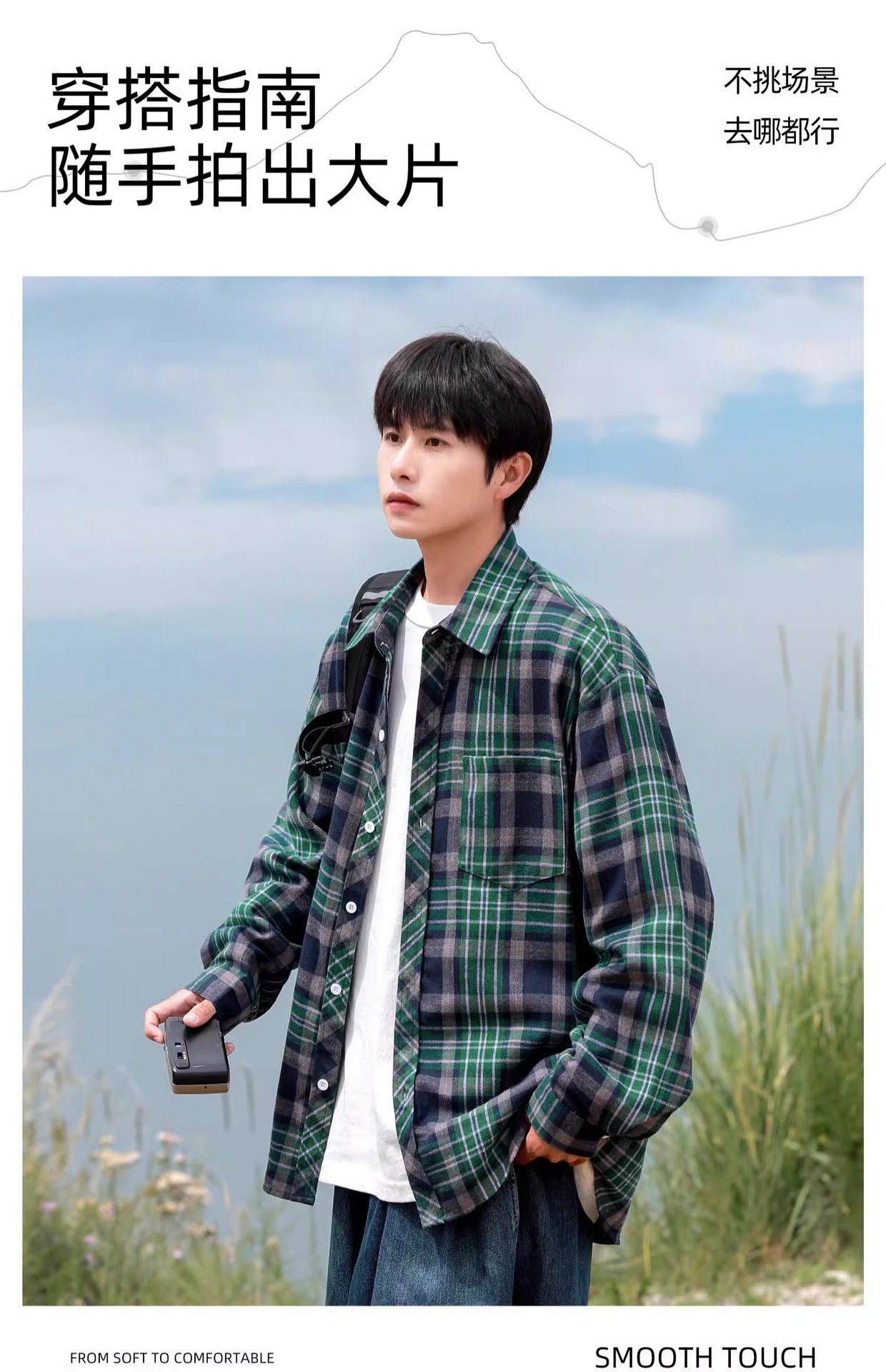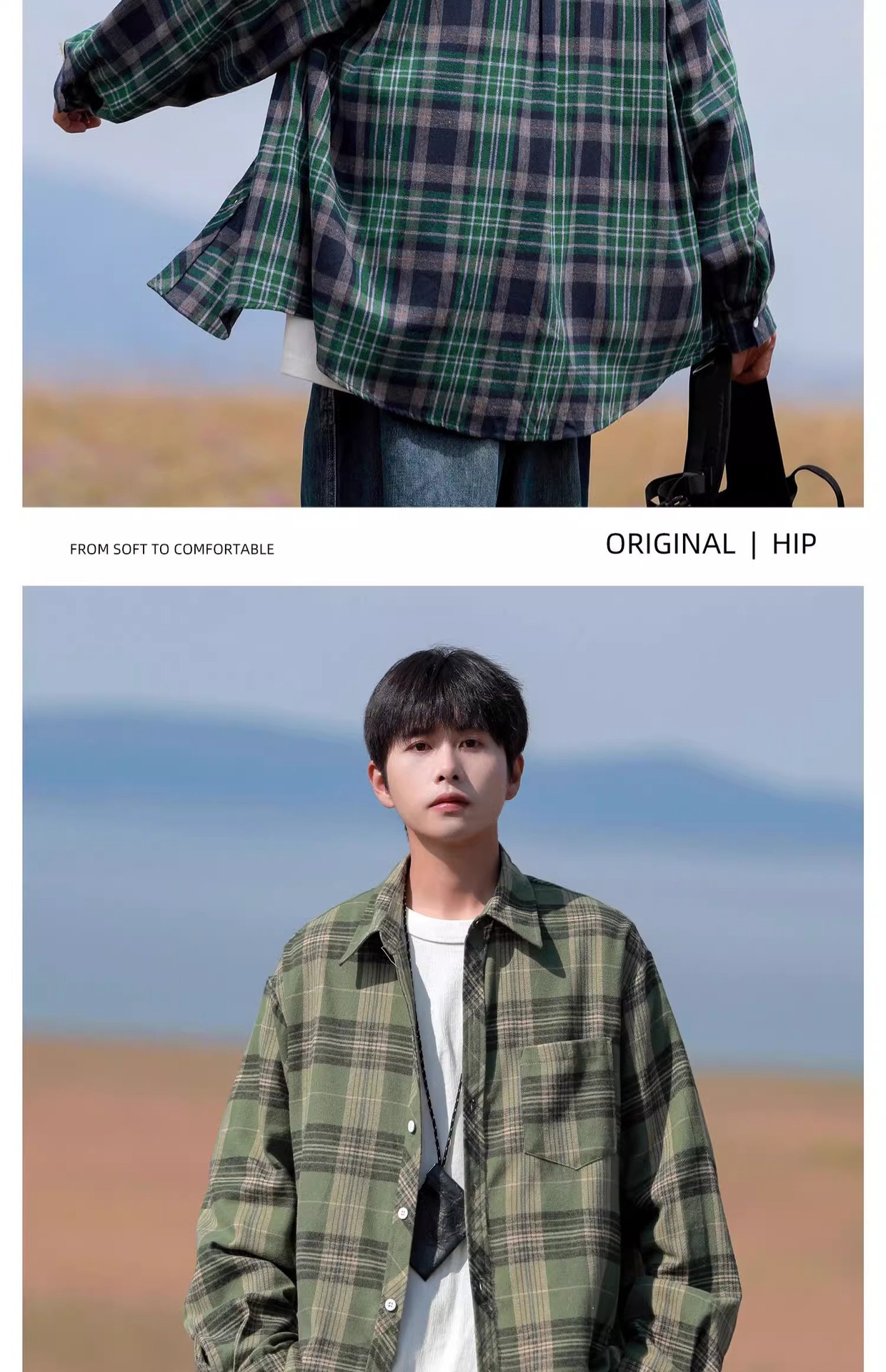 NASA 노란색 격자 무늬 셔츠 남성용 긴팔 2025 봄, 가을 새로운 느슨한 캐주얼 벨벳 셔츠 재킷 남성용스토어 가기