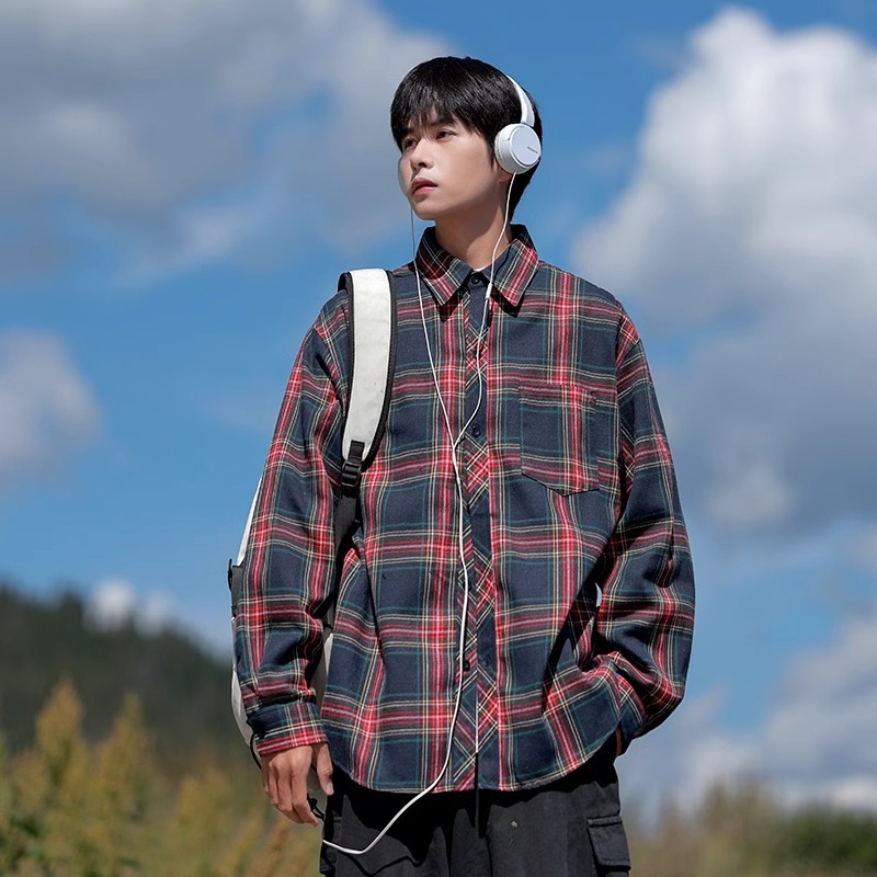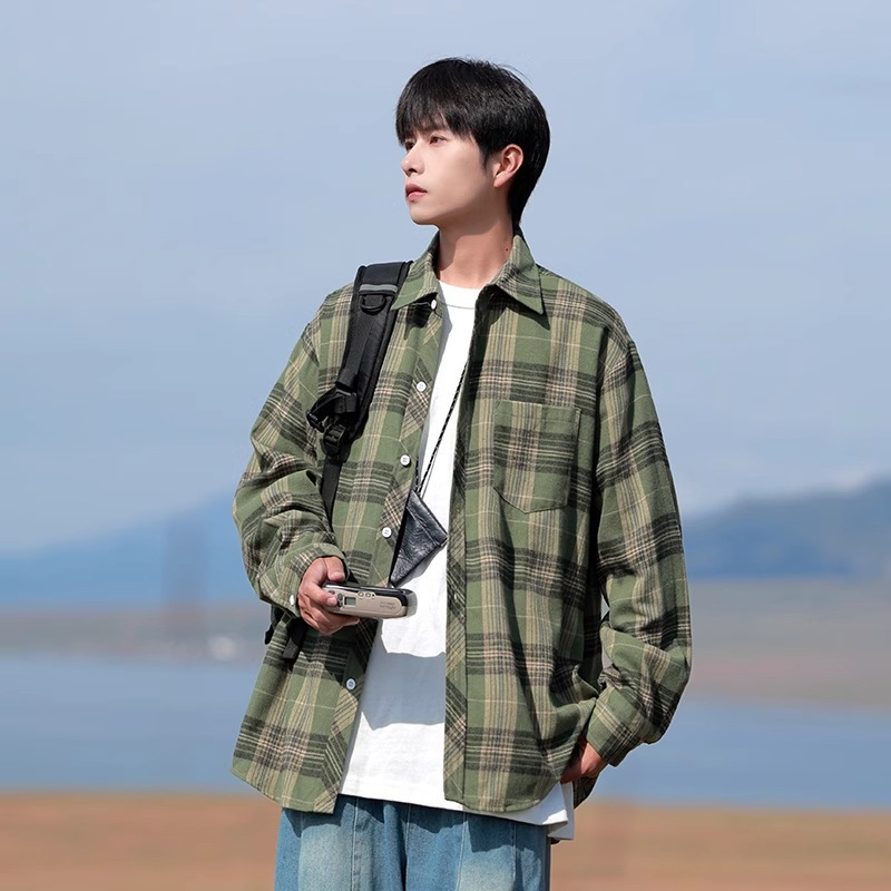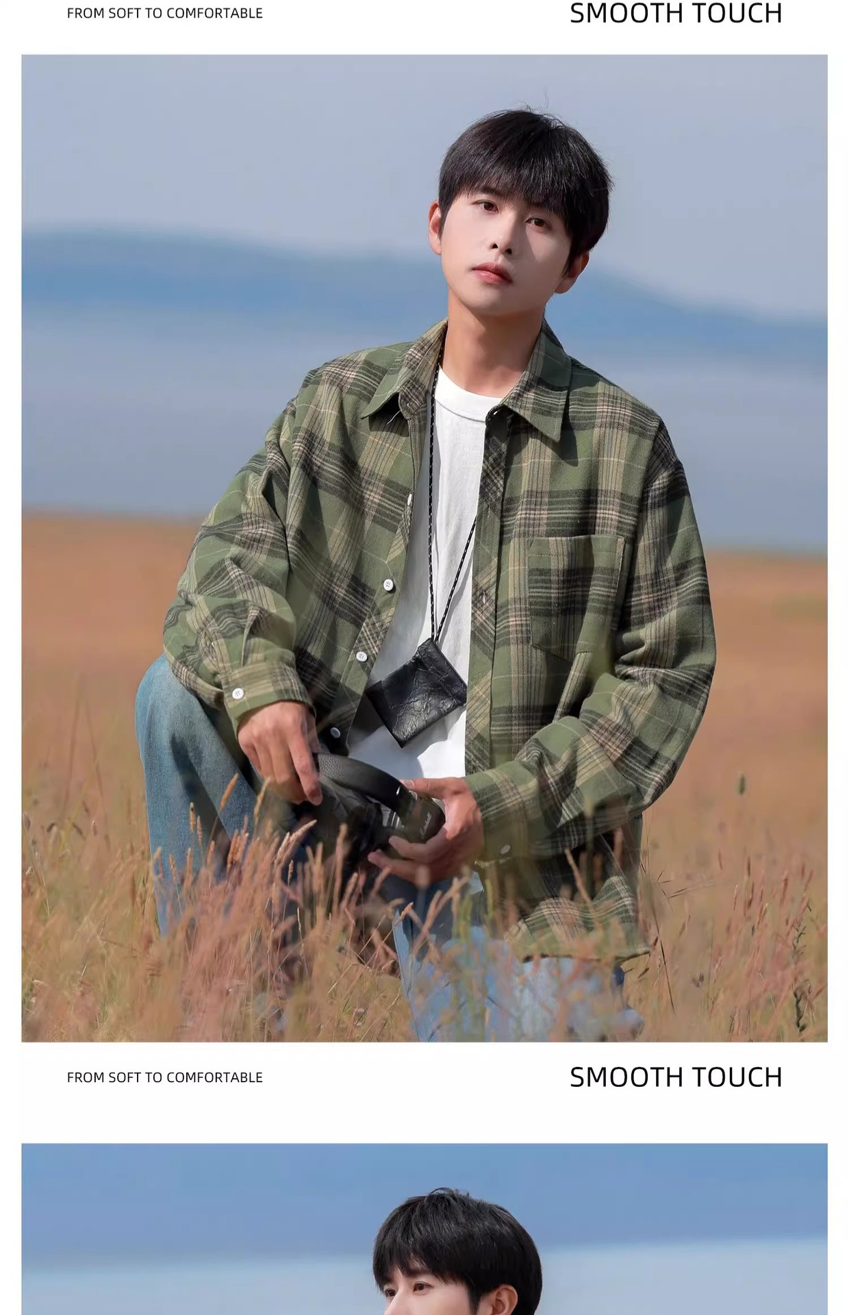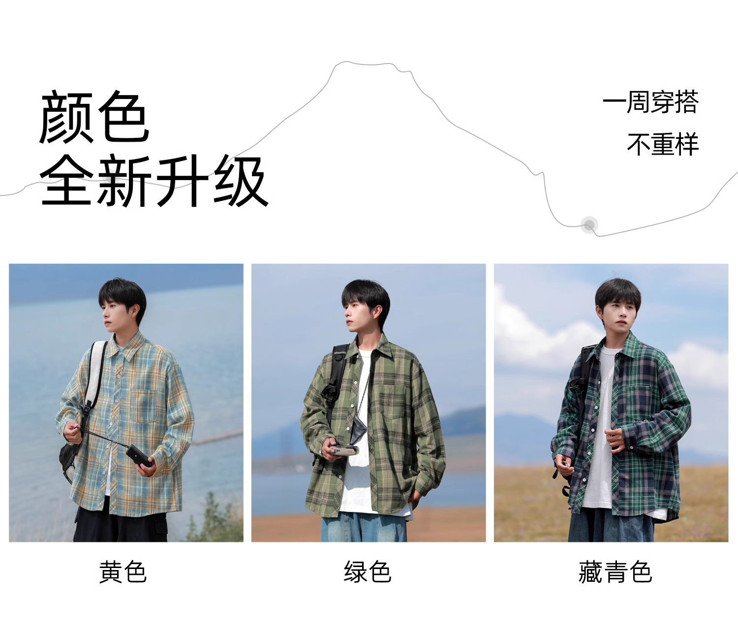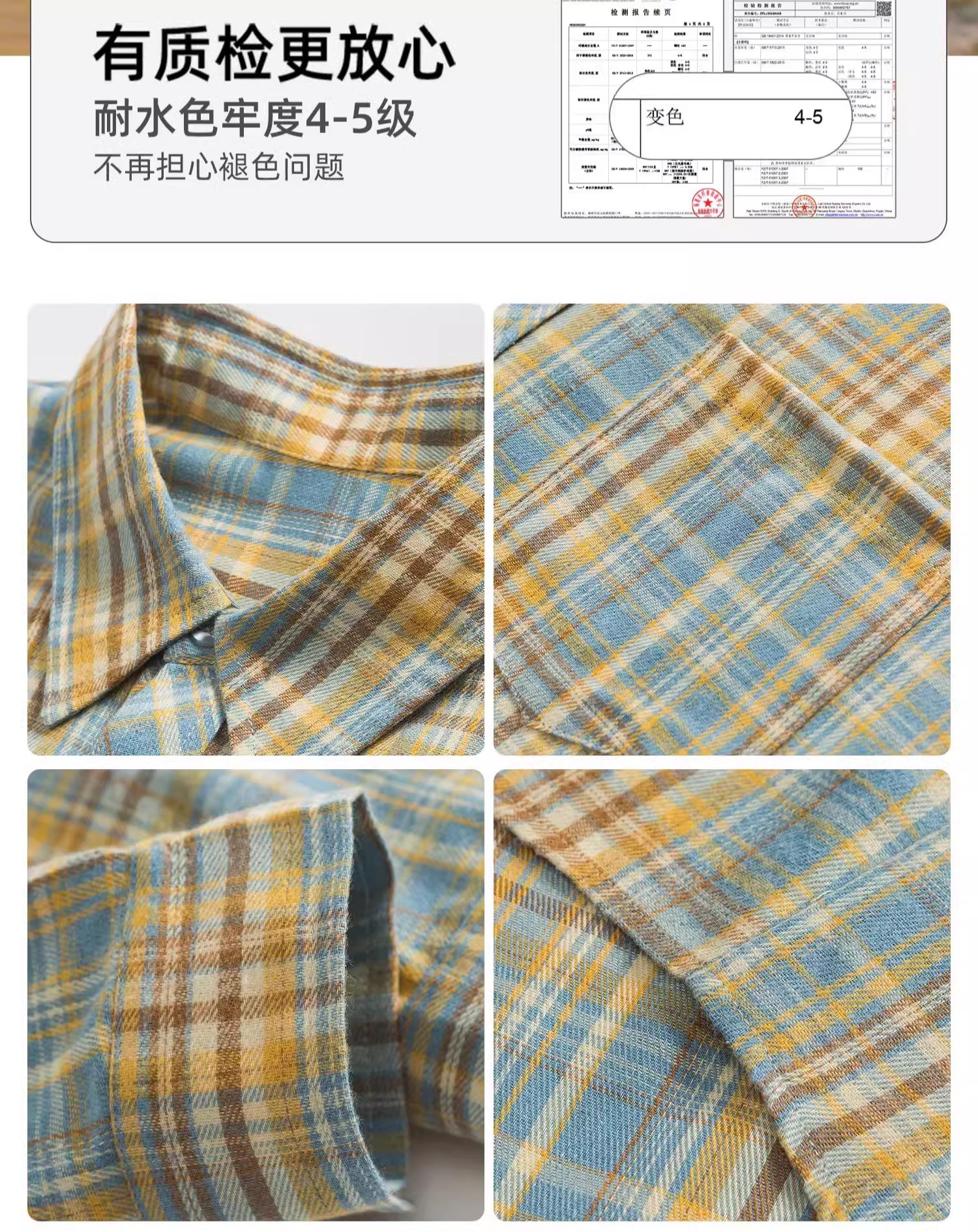NASA 노란색 격자 무늬 셔츠 남성용 긴팔 2025 봄, 가을 새로운 느슨한 캐주얼 벨벳 셔츠 재킷 남성용스토어 가기