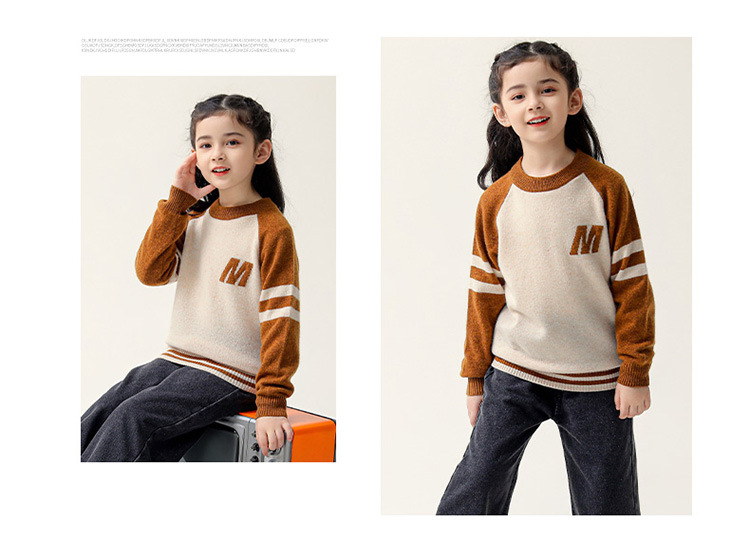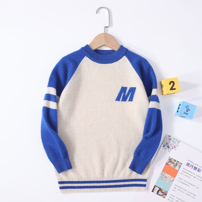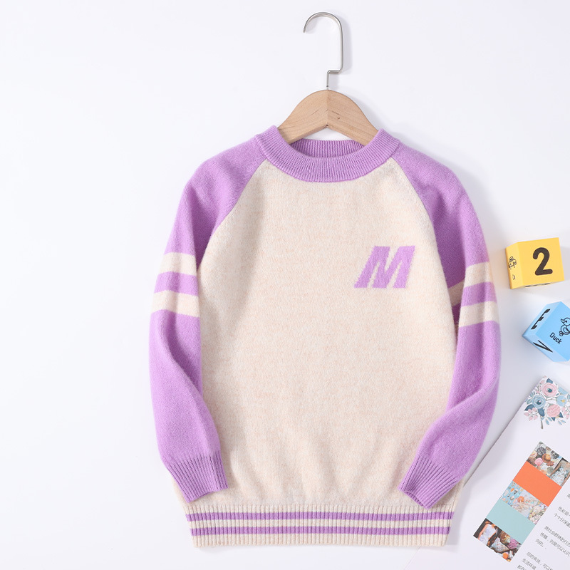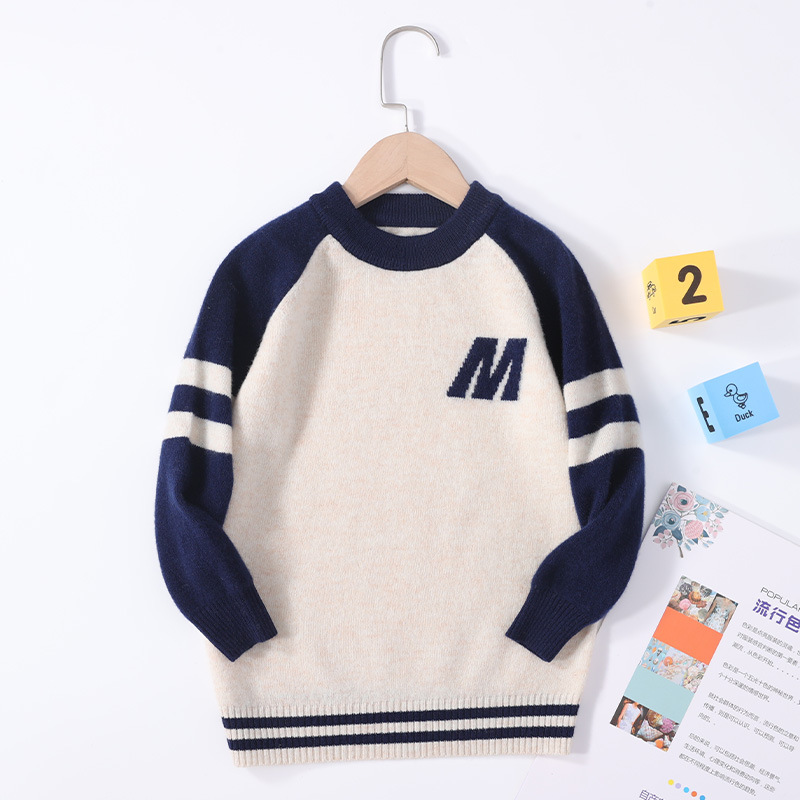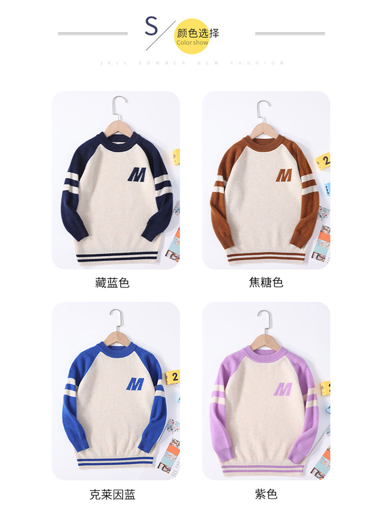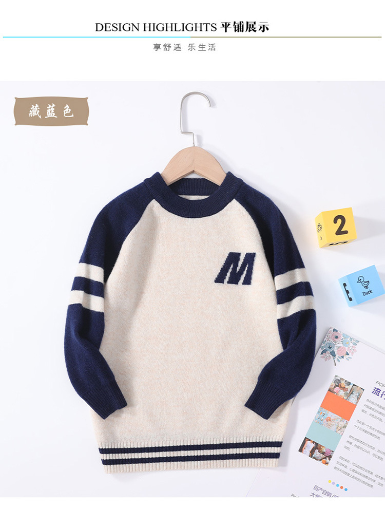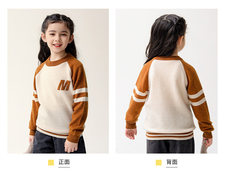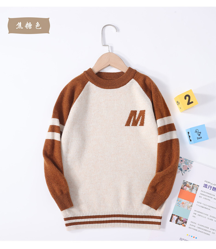 가을과 겨울을위한 새로운 싱글 스트랜드 퓨어 울 크루 넥 니트 셔츠 24 컬러 매칭 편지 자수 백 셔츠 소년 소녀를위한 셔츠 스웨터스토어 가기