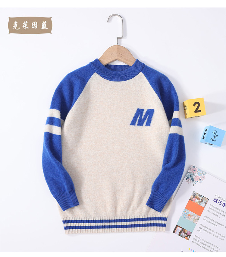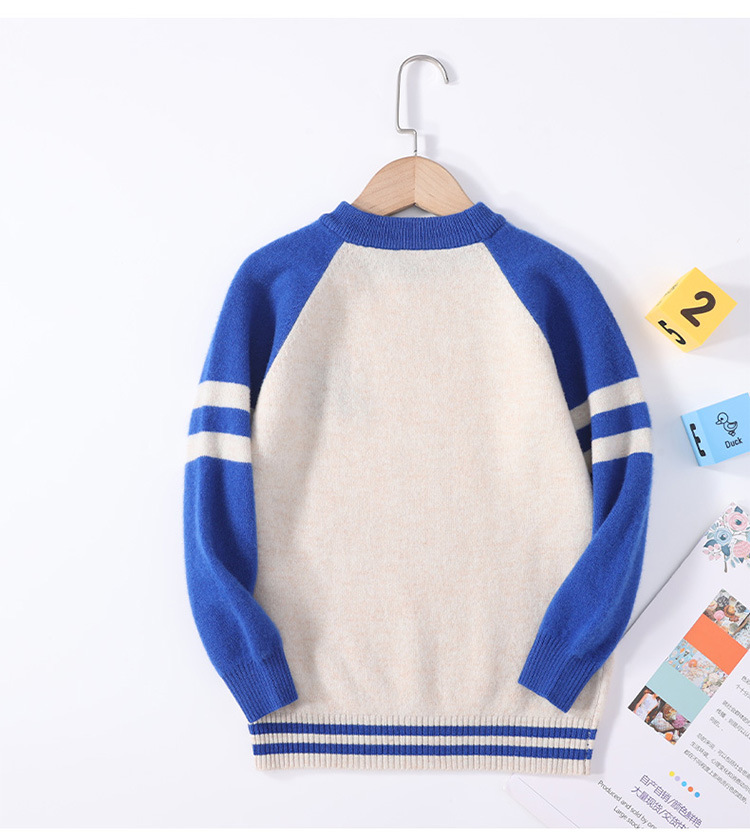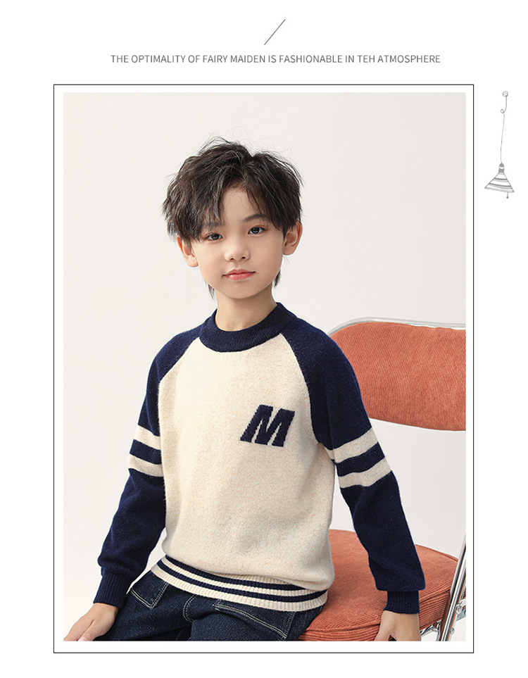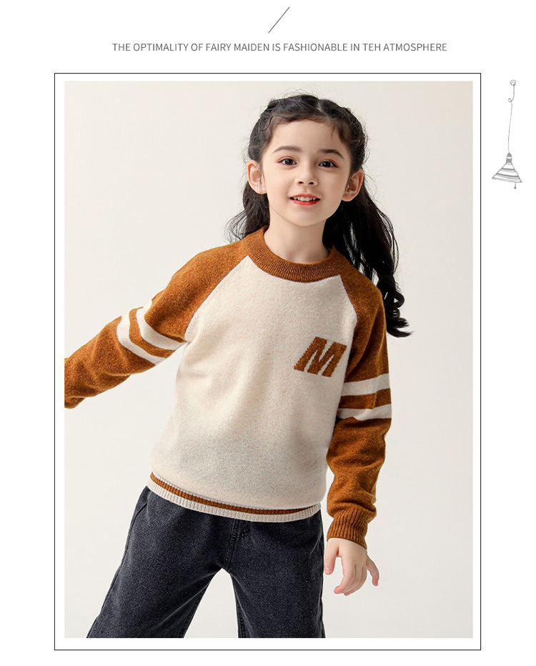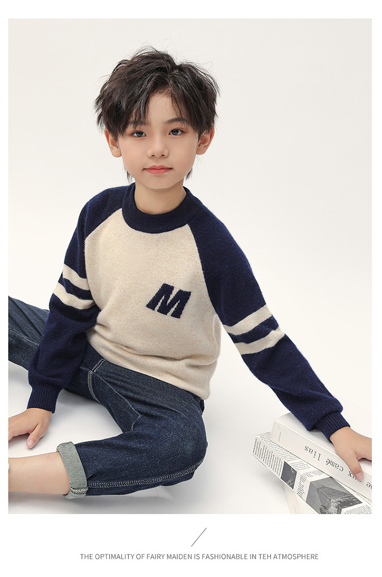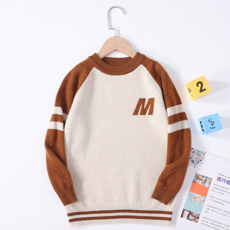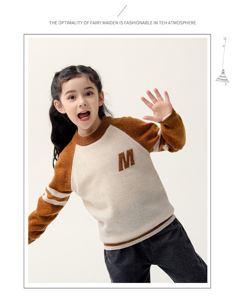 가을과 겨울을위한 새로운 싱글 스트랜드 퓨어 울 크루 넥 니트 셔츠 24 컬러 매칭 편지 자수 백 셔츠 소년 소녀를위한 셔츠 스웨터스토어 가기